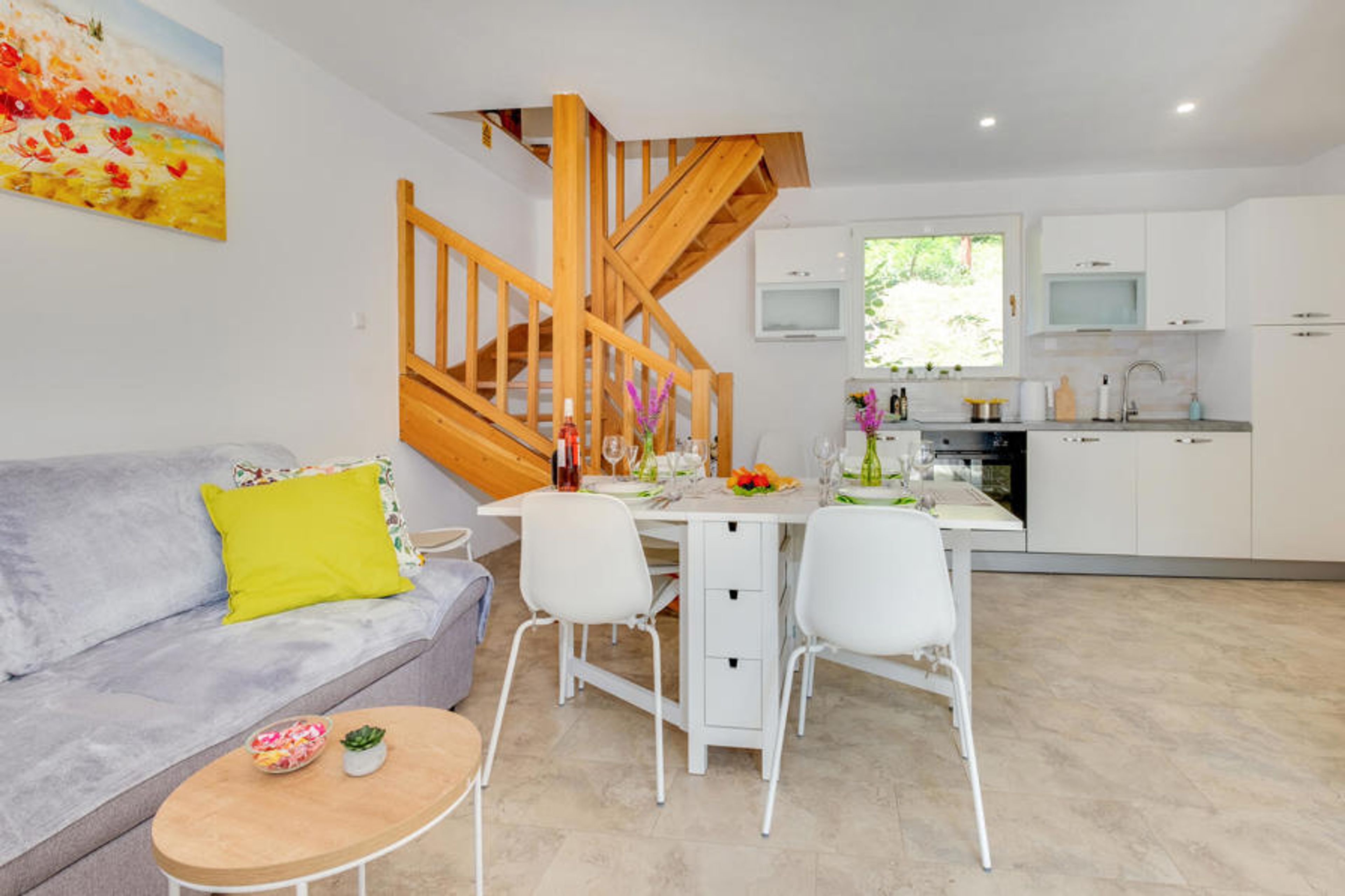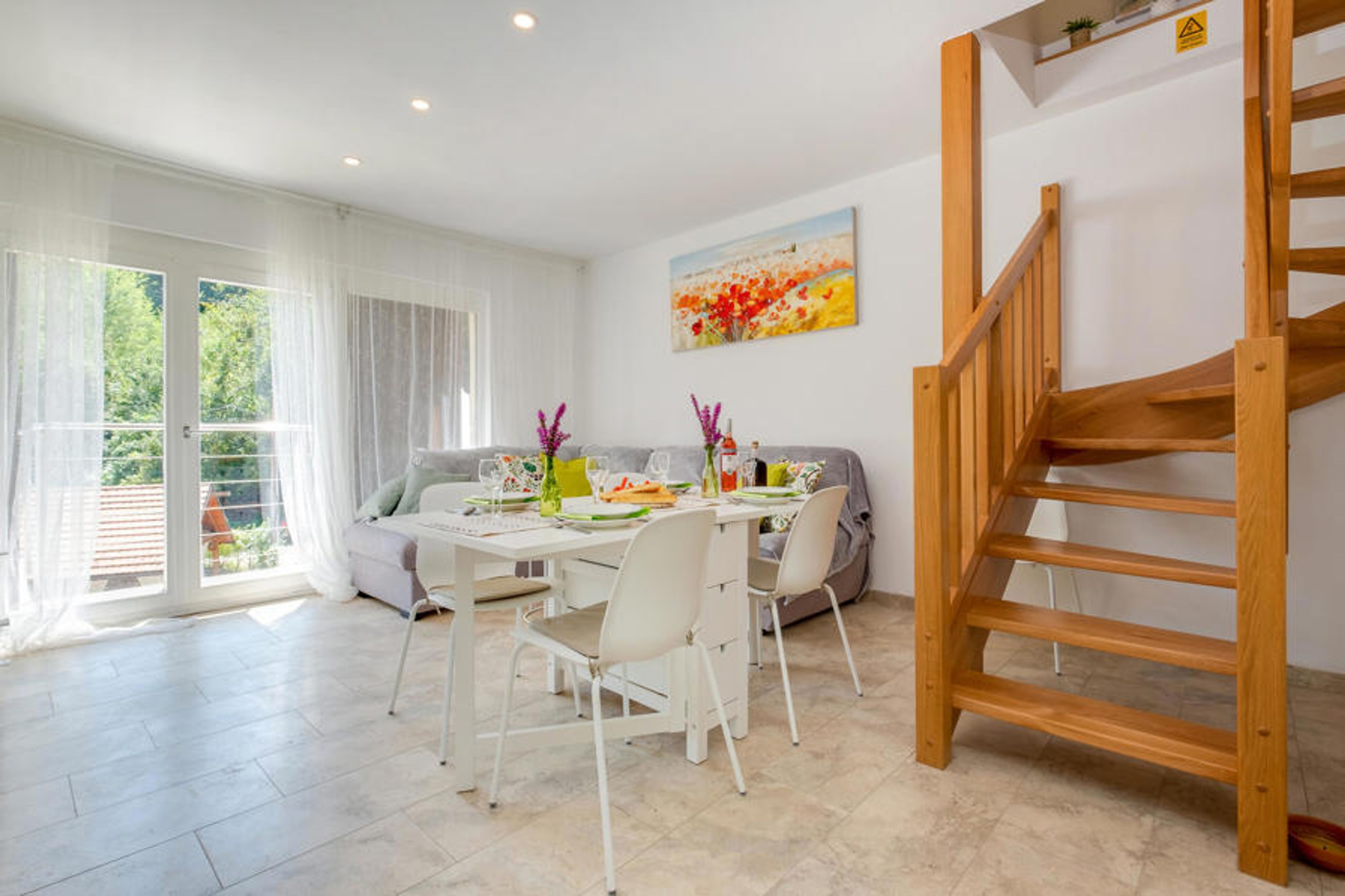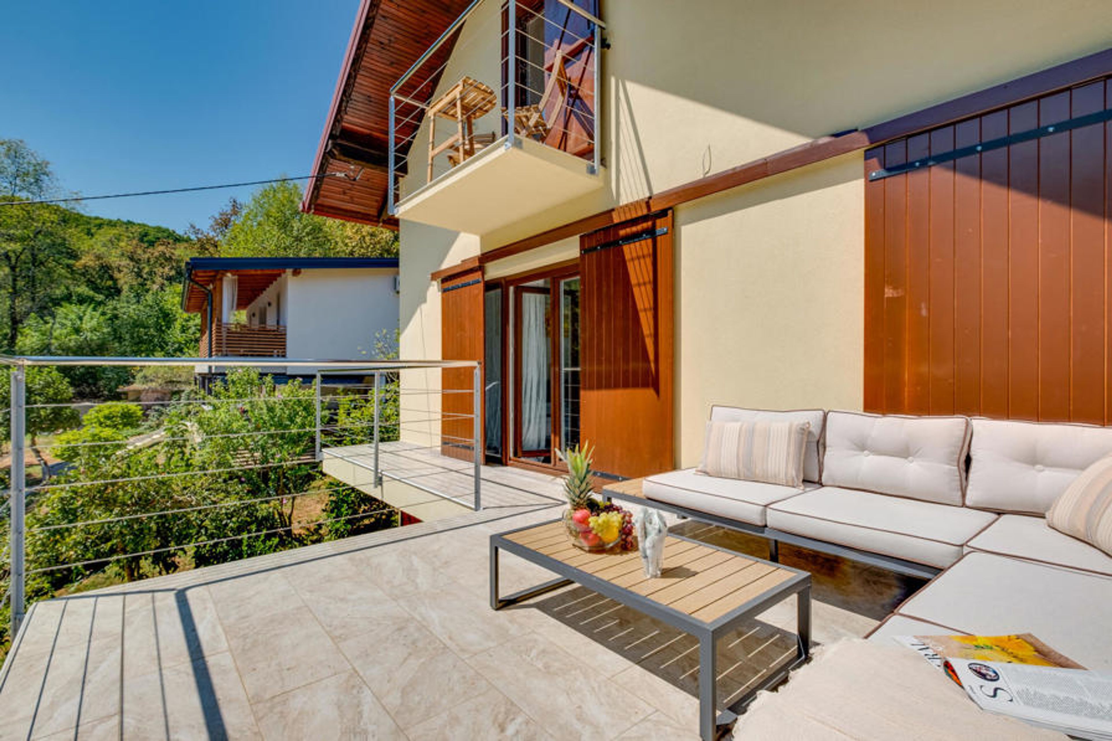 Your holiday home in Koranski Brijeg is idyllically situated on a small hill near the Korana river. The house consists of two separate living units. On the ground floor you will find a cosy apartment for two people, while the upper floor offers spacious accommodation with two bedrooms for four people. Enjoy the wonderful view of the green landscape, the rolling hills and the surrounding forests. Be inspired by the tranquillity of nature and start your day with a relaxed breakfast on the terrace. A dip in the pool provides welcome cooling and refreshment.