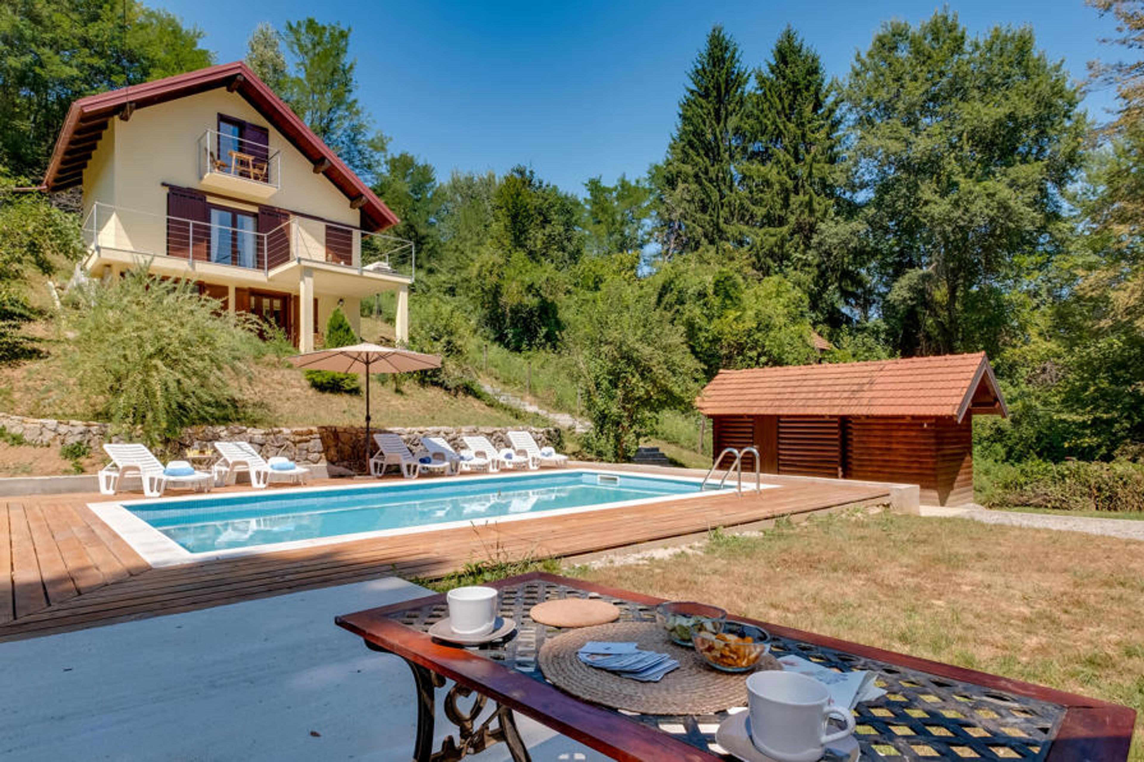Welcome to this enchanting holiday home with pool and lots of activities. Your holiday home in Koranski Brijeg is idyllically situated on a small hill near the Korana river.