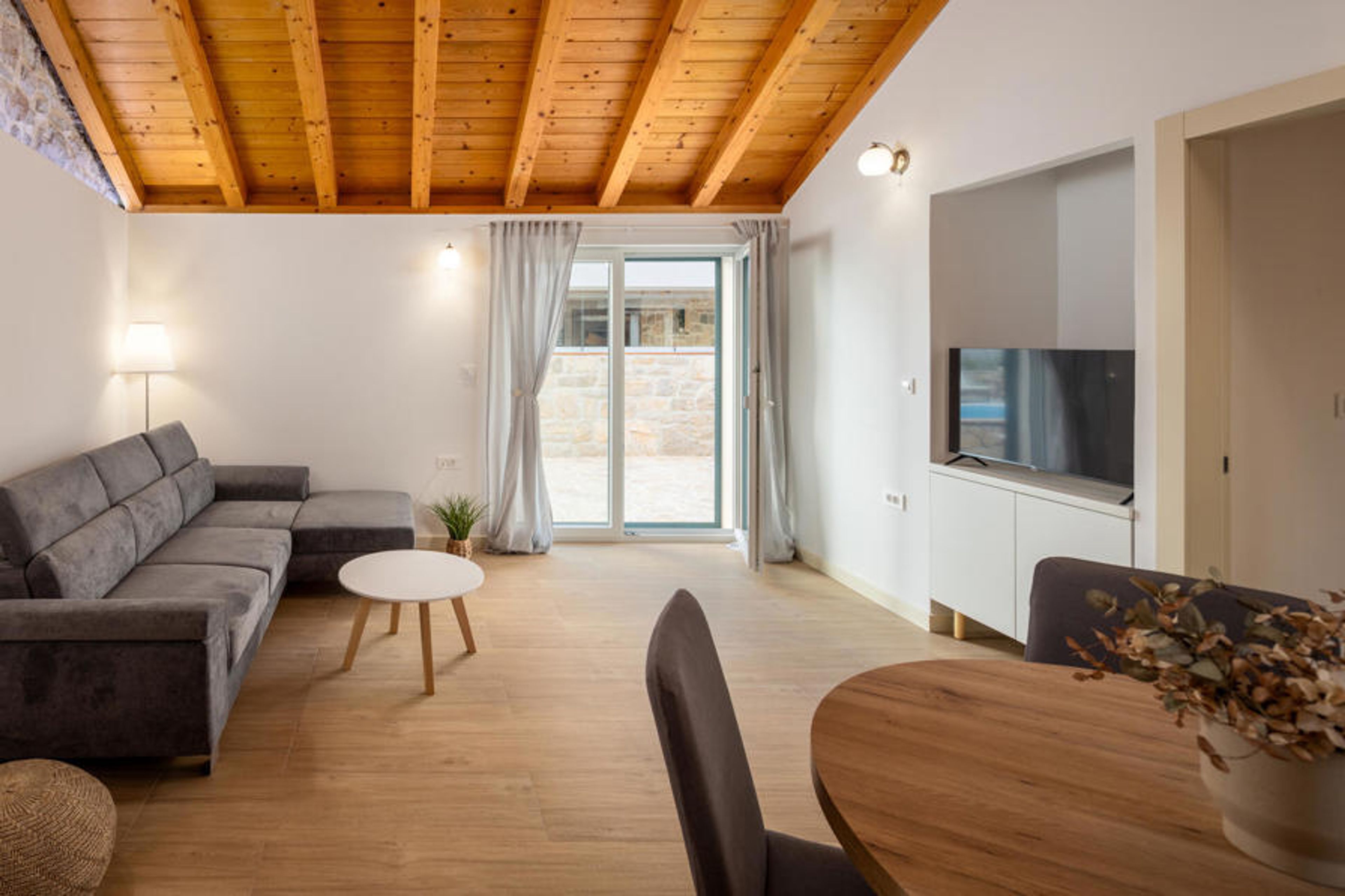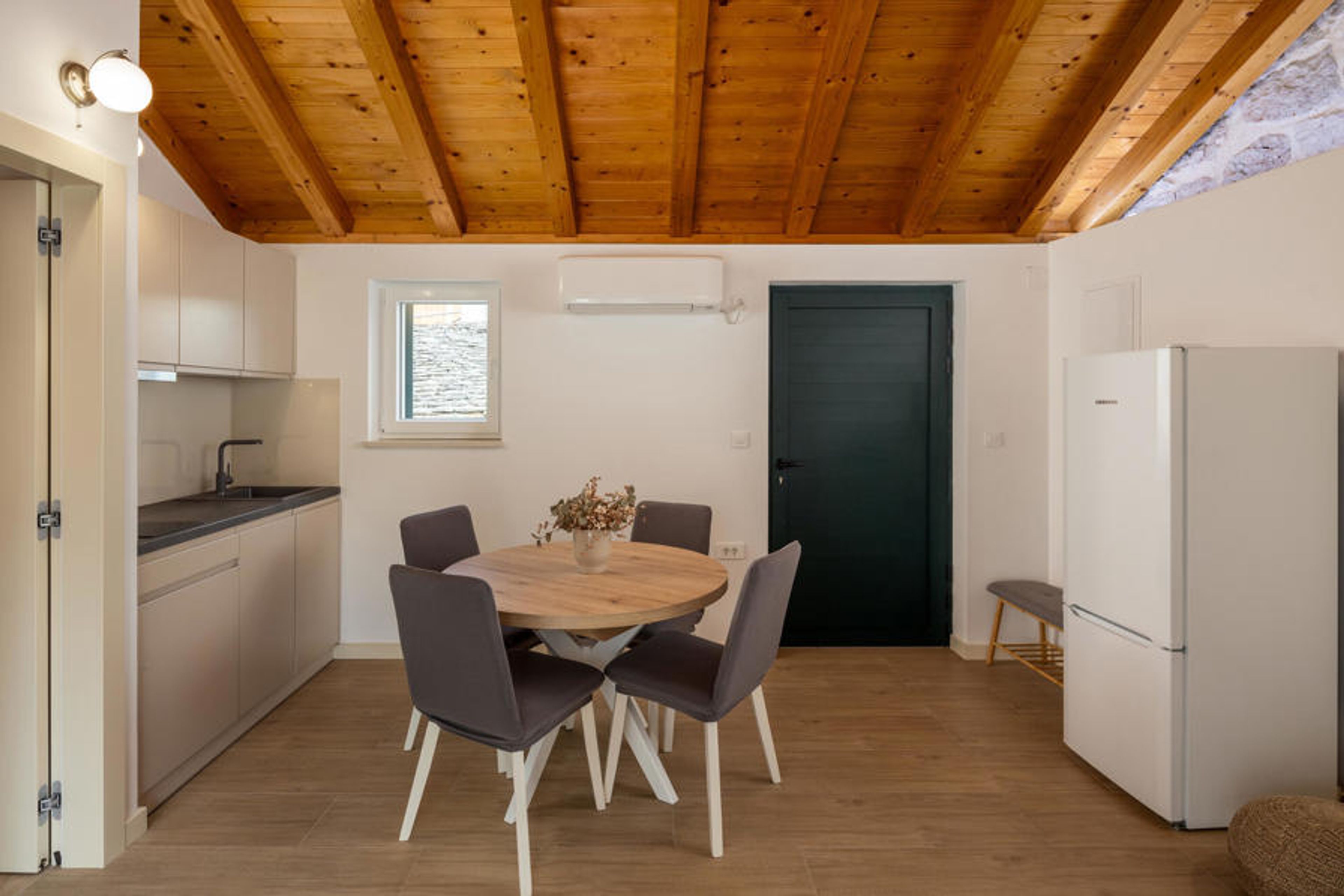 Use the fully equipped outdoor kitchen to prepare delicious meals, which you can then enjoy in the spacious outdoor dining area. Spend cosy evenings with a glass of wine while the setting sun bathes the stone walls in a warm light.