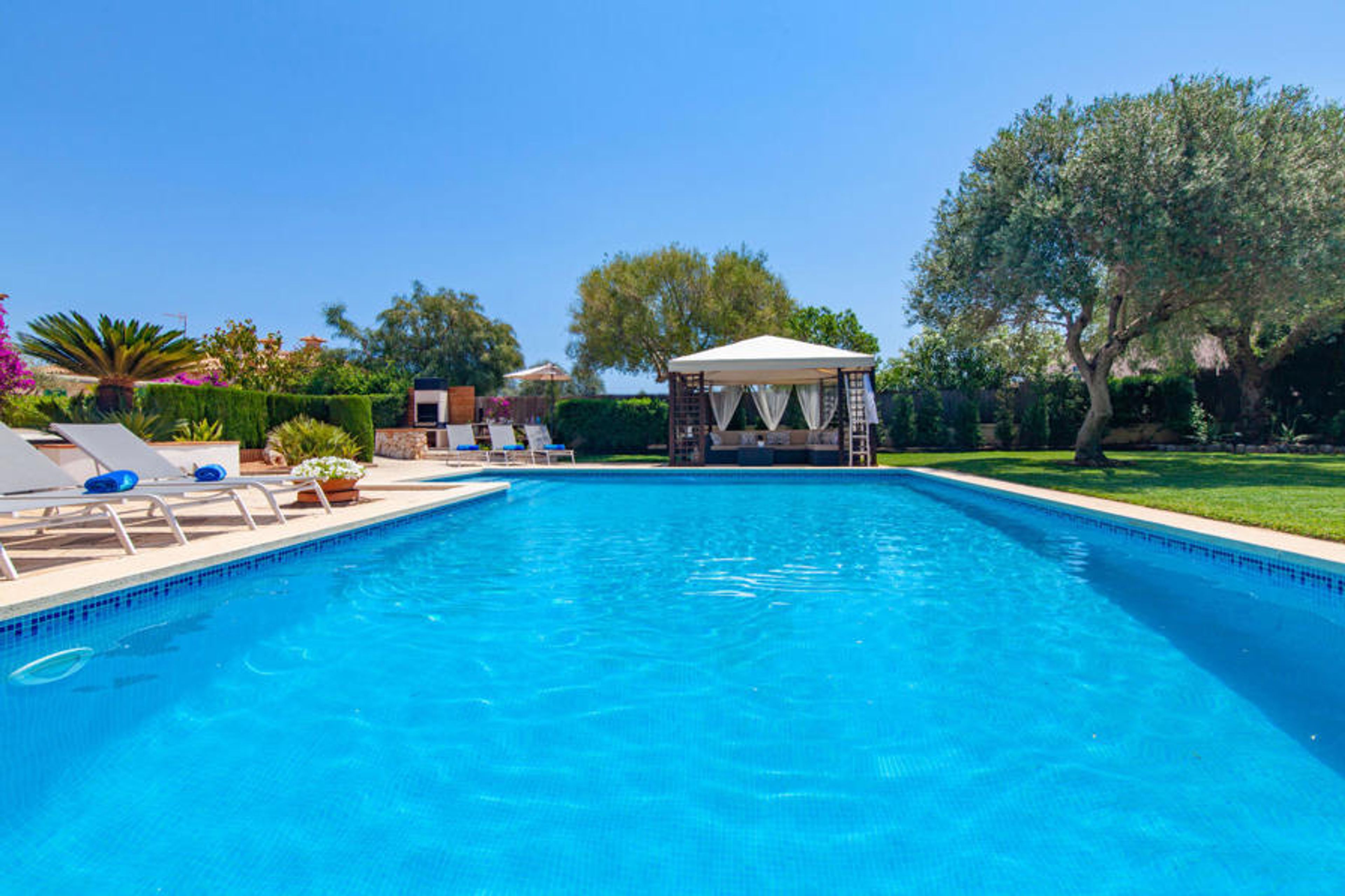 At Villa Rico, you won't waste any time - from the very first moment of your stay, you will enjoy a perfect atmosphere that speaks for itself: countless trees surround the property and ensure privacy and security by protecting you from prying eyes. You can enjoy the outdoor area, as there is not only normal garden furniture, in this case made of fine wood, but also an outdoor sofa and a bed, so that you can spend the night under the stars in mild temperatures or take a few laps in the moonlight in the comfortable pool, accessible via a Greek staircase. The partially covered terrace by the house ensures that your skin gets a short break from the sun before you slide one of the loungers back onto the lush green lawn or treat yourself to a spot by the poolside quarry Relax on stone slabs to devote yourself to a holiday novel while you slowly work up an appetite, nourished by the pleasant, aromatic salt air. That's fine, because this villa has a very modern, installed barbecue where you have plenty of space to marinate and prepare your delicacies. The slightly elevated terrace area with veranda and seating area, which can be reached via a few steps, is surrounded by impressive flowers; the variety of plants here is very diverse and large palm trees also make you feel like you're in a small, cosy park.