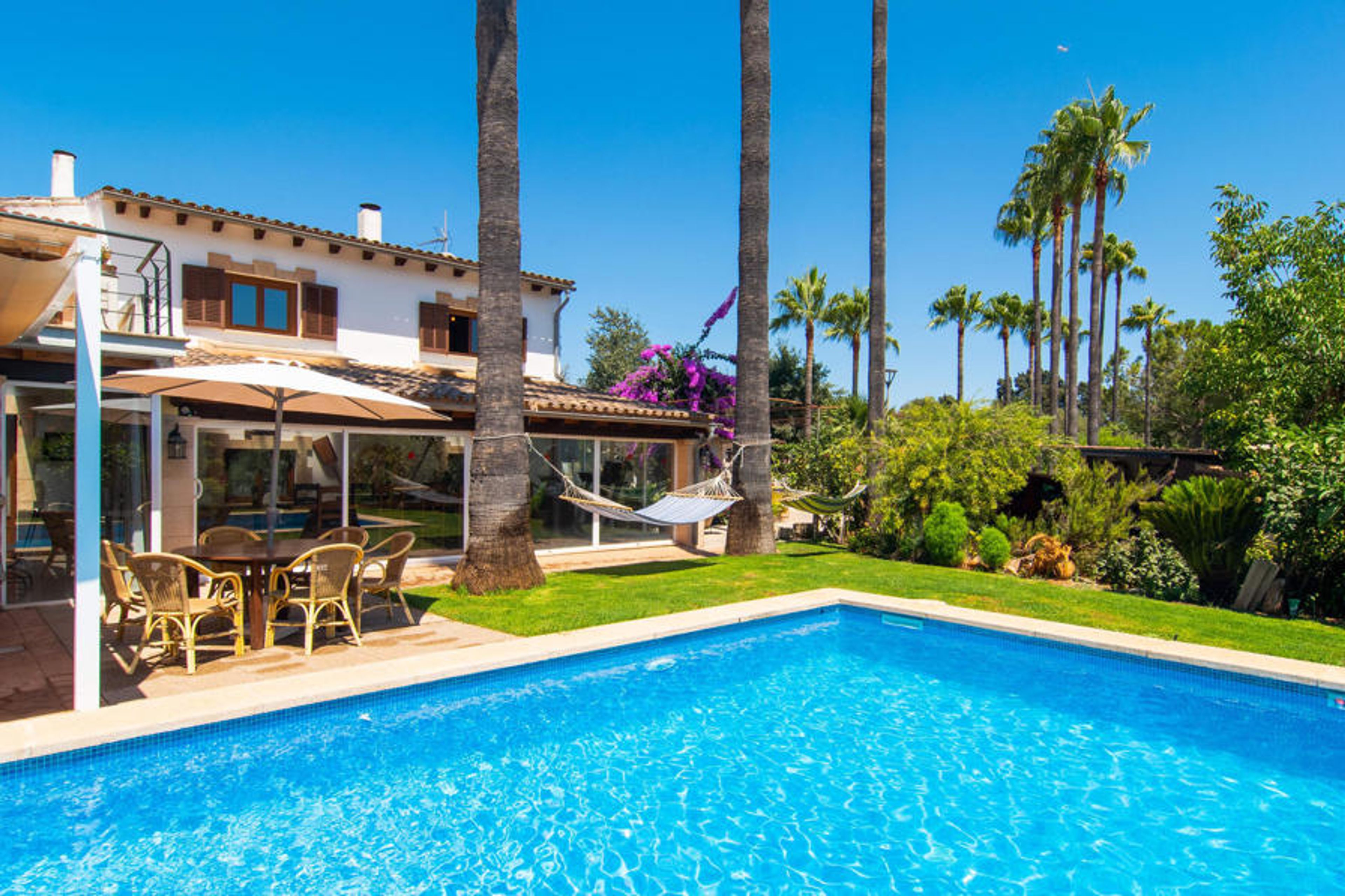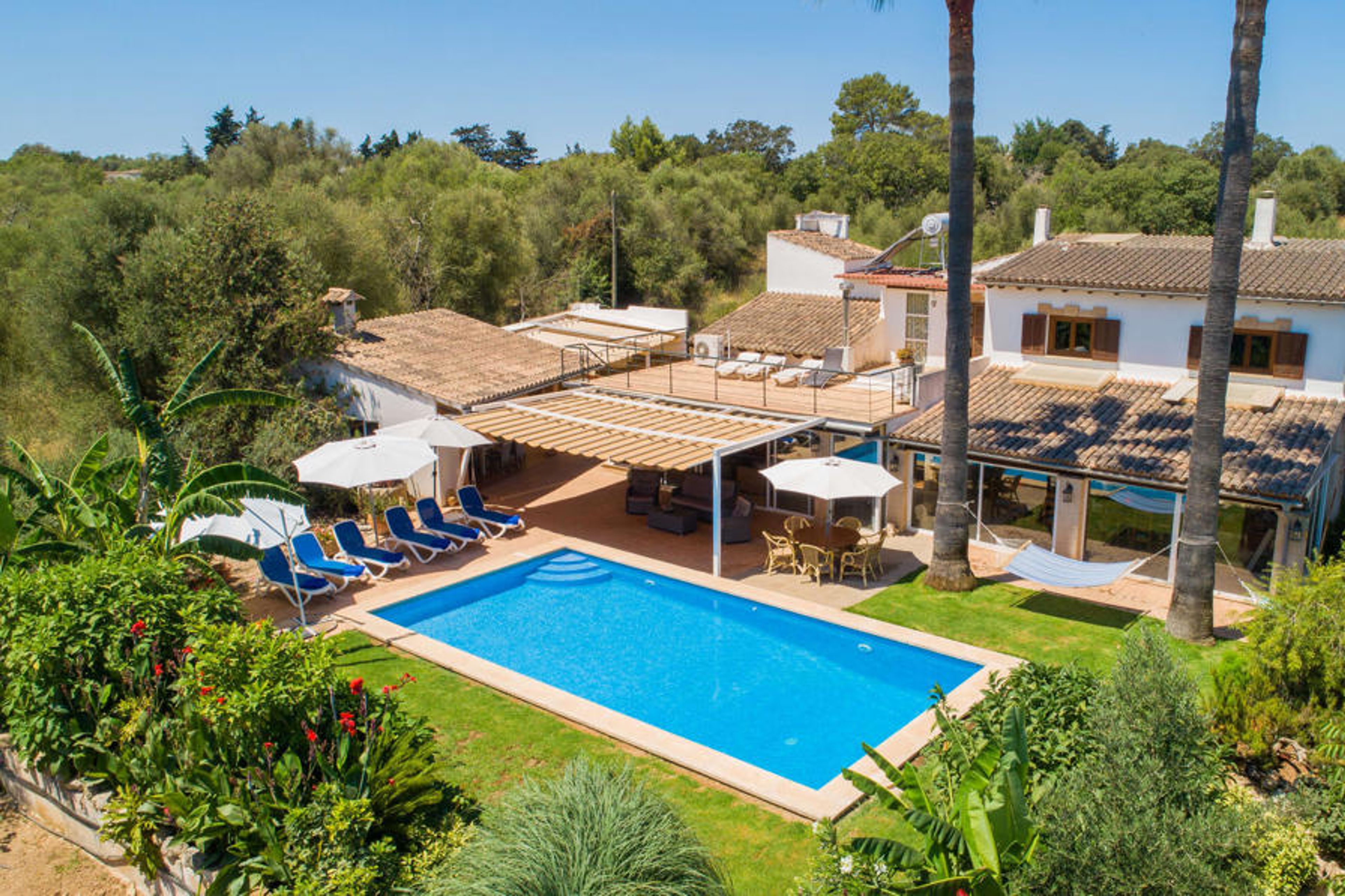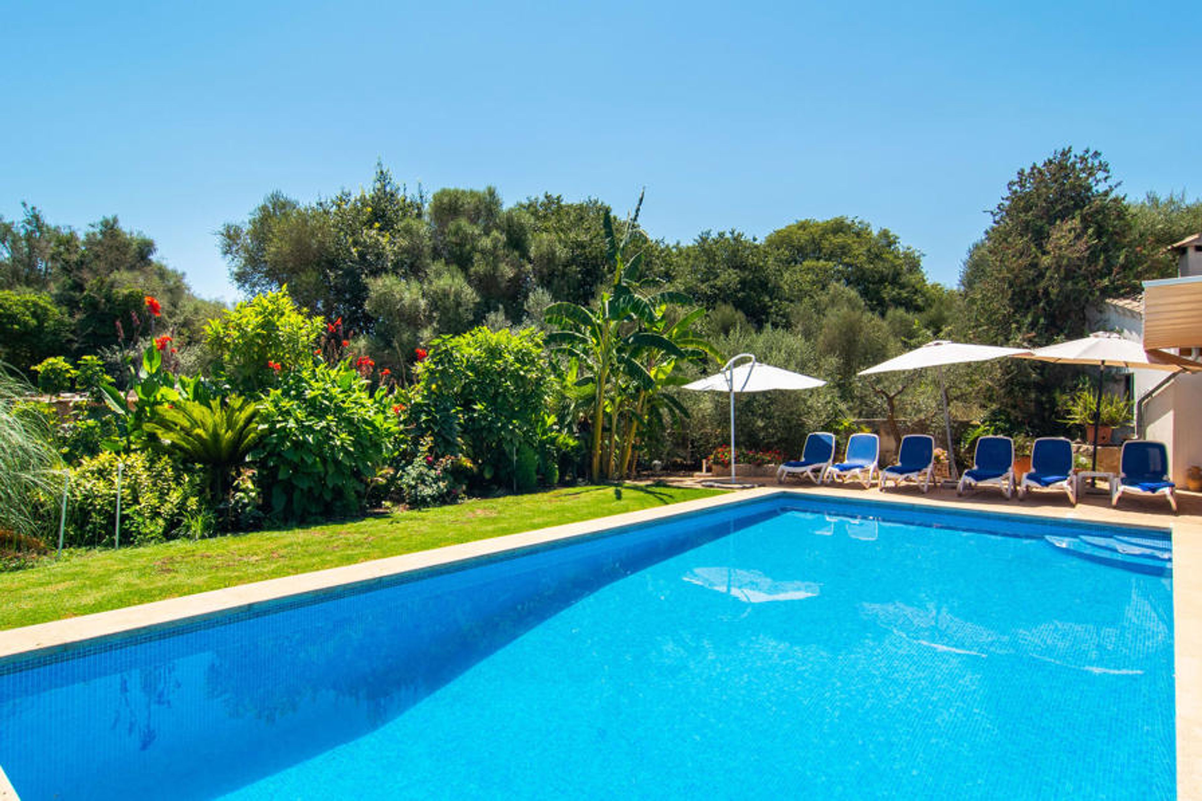 Some places you just don't want to leave once you've set foot in them. Villa Can Tomeu de Llubi could be one of these places for you, as relaxing afternoons in the two hammocks suspended between majestic palm trees, for example, are extremely relaxing. The refreshing and impressive pool measures 10 metres, so you can get your circulation going with a few laps in the morning. Thanks to the open-sided outdoor kitchen, you can spend large parts of the day in the fresh air and treat yourself to a fortifying breakfast with fresh coffee after a sporty start to the day. You can also use the wood-fired oven if you fancy preparing a traditionally baked pizza later in the day. Modern household appliances such as a washing machine and tumble dryer are also at your disposal. The children can have fun on the swing while you make yourself comfortable in one of the cosy outdoor seating areas. This includes a creatively constructed set of furniture made from wooden pallets, over which you can stretch an awning to provide a little shade when the sun is shining. Right next to the pool you will find the obligatory sun loungers so that you can top up your vitamin D stores while on holiday. The house itself is very cosily furnished, which makes it clear that this house belongs to a local. In the conservatory you will find a small stove as well as a leather sofa from which you can watch great films. This room also has a long dining table in case it gets too chilly to eat outside. A wooden door leads into the cosily furnished kitchen. A dishwasher ensures that you don't waste too much of your relaxation and discovery time doing chores. A sleeping area branches off to the left, consisting of a ground-floor bathroom and a double bedroom. If you turn right from the kitchen, you enter another living room with armchairs and a sofa, in front of which is a large fireplace. From this room, a narrow staircase leads to the upper floor, where there are two further double bedrooms, each with its own bathroom. The tasteful furnishings make you feel at home and provide space for your travelling gear. One of the upper bedrooms also offers access to an outdoor balcony with a wonderful view. The air conditioning and heating ensure that the villa is kept at a pleasant temperature all year round, allowing you to explore the beauty of this attractive holiday region at different times of the year. Far from the tourist centres, Llubí, Sineu and Costitx offer a more medieval charm, while you can also buy souvenirs in chic Inca. Olive groves and windmills characterise the lovely landscape, which offers peace and tranquillity with excursion destinations such as the Ermita del Sant Crist del Remei. You can cycle to lively weekly markets in villages such as Lloret de Vistalegre, Montuiri, Ariany or Petra. Or you can hop in your hire car and drive to the seemingly endless beach promenade of Can Picafort, which is only 20 minutes away. Due to the connection to the road network, there may be audible traffic noise depending on the wind direction, but you can drive in any of the four cardinal directions and enjoy the wonderful nature of the island while hiking, swimming and walking. Villa Can Tomeu de Llubi is the perfect place for you if you want to immerse yourself in the Mallorcan joie de vivre: With Llubí, Santa Margalida and Muro, quaint, cosy island villages are just a stone's throw away. At the same time, you can enjoy the benefits of a wooded, rural location. You can sample regional wine in the leather and wine town of Inca. The beaches around Can Picafort, such as Son Baulo or Playa de Muro, are less than 19 km away. Pollença is 23 km away and is a great starting point for hiking tours in the mountains.