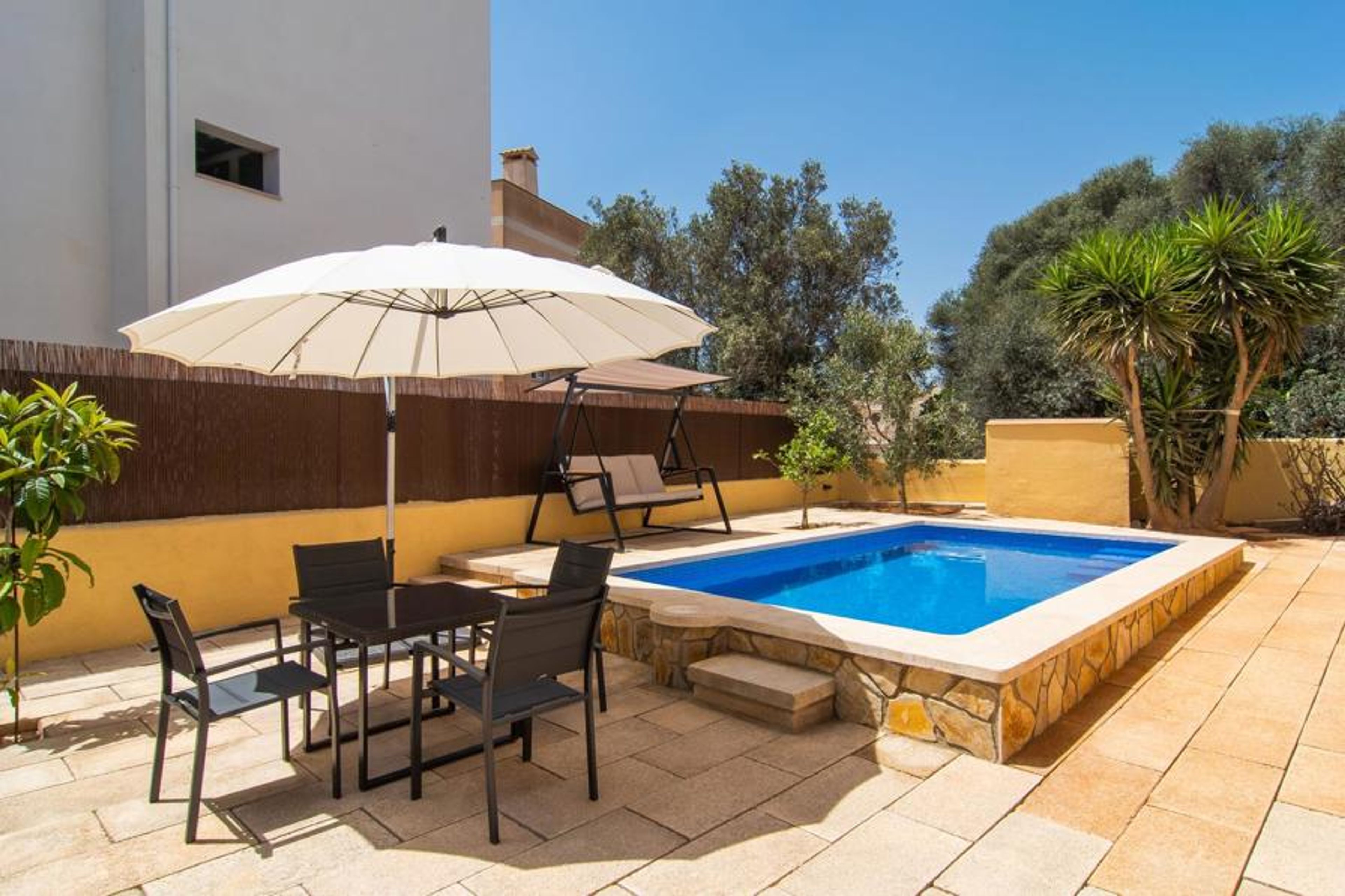 The house itself can be described as typically Mallorcan in terms of its interior design: Design elements such as pots and plates on the walls hark back to the island's agricultural past, which had nothing in common with the celebrity splendour of today. We deliberately avoid pompous highlights, but the cosy house on Mallorca doesn't need them. After all, it's the get-togethers in the cosy living room, the convivial cooking in the fully equipped kitchen and the quiet nights in the practically furnished four double bedrooms that make this down-to-earth property so appealing. Two of the bedrooms have a king-size bed, two have two single beds each, so that different travelling constellations are conceivable. Two bathrooms ensure that there are no queues for the shower in the morning. Fans ensure that the sultry summer days don't go to your head. Thanks to Smart TV, you can also relax with a good film in the evening.
