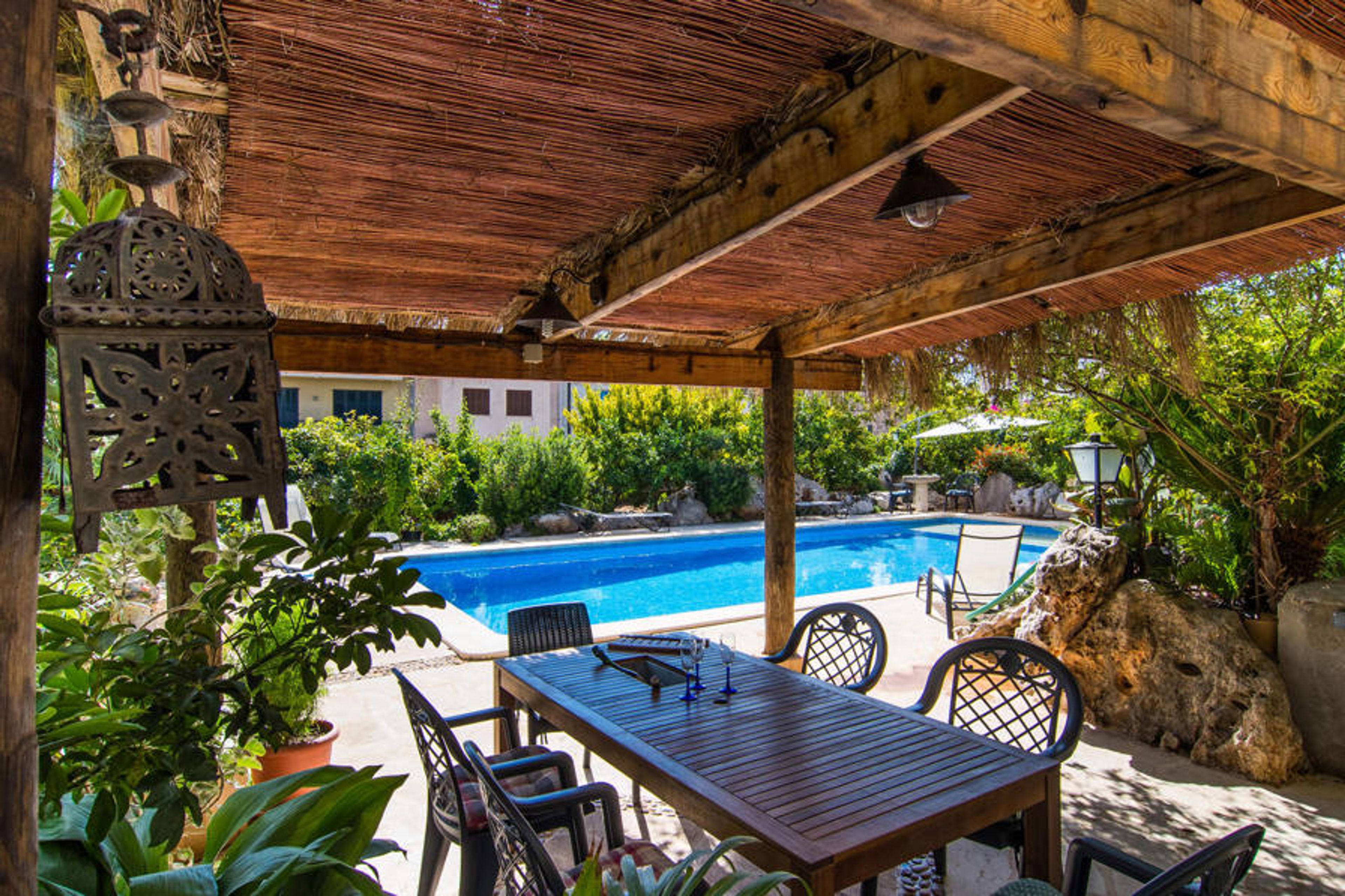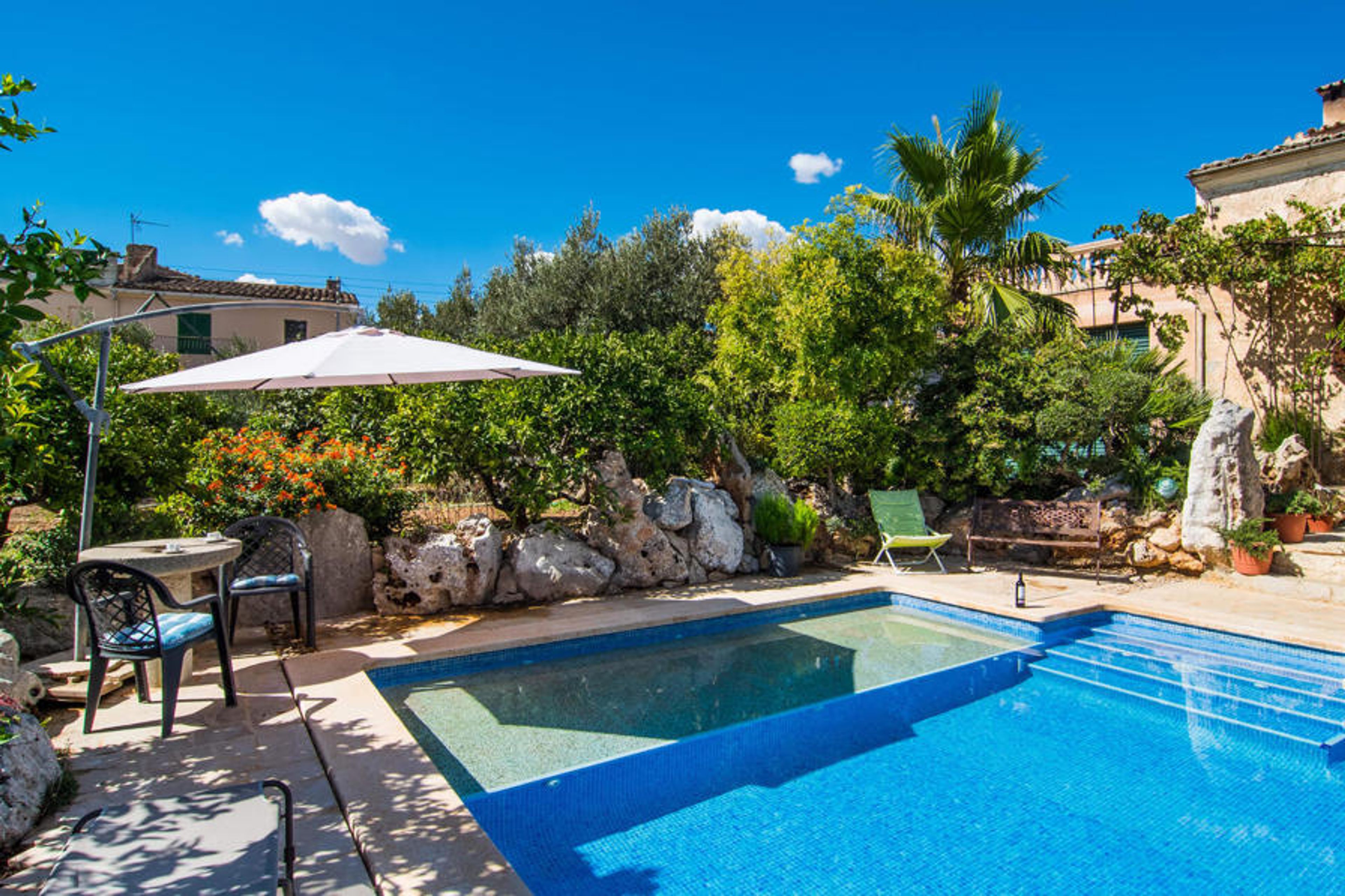 Discover a charming villa that is over 300 years old and seamlessly blends history and modern comforts. Surrounded by lush greenery and blooming flora, it offers complete privacy in a tranquil oasis. The terrace with a large pool, sun loungers and shaded areas invites you to relax. Enjoy a hammock under an olive tree or get together for a barbecue while sipping local wine from the Miquel Oliver winery.
