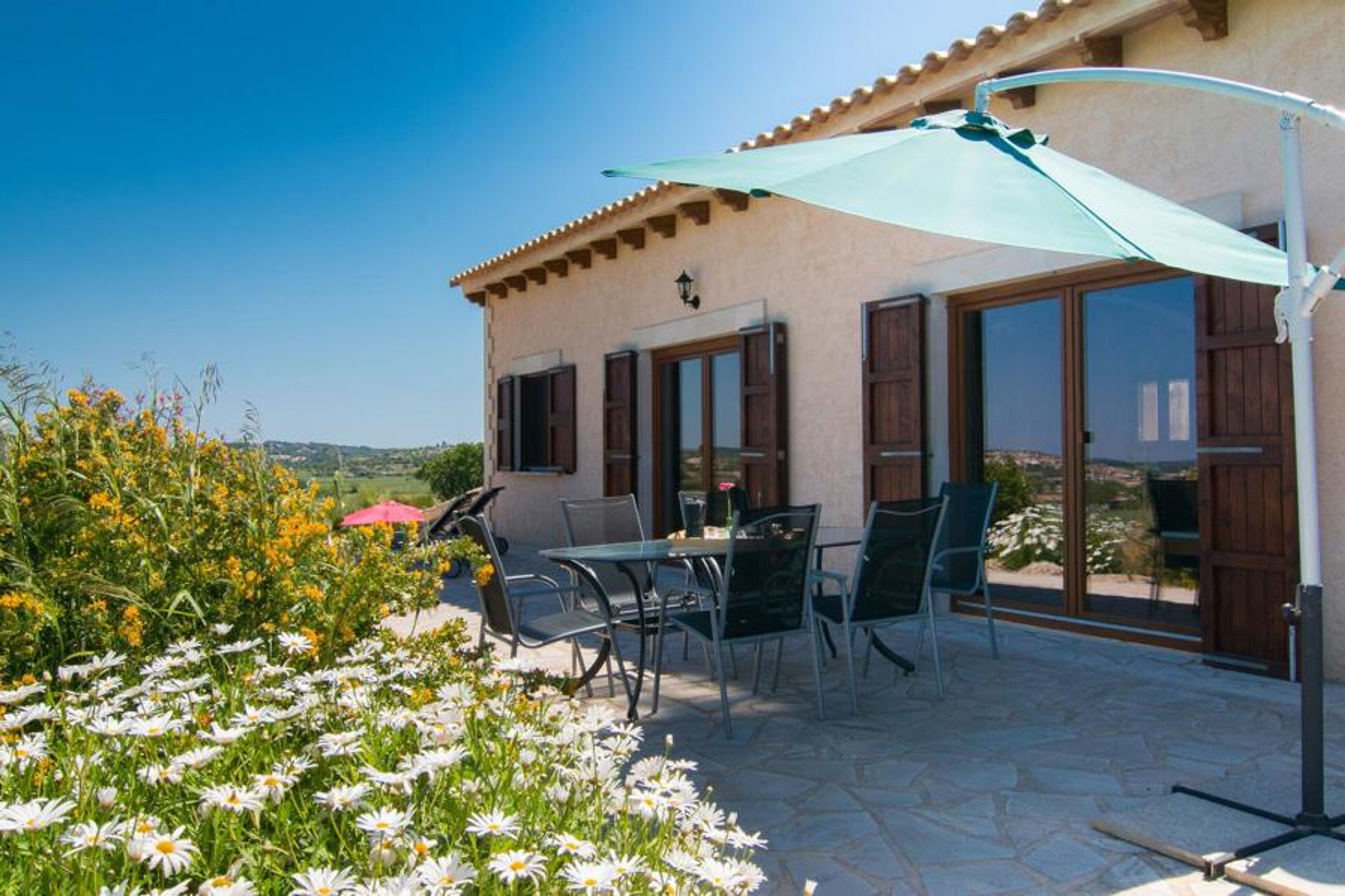 The charming holiday home Buena Vista enjoys an absolutely quiet, secluded location in the beautiful centre of Mallorca. A relaxing holiday with up to four people awaits you here. The surrounding plot is slightly hilly and lush with greenery depending on the season. As there are no boundary walls here, there is always a feeling of space. The view extends to the Tramuntana mountains, the Randa mountains and the silhouette of the village of Montuiri. The well-kept outdoor area offers various, partly covered terraces and a spacious pool area. It is embedded in fine Mallorcan sandstone and is easily accessible via beautiful flagstone paths. The cosy barbecue area by the pool can also be used during the day as a pleasant shady oasis.