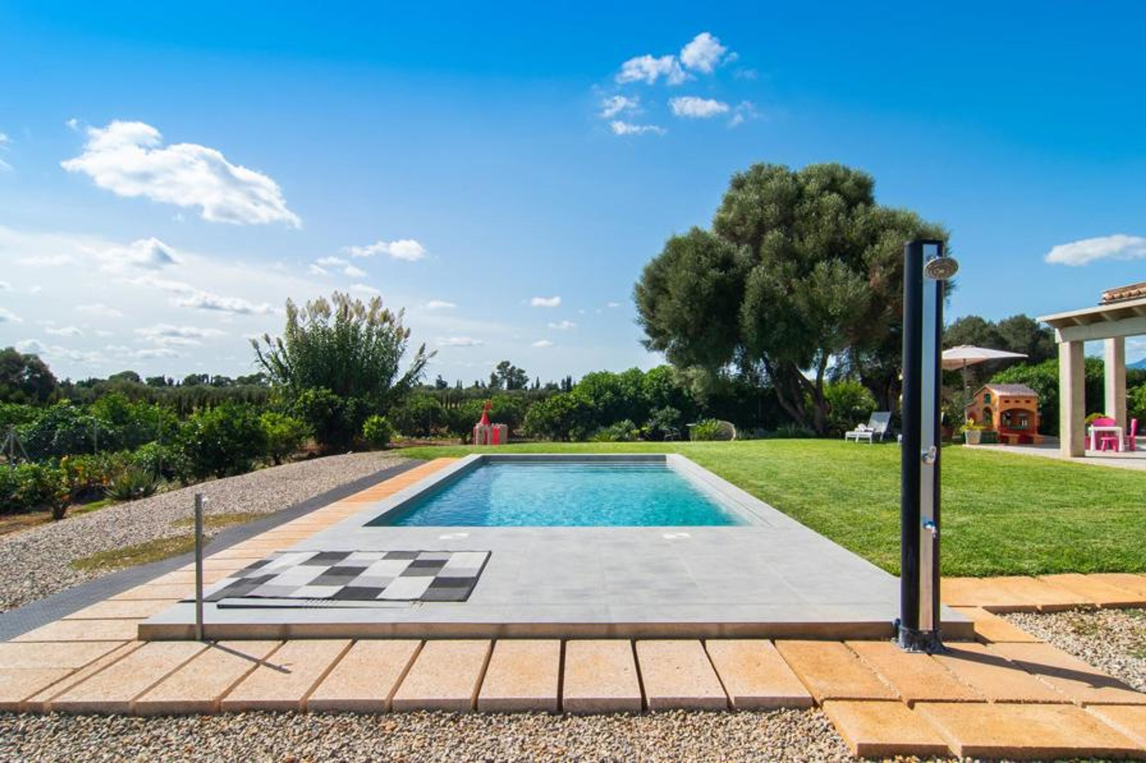 The family-friendly Finca Albaimar is a perfect blend of rustic charm and modern comfort. The practical driveway to your holiday home in the heart of Mallorca is lined with the finca's own citrus trees. Upon arrival at the beautifully landscaped property, there is ample open parking space for several hire cars. On the other side of the finca is a well-kept, south-east facing garden. The spacious, covered veranda, equipped with comfortable seating and dining areas, overlooks a chlorine-free, gently sloping pool, which is easily accessible via a wide staircase. In between is a well-tended lawn that invites you to walk barefoot. The outdoor facilities include a high-quality gas barbecue, an outdoor shower, a trampoline, a children's slide and various other play options for younger guests. From the roof terrace you can enjoy a sensational panoramic view over the idyllic landscape as far as the Tramuntana mountains.