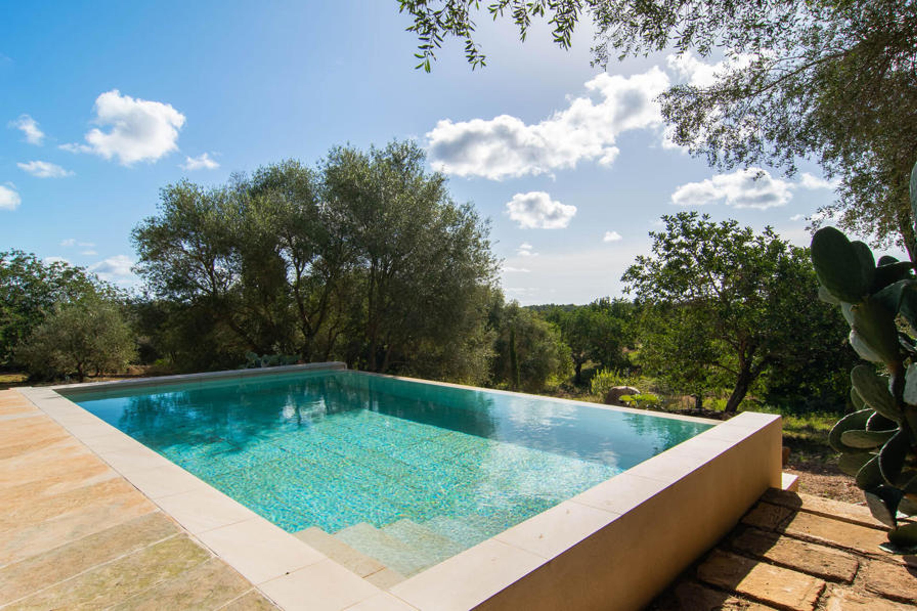 The historic Son Poca Palla farmhouse is a perfect example of a Mallorcan-style holiday. The old quarry stone walls have been lovingly preserved. It is surrounded by an unspoilt garden full of majestic fruit and olive trees and the magic of Mediterranean flowering plants. Children will find plenty of opportunities to play on the property (there is also a basketball hoop). Adults can relax in peace and enjoy their holiday on a traditional Mallorcan finca. The fabulous infinity-style saltwater pool offers a marvellous view of the garden and the countryside. Afterwards, you can sunbathe in comfortable sun loungers. An outdoor shower and toilet are available. In addition to further outdoor seating areas in the greenery, the covered outdoor kitchen with barbecue, cooking facilities and cosy dining area is another highlight of this first-class holiday home close to nature.
