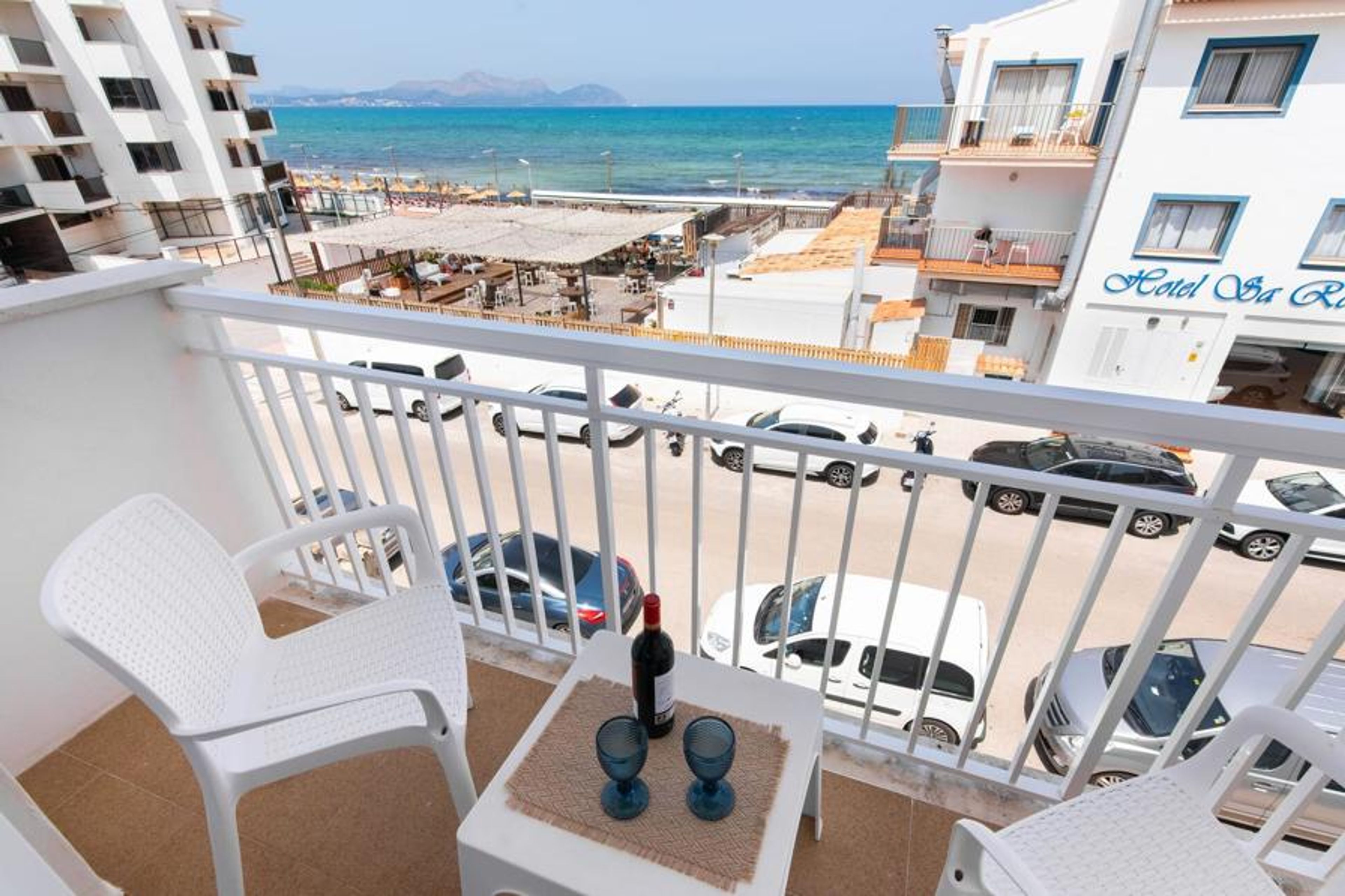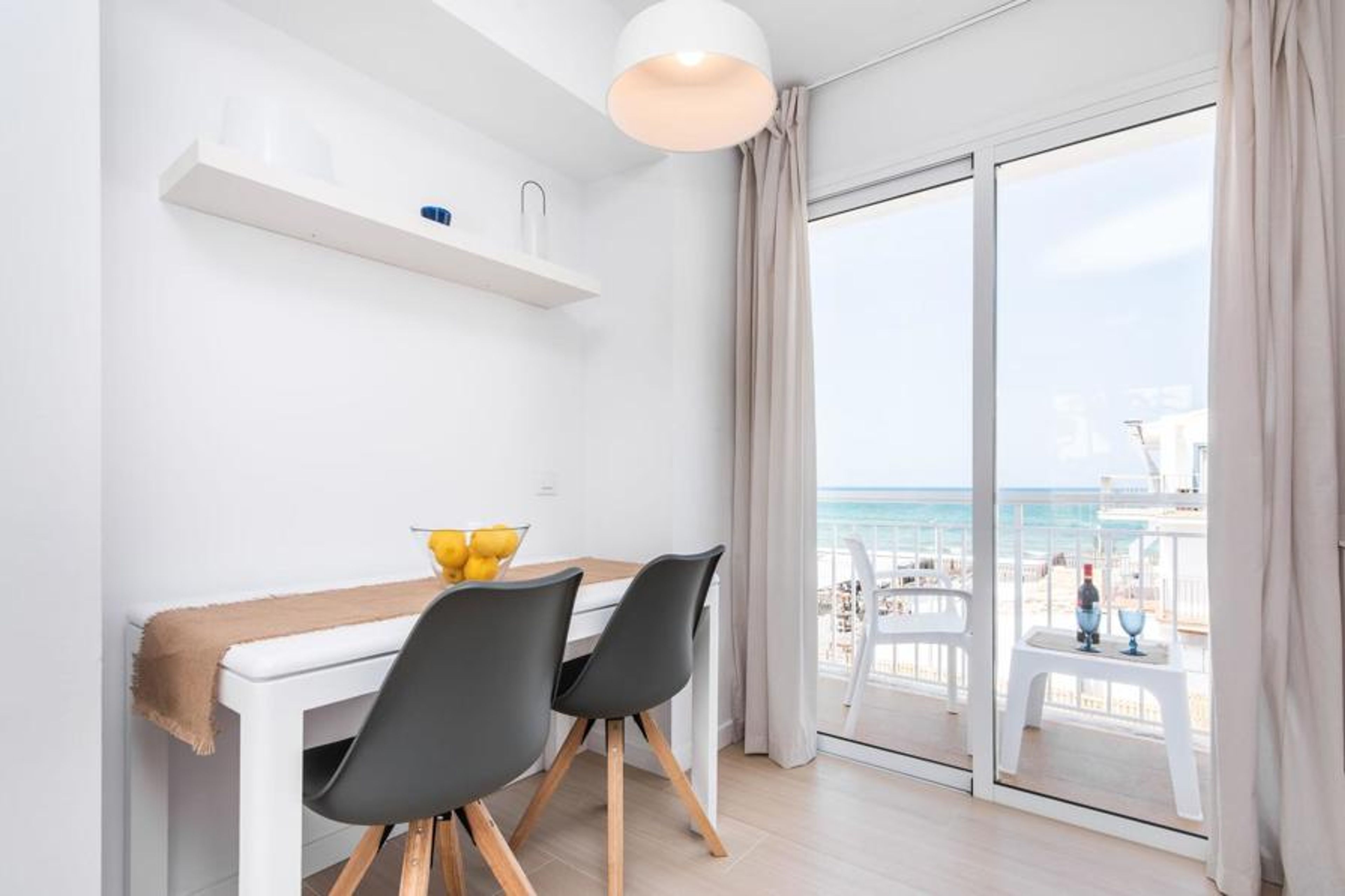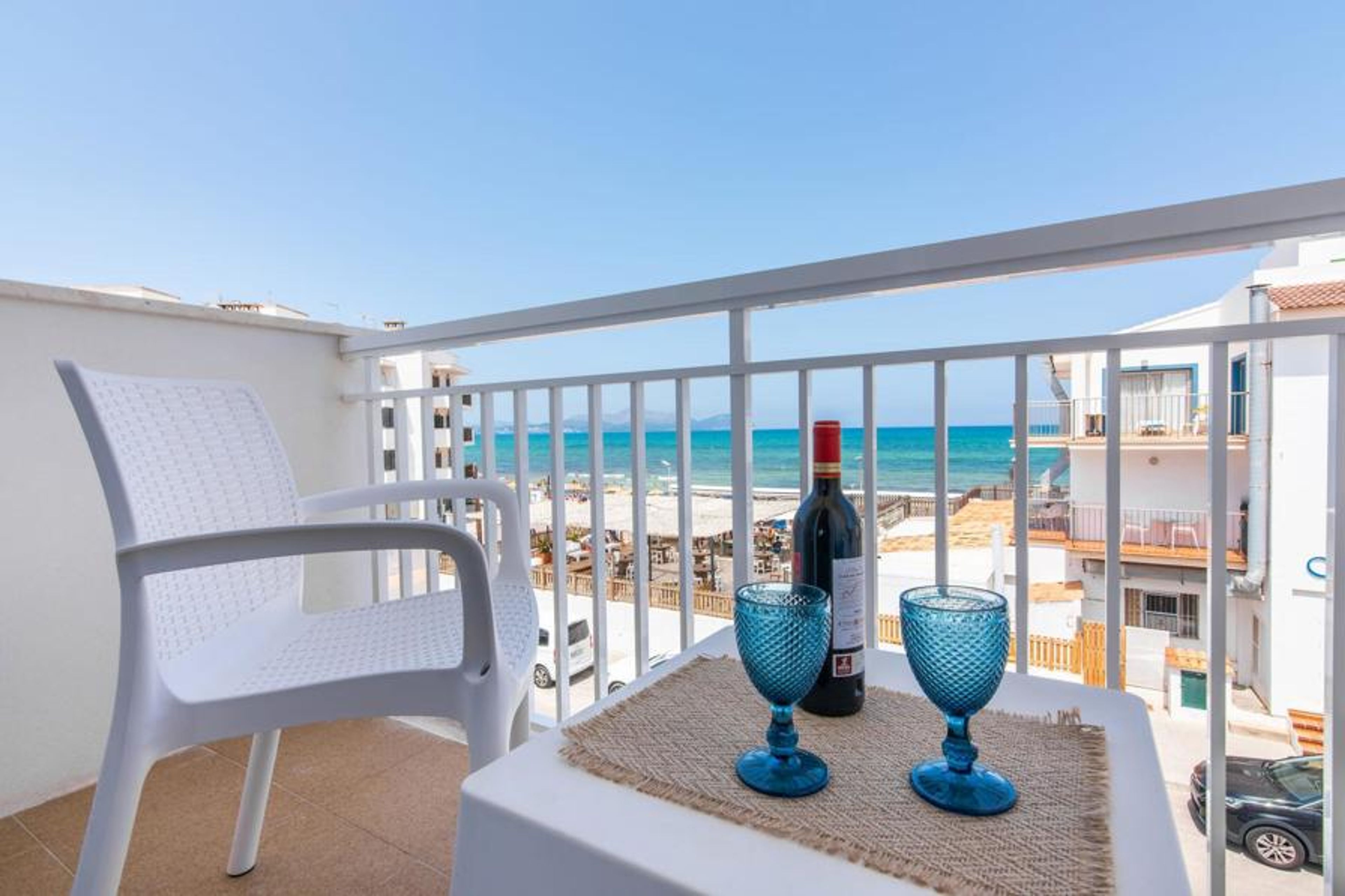 Two friends or a couple who want to be close to the beach and within walking distance of all amenities will find a comfortable retreat in this beautiful holiday apartment on Mallorca. From the small, east-facing balcony, where the two of you can enjoy a delicious breakfast at sunrise, you have a view of the beach just a few steps away, the turquoise-coloured sea and the Victoria Peninsula in the background. The seaside is almost right at your feet.
