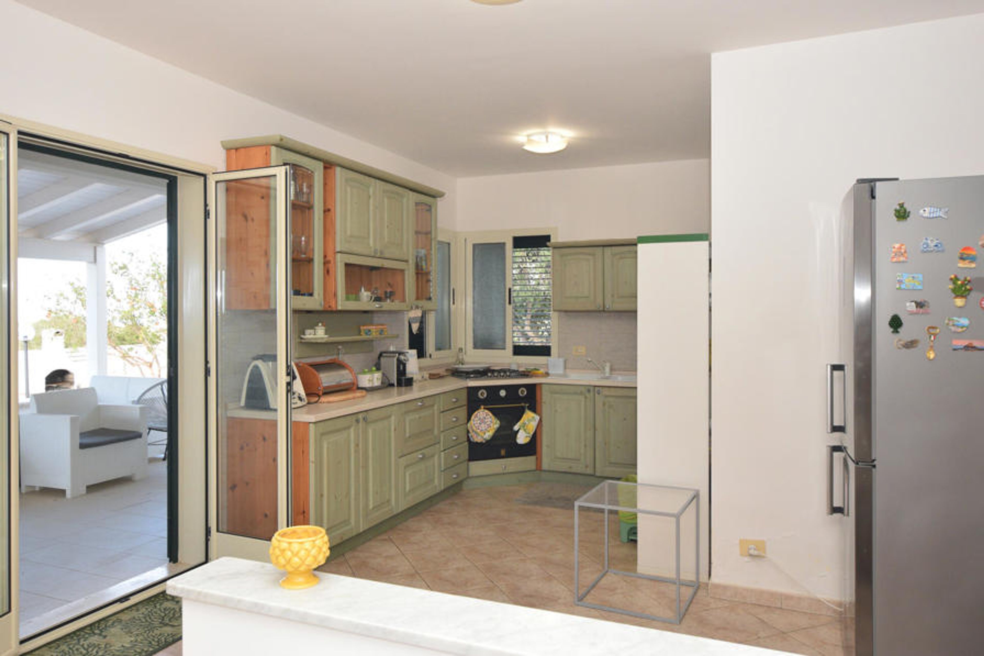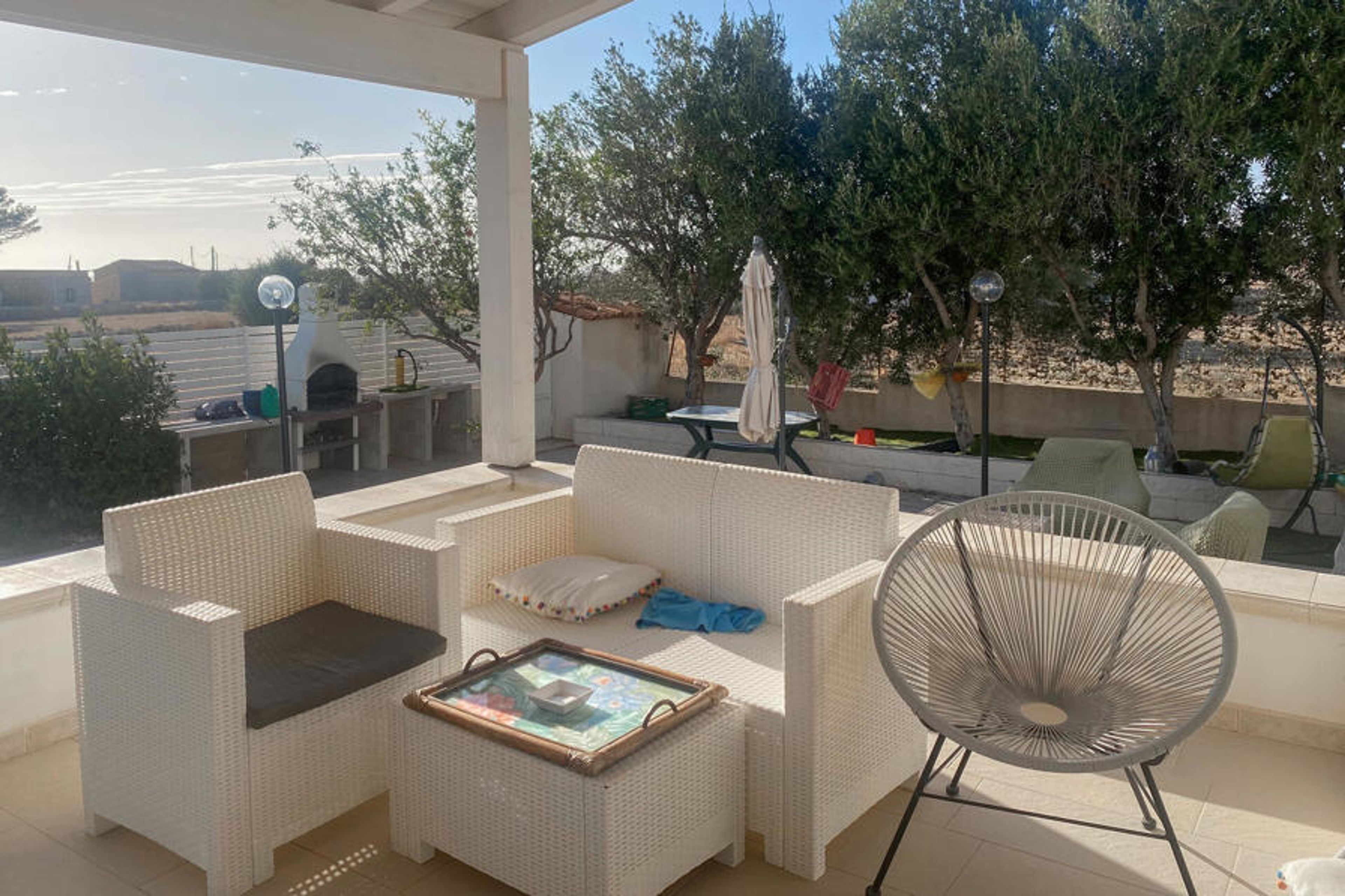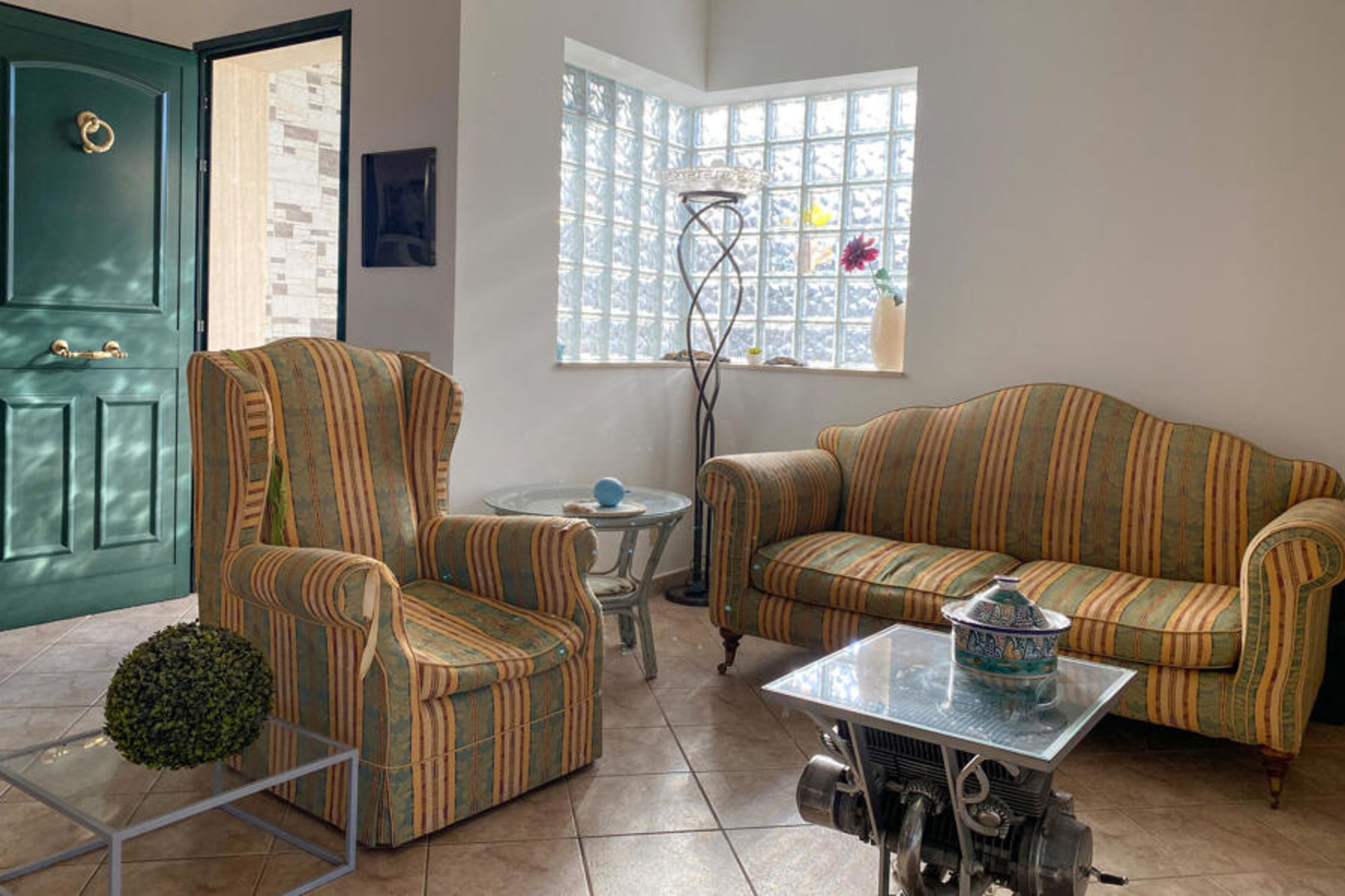 Welcome to the inviting house, which welcomes its guests with cosy rooms with beautiful wooden elements. Prepare a delicious breakfast and enjoy it in the cosy living area or outdoors, surrounded by a green oasis of olive trees and palm trees.