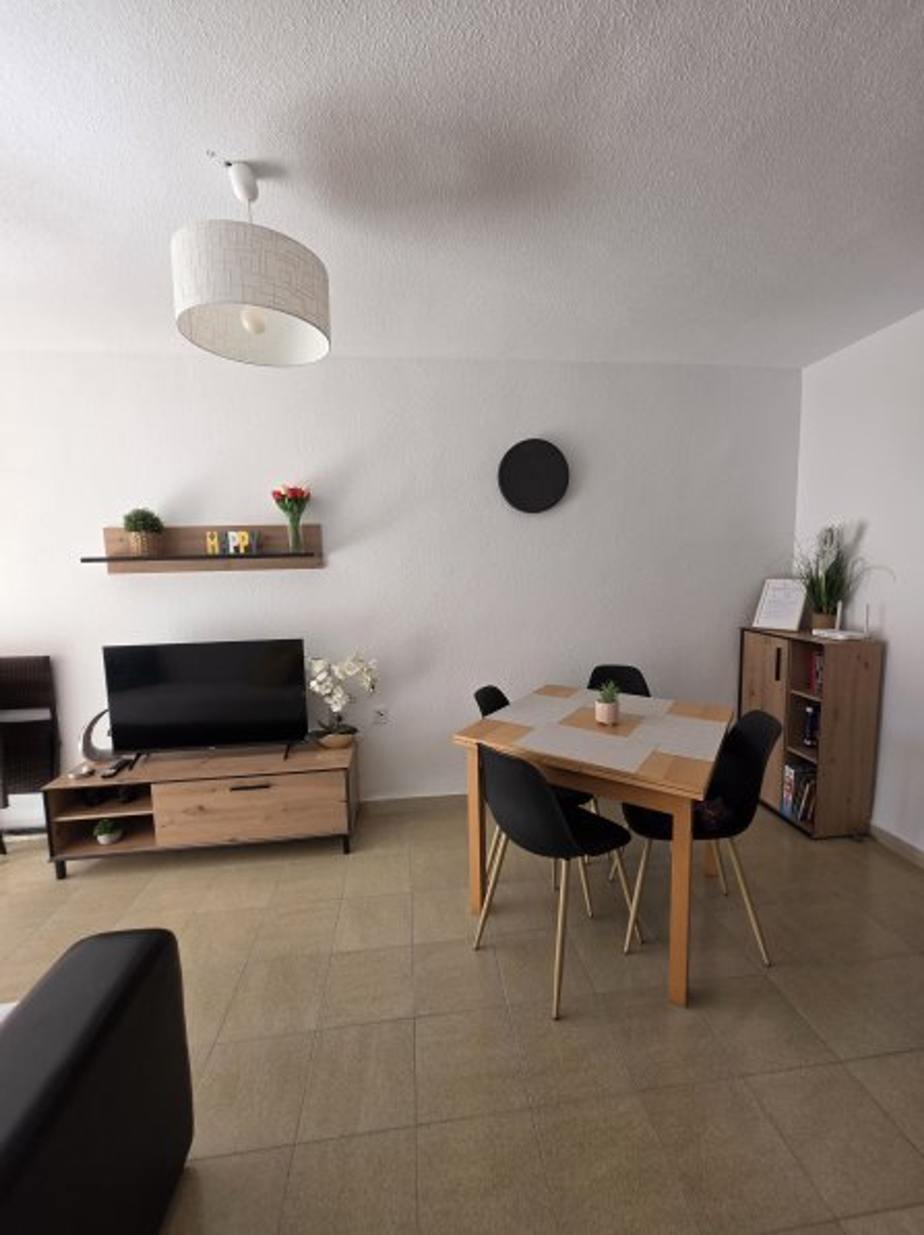 The apartment is well equipped with everything you need for a carefree and relaxing vacation by the sea – air conditioning, free fast WiFi, large flat smart TV, induction hob, microwave, coffee maker, kettle, toaster, washing machine, hair dryer, iron with ironing board, beach folding chairs and beach toys for kids.