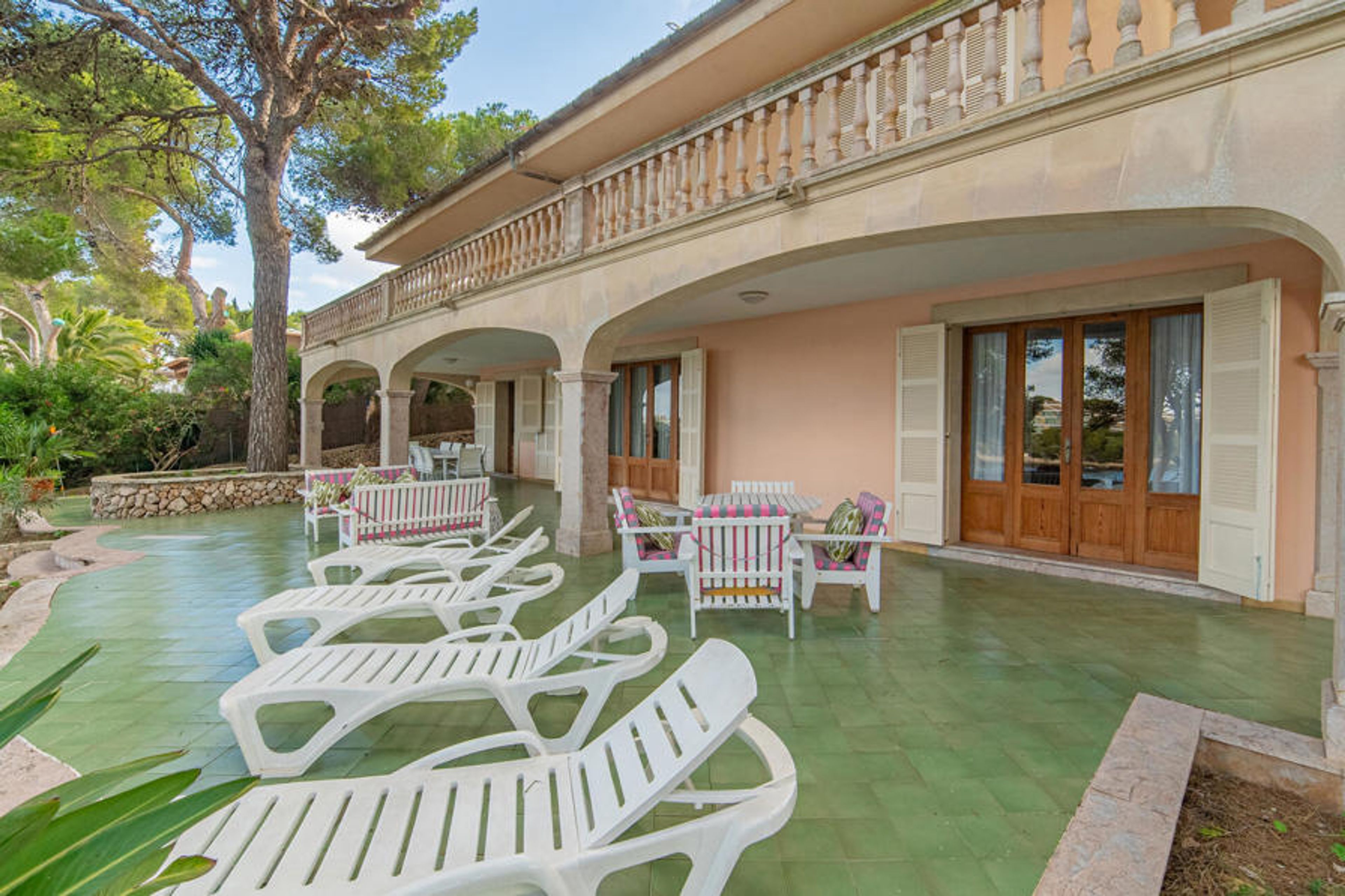 You live on the ground floor of the two-storey villa in the first sea line. Five spacious double bedrooms await you here with room for up to 10 guests. Two of the sleeping areas have their own en suite bathroom; there are also two further bathrooms. Large windows allow plenty of natural light into the cosy rooms. Look forward to a relaxing holiday with family or friends in this exclusive location on Mallorca.