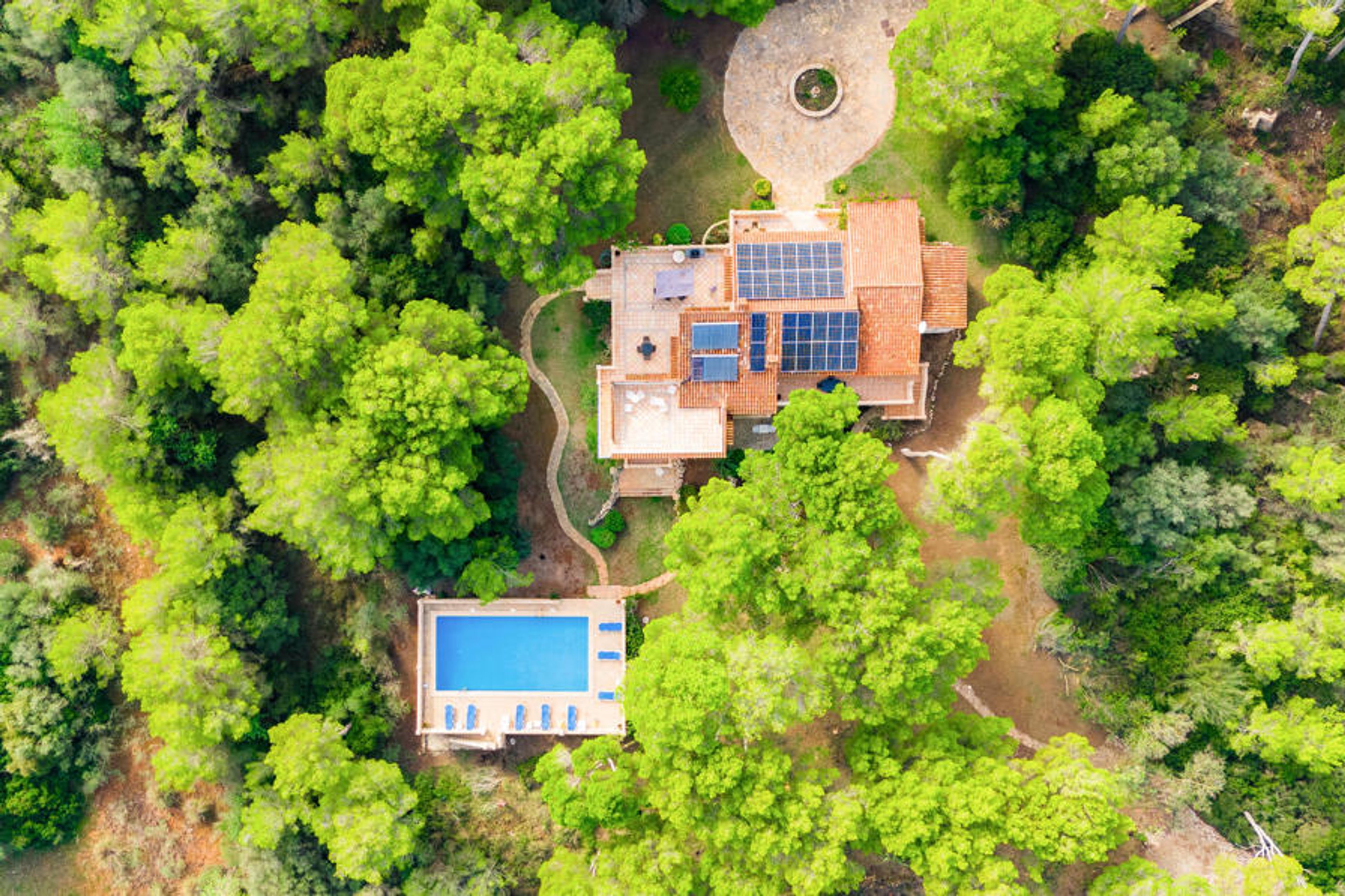 The extensive 14,000 m² garden with a 10 x 5 metre pool surrounded by a sun terrace with loungers is an ideal place to relax. Tall pine trees offer plenty of privacy and create a cosy, Mediterranean atmosphere around the house. A large terrace is directly accessible from the house, with a lovely dining area in the shade.