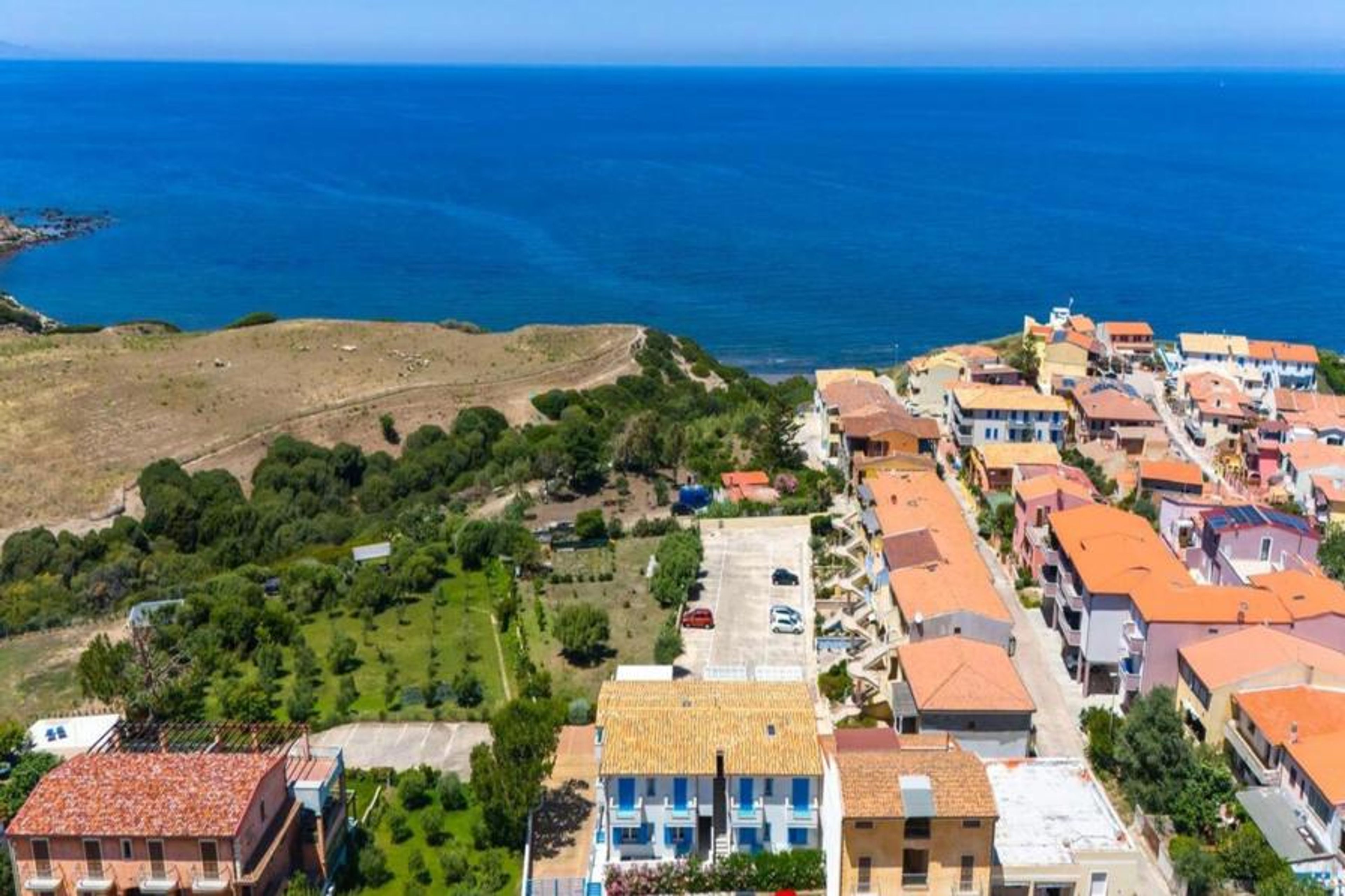Modern apartment block "Ambra", 2 storeys, built in 2019. 6 apartments in the residence. In the resort La Ciaccia, 3 km from the centre of Valledoria, in a sunny position, excellent location: right in the centre but still quiet, 250 m from the sea, 700 m from the beach. Parking at the house. Grocery 200 m, supermarket 2 km, restaurant, bar 20 m, bus stop 3 km, sandy beach "Spiaggia la Ciaccia" 700 m pebble beach 250 m. Surf school 600 m, tennis 500 m. Nearby attractions: Castelsardo 13 km, Alghero 81 km, Costa paradiso 32 km, Olbia 89 km, Porto Cervo 86 km, Porto Rotondo 92 km. Please note: car recommended, no lift.