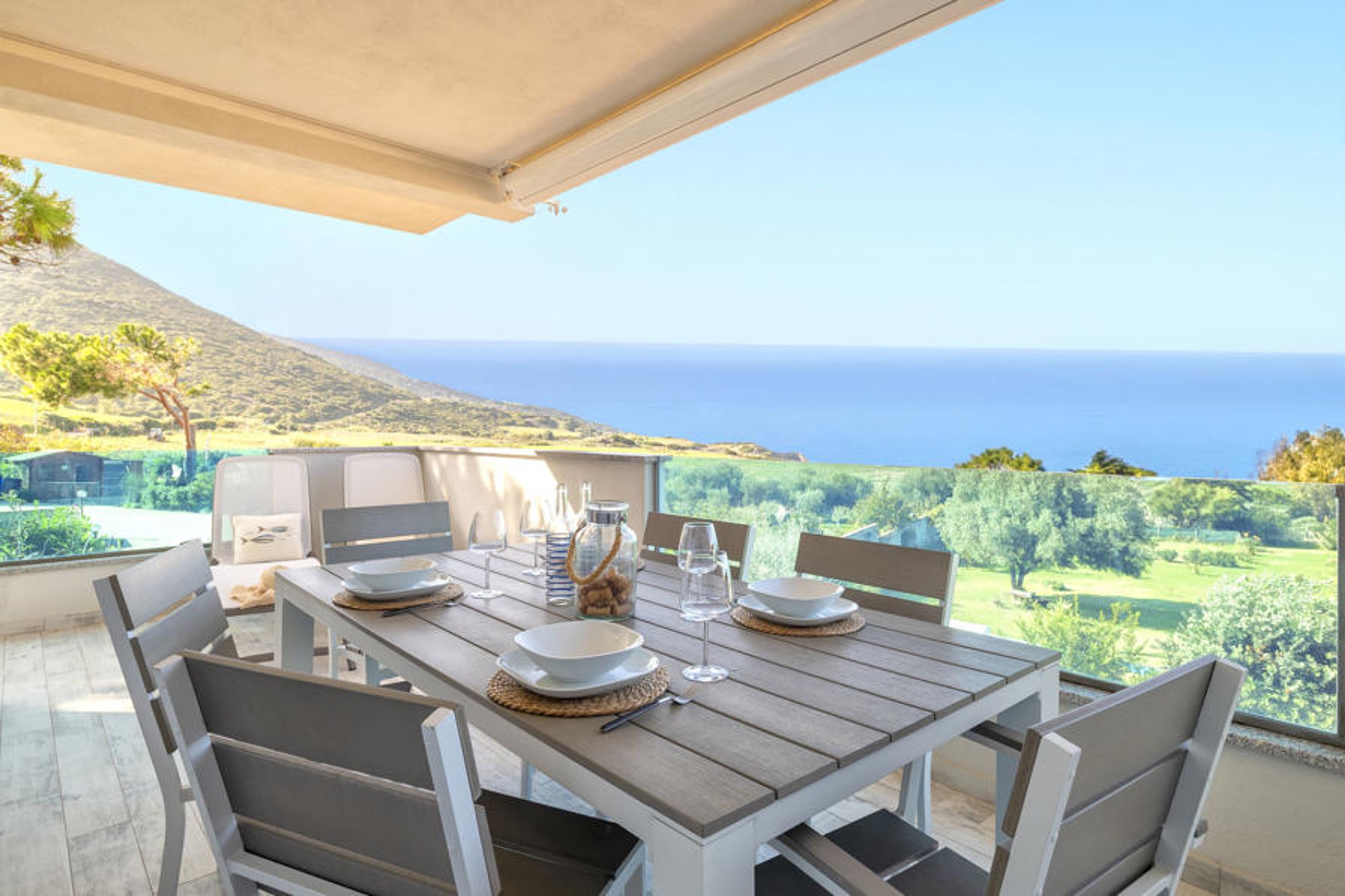 "Mare Azzurro", 3-room apartment 57 m2 on 2nd floor. Spacious and bright, modern and tasteful furnishings: living/dining room with cable TV, flat screen and DVD. Exit to the terrace. 2 double bedrooms. Kitchenette (oven, dishwasher, 4 induction hot plates, kettle, electric coffee machine). 2 showers/bidet/WC. Air-conditioning, forced-air heating. Terrace 25 m2, roofed. Terrace furniture, deck chairs, sitting area. Very beautiful panoramic view of the sea. Facilities: washing machine, iron, mosquito net, hair dryer. Internet (WiFi, free). IT090079C2000Q3190