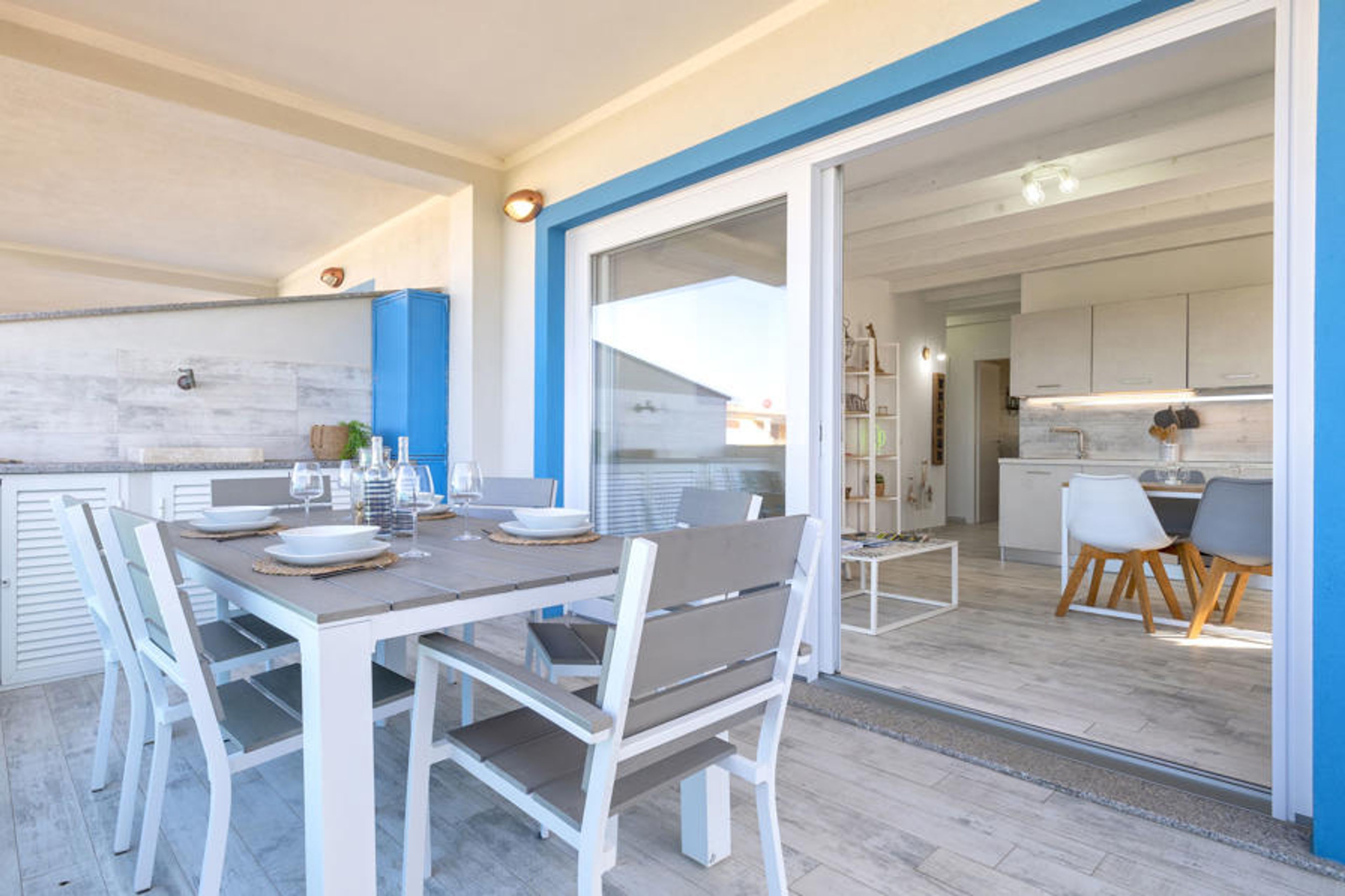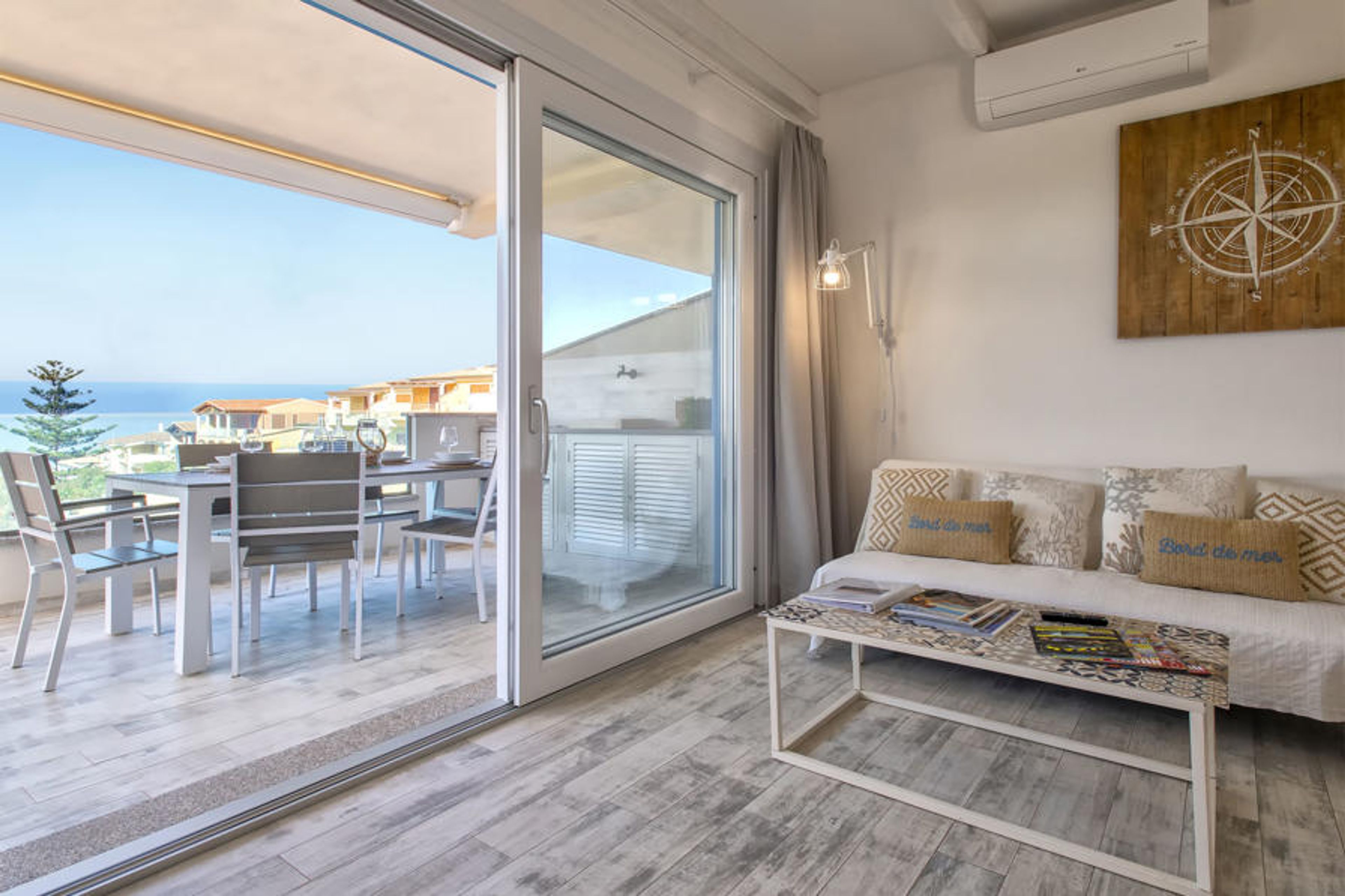 This 2 bedroom apartment is located in Valledoria and sleeps 4 people. It has air conditioning, sea views and a terrace. The apartment is within walking distance of a beach.