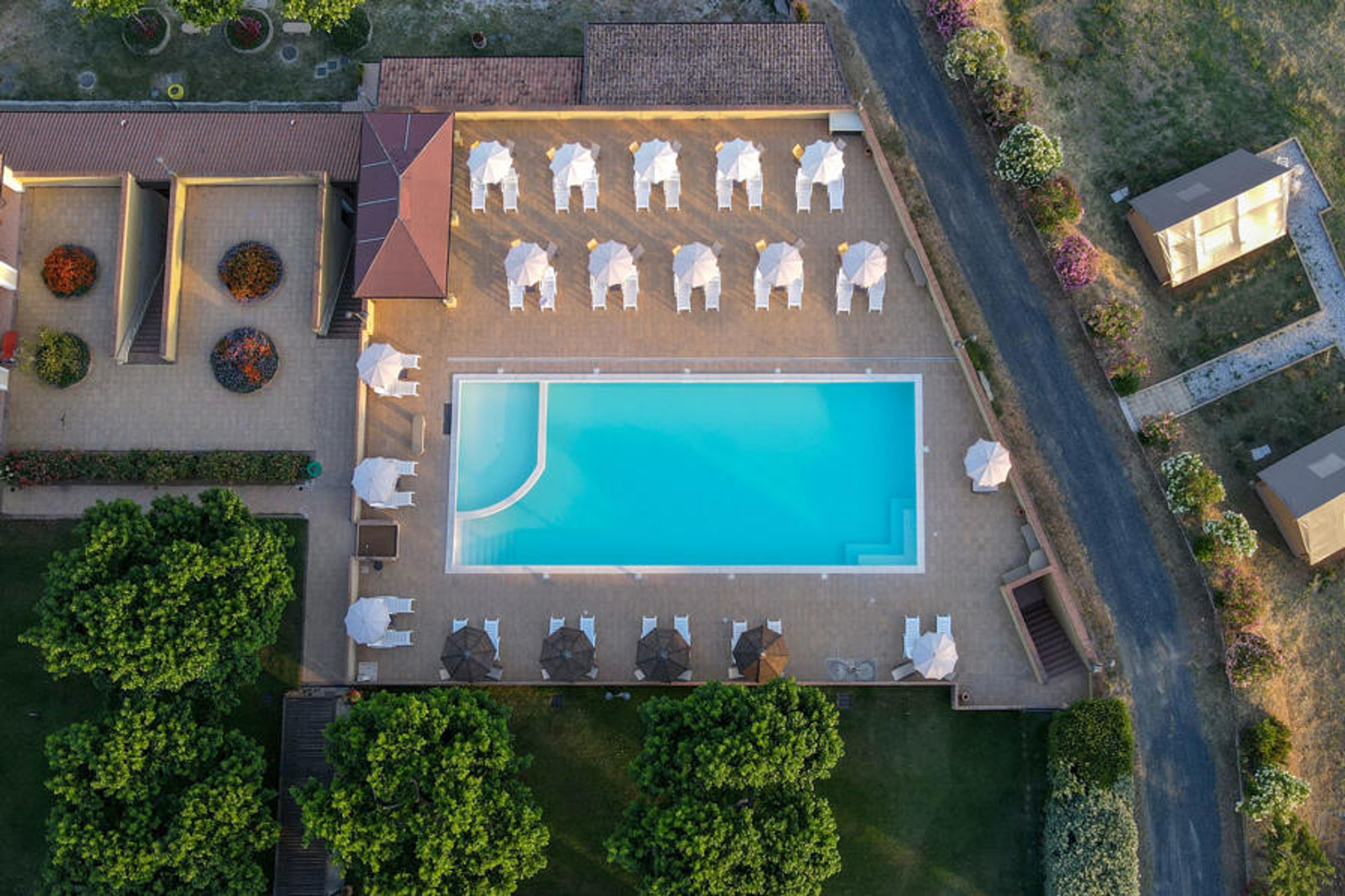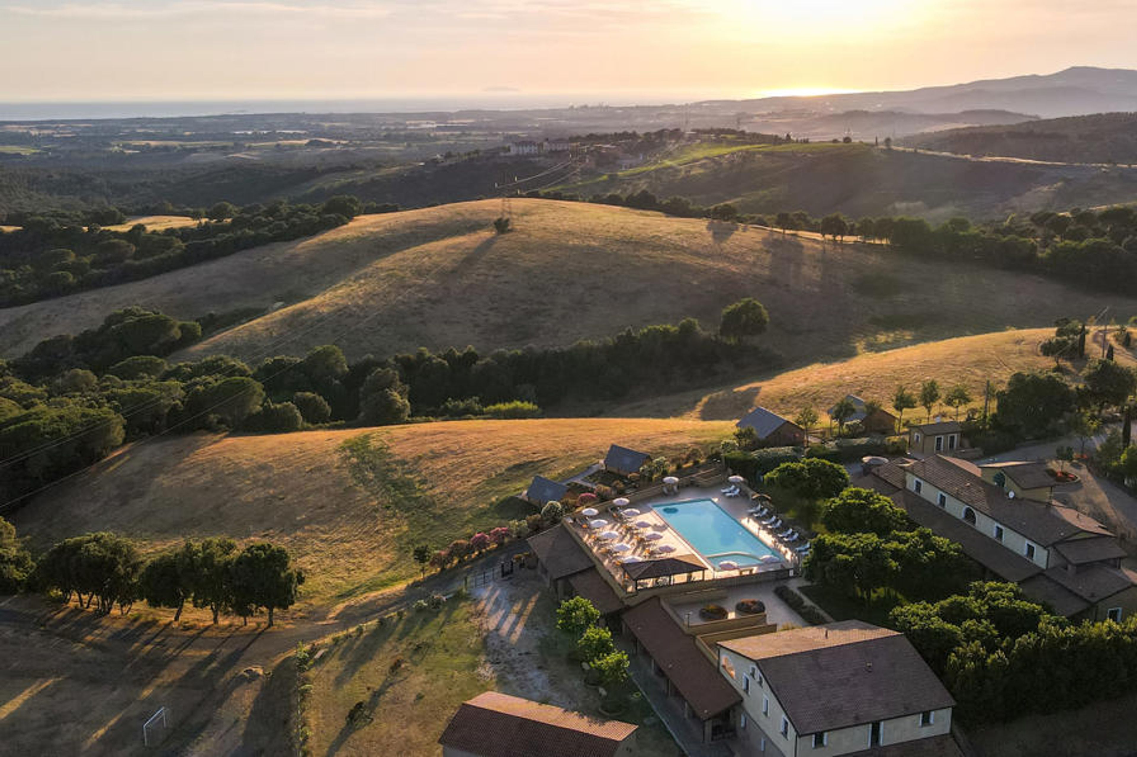 Residence "Le Debbiare". 4 houses in the residence. 10 km from the centre of San Pietro in Palazzi Cecina, 8 km from the centre of Riparbella, in a secluded, quiet position on top of a hill, 200 m from the edge of the forest, 13 km from the sea, 13 km from the beach. For shared use: property 200 ha, park 15'000 m2 (fenced), natural pond, swimming pool (20 x 9 m, depth 130 - 130 cm, seasonal availability: 17.Apr. - 27.Sep.). Outdoor shower, table tennis, boccia, barbecue, pool maintenance by the owner/gardener. In the complex: WiFi, table football, washing machine (extra) (for shared use). Linen change (suppl. charge extra). Towel change (suppl. charge extra). Bread roll service. 2.5 km long bumpy motor access (via unmade road). Parking on the premises. Shop 9 km, supermarket 9 km, shopping centre 9 km, bus stop "Giardino" 8 km, ferry "Livorno" 50 km, sandy beach "Le Gorette" 13 km, thermal baths "Calidario" 45 km. Marina 14 km, golf course (9 hole) 20 km. Nearby attractions: Bolgheri 25 km, Pisa 55 km, Lucca 75 km, Firenze 115 km. Local sale of farm products.