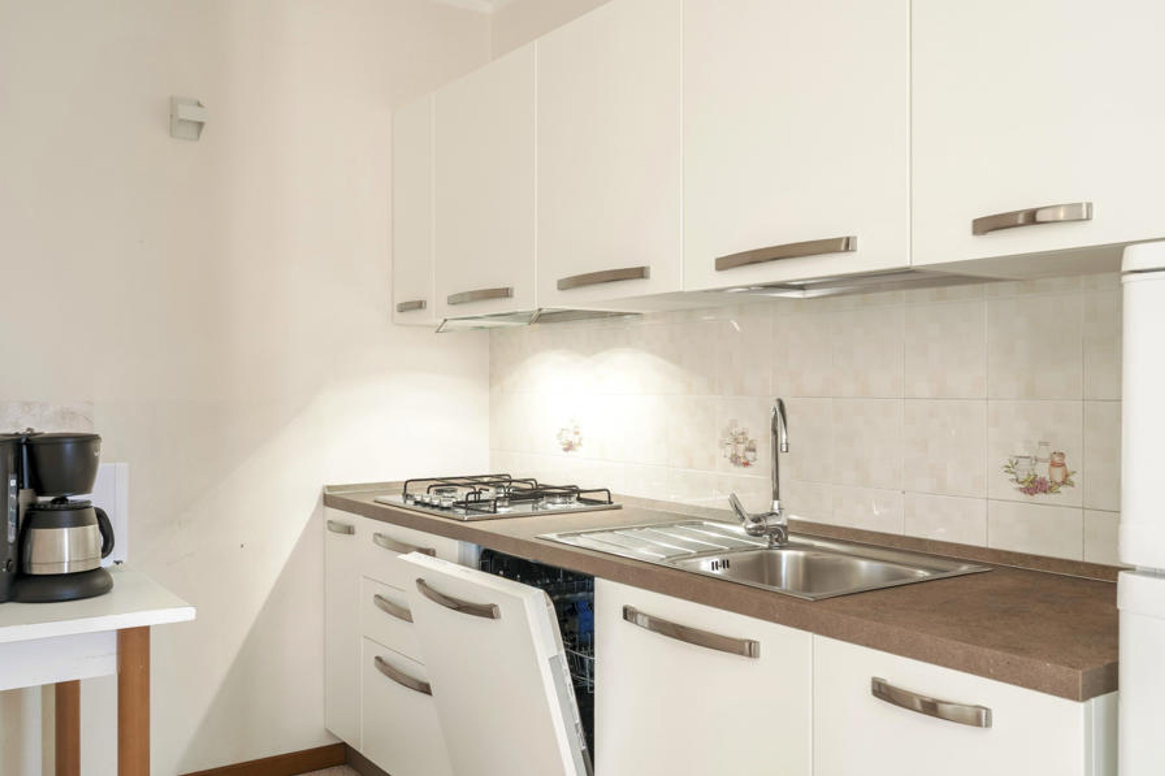 Typical terraced house with 8 apartments and a shared garden with a table and chairs. A covered parking space available for each apartment. The house is immersed in greenery, a few steps from the lake and only 2.5 km from the centre of Lazise. Communal laundry room with washing machine on the lower floor. Uncovered bicycle parking near the building.