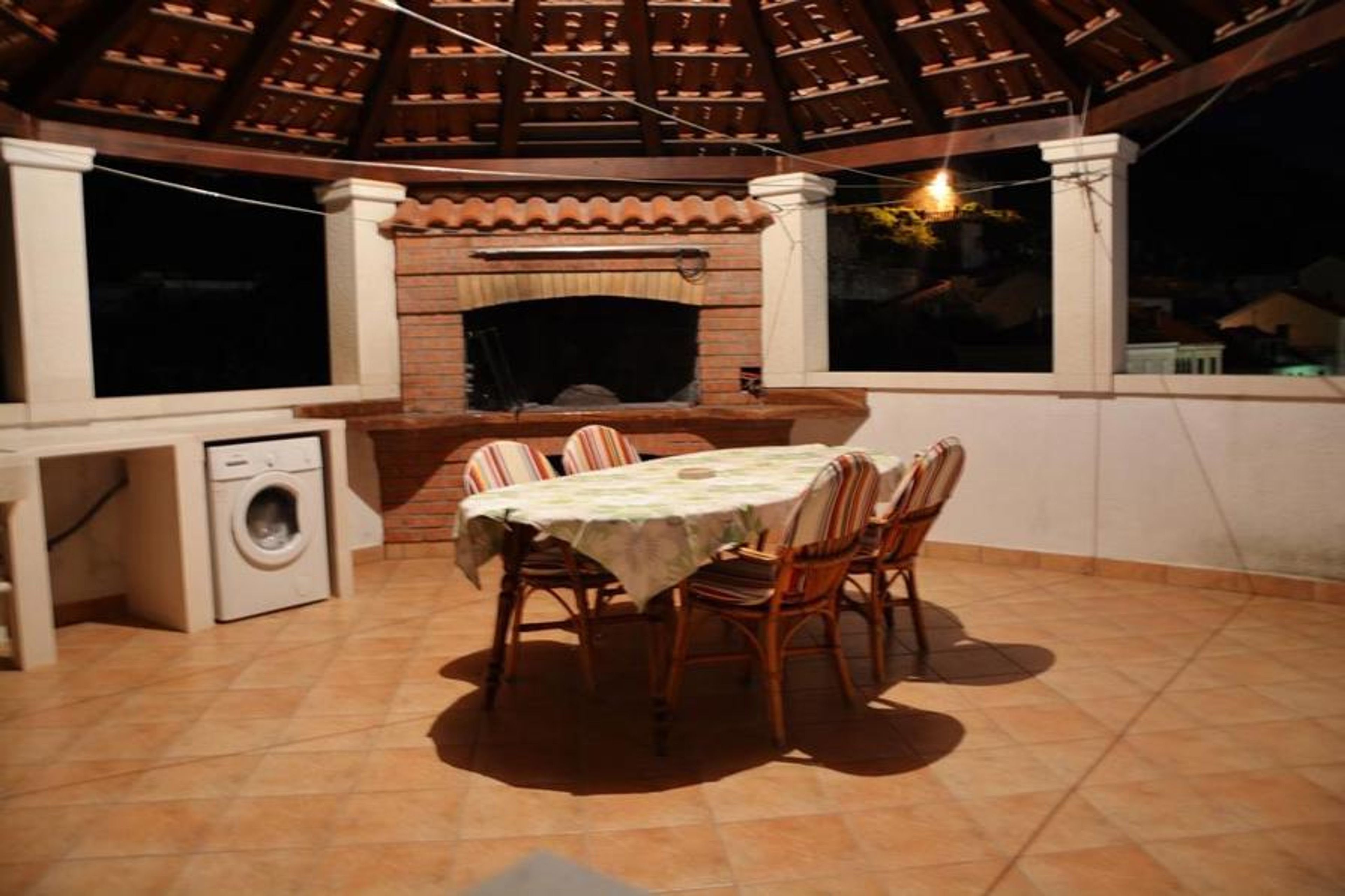 The house is located quietly on a slope, approximately 1.6 km from the gravel beach. The nearby Pucisca is about 5 km away and offers restaurants, supermarkets, and all important facilities. A private parking space for two vehicles is available directly at the property. Optionally, an airport transfer can be arranged, with additional costs incurred.