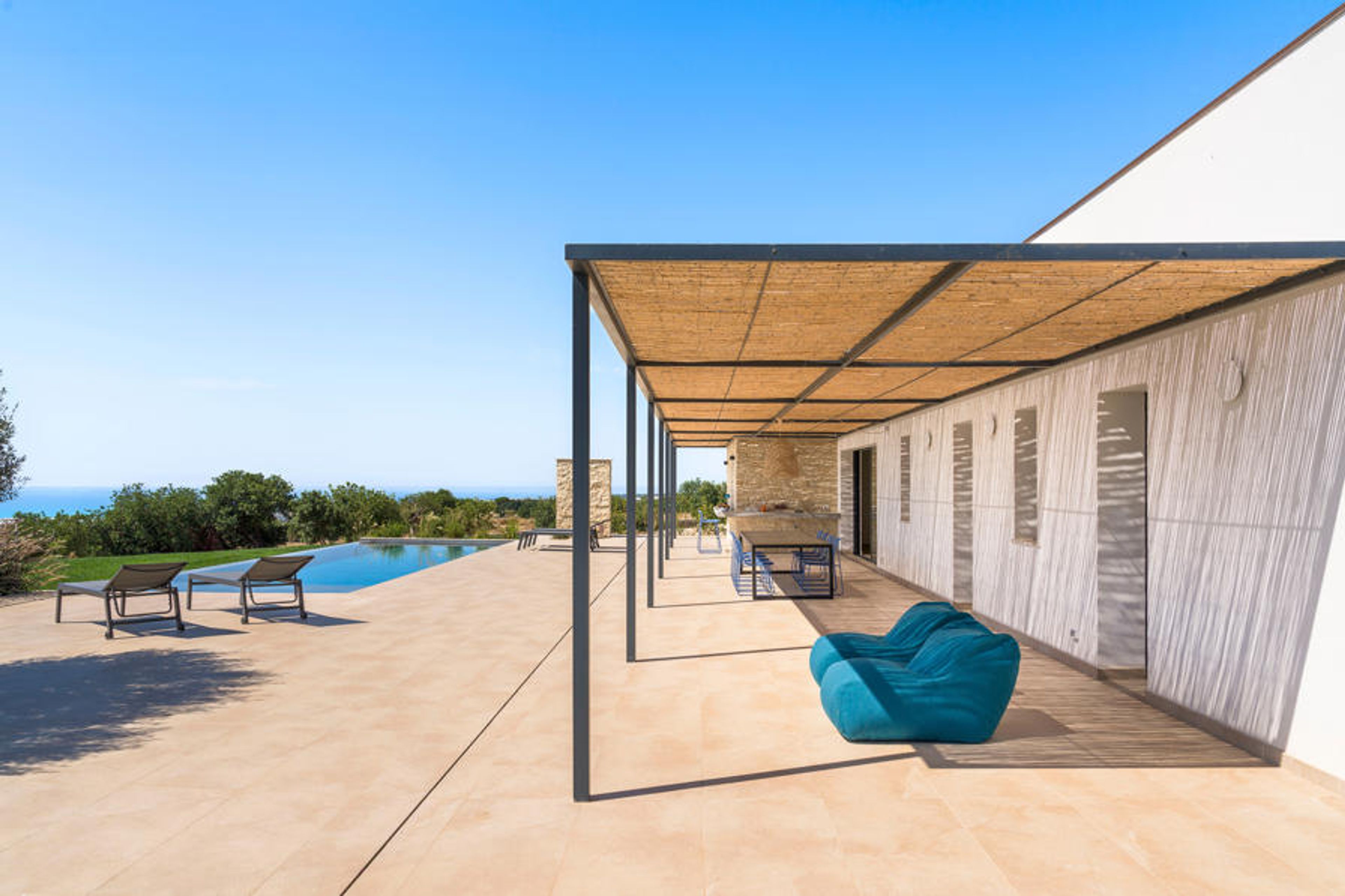 An oasis of refined comfort and panoramic sea views. This is Passo Salina, a beautiful residence with swimming pool located near Scicli.