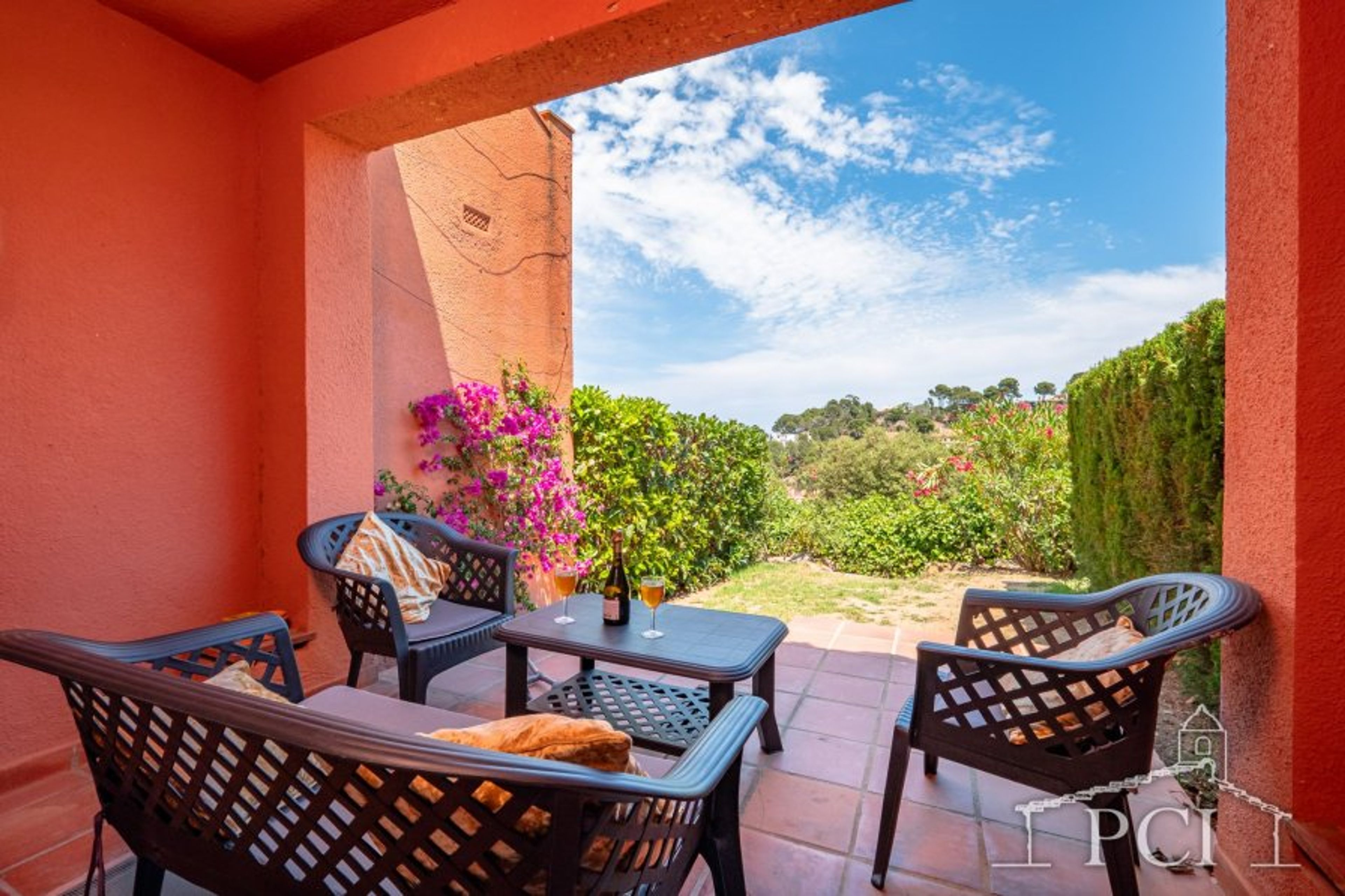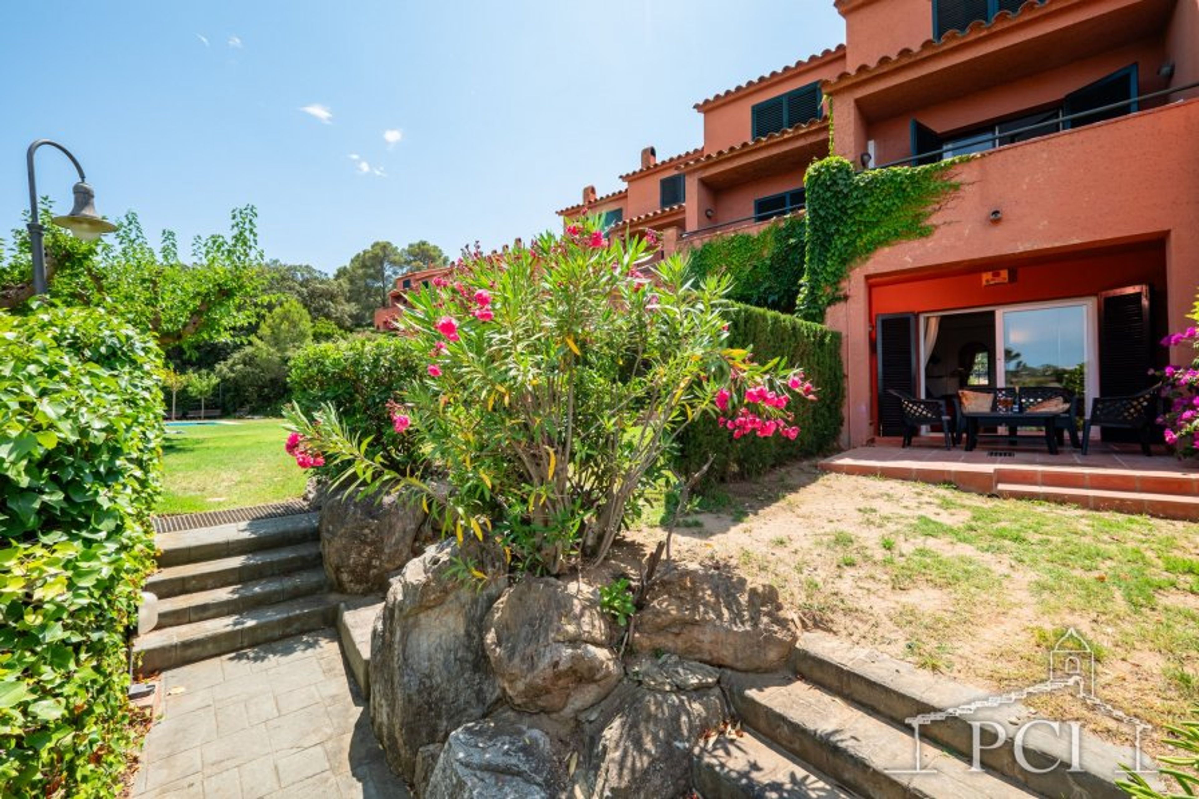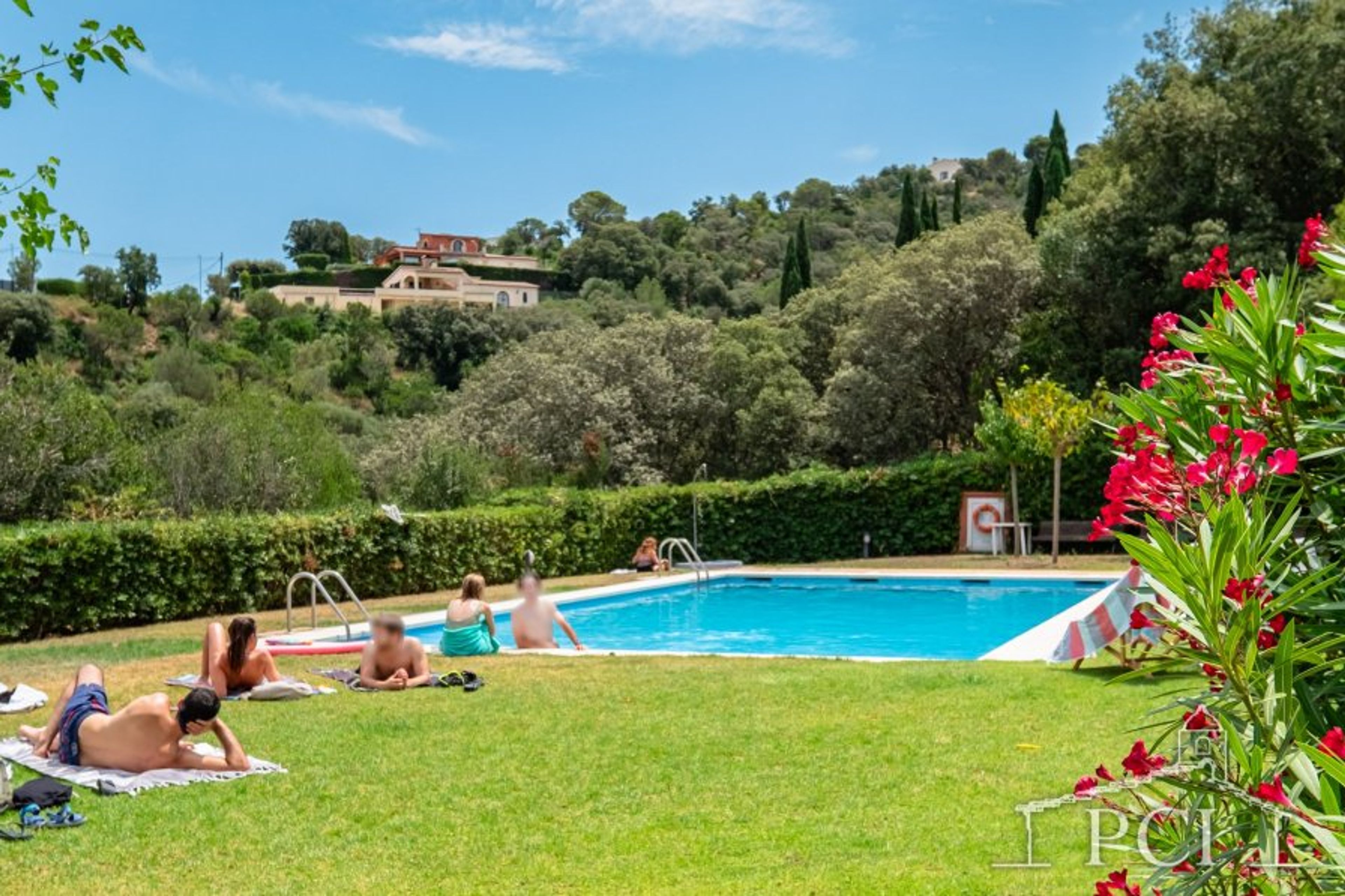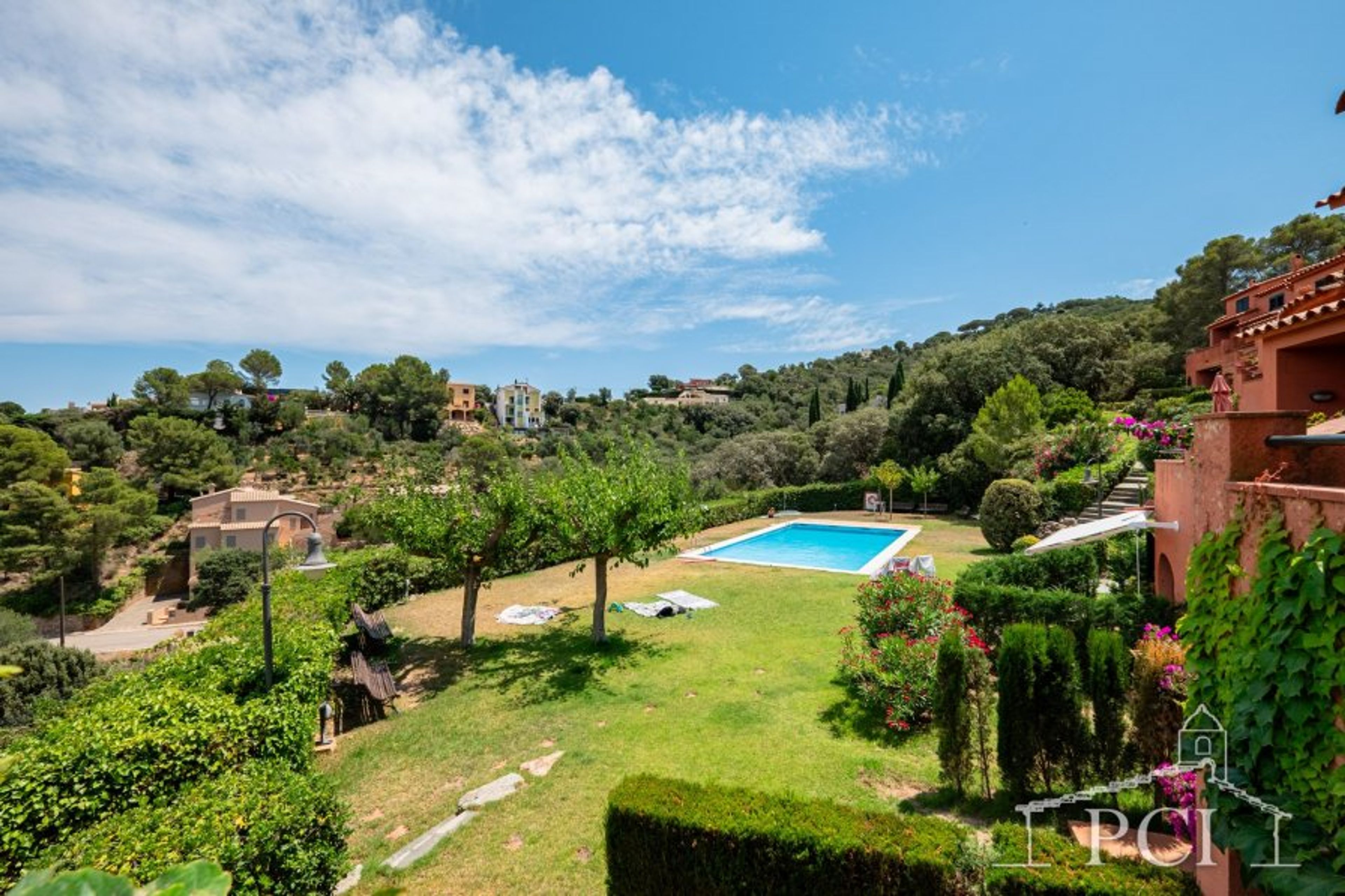 The community has a large pool, surrounded by terrace and gardens. There is a beautiful sea view from the pool area and also from the house entrance and some of the terraces.
