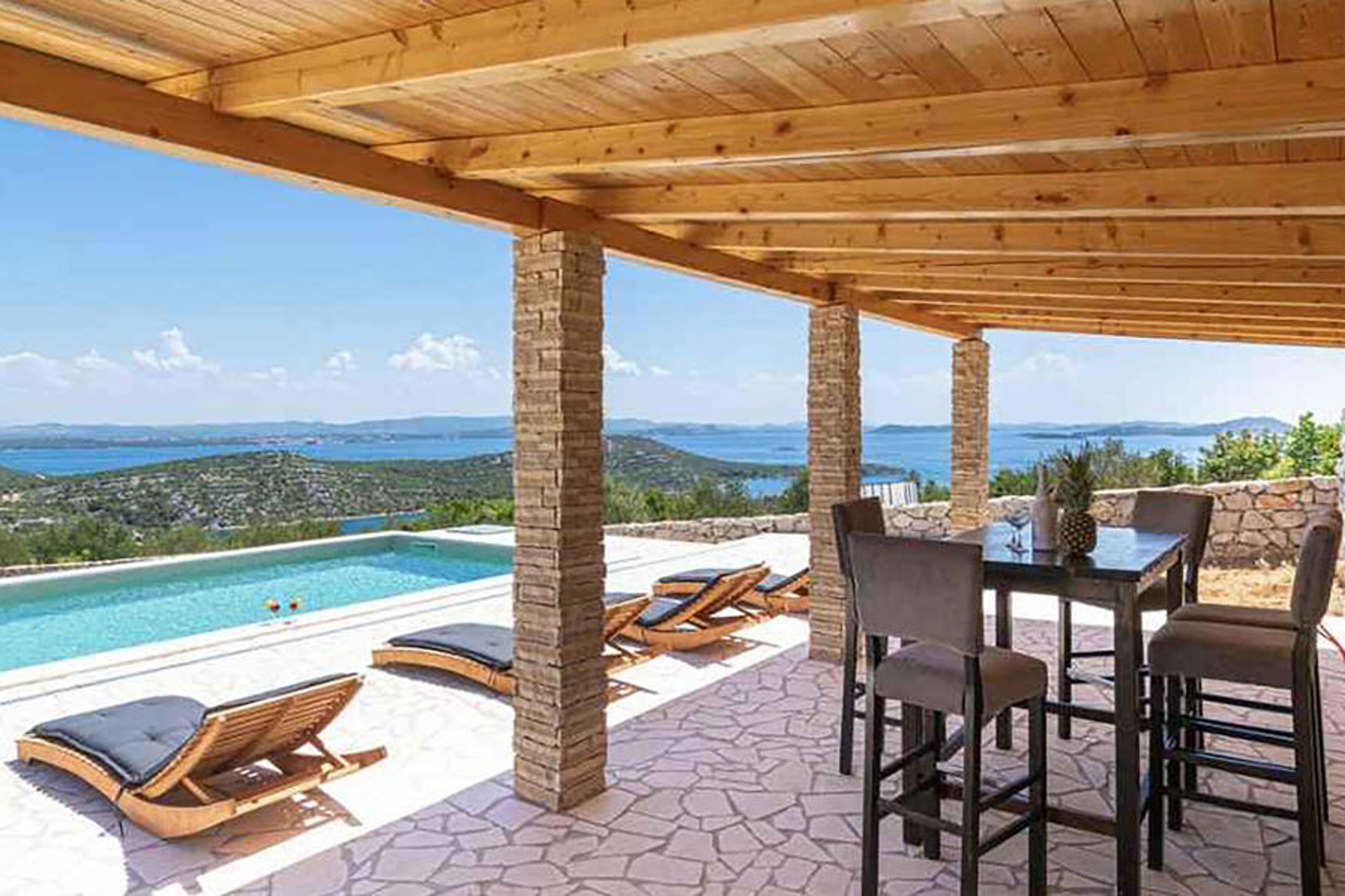 Enjoy the harmonious ambience of natural stone and wood on your sunny terrace. Dive into the infinity pool with a view of the marvellous island landscape and look forward to spectacular sunsets. Use the covered terrace to treat yourself to freshly grilled delicacies.