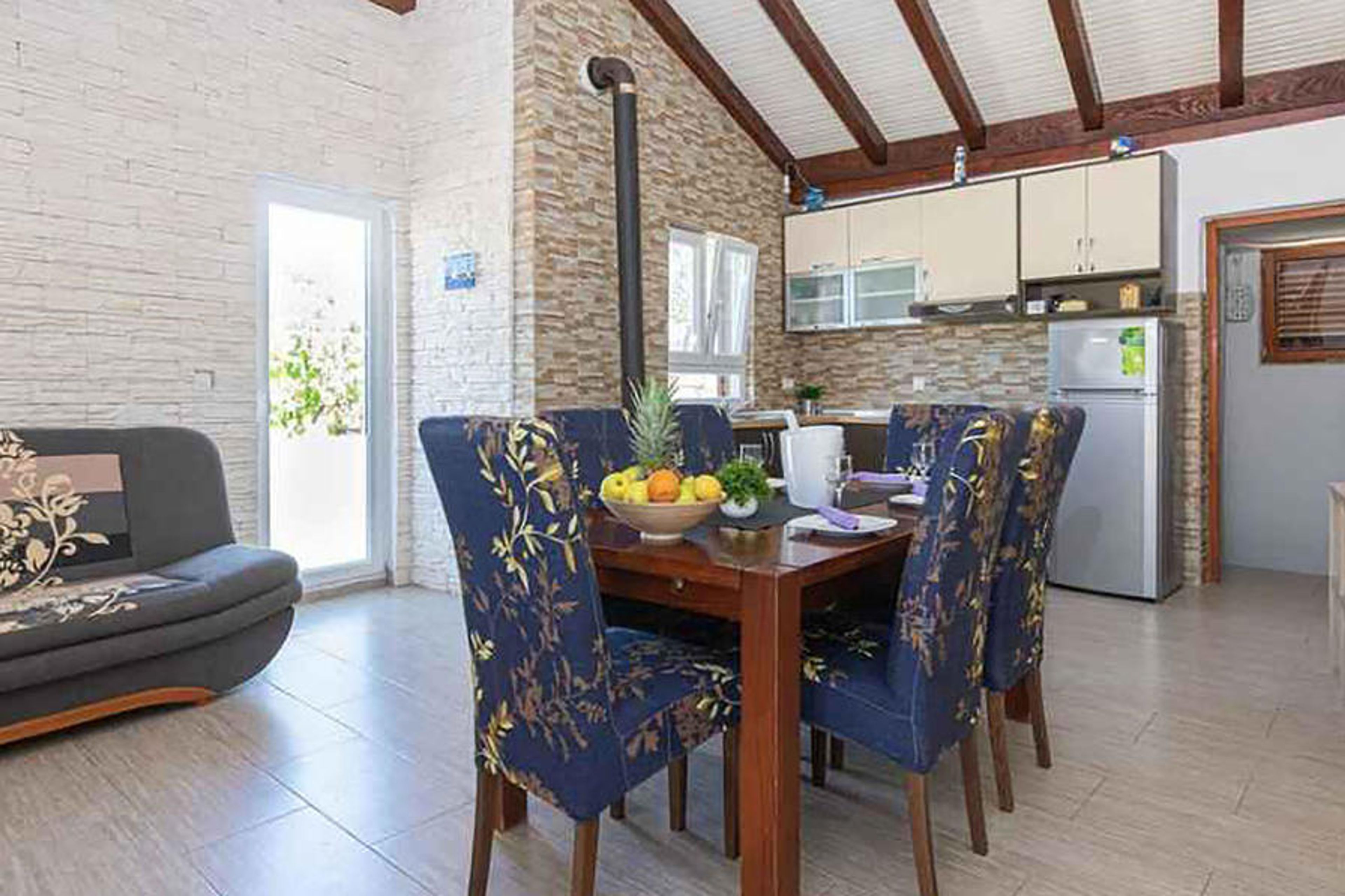 In a sublime location right by the sea, this modern holiday home with a rustic Mediterranean interior style awaits you. Enjoy quiet hours in the open-plan living and dining area, cook together or relax with a book next to the cosy fireplace. Take advantage of the inviting atmosphere to spend unforgettable evenings with family or friends.