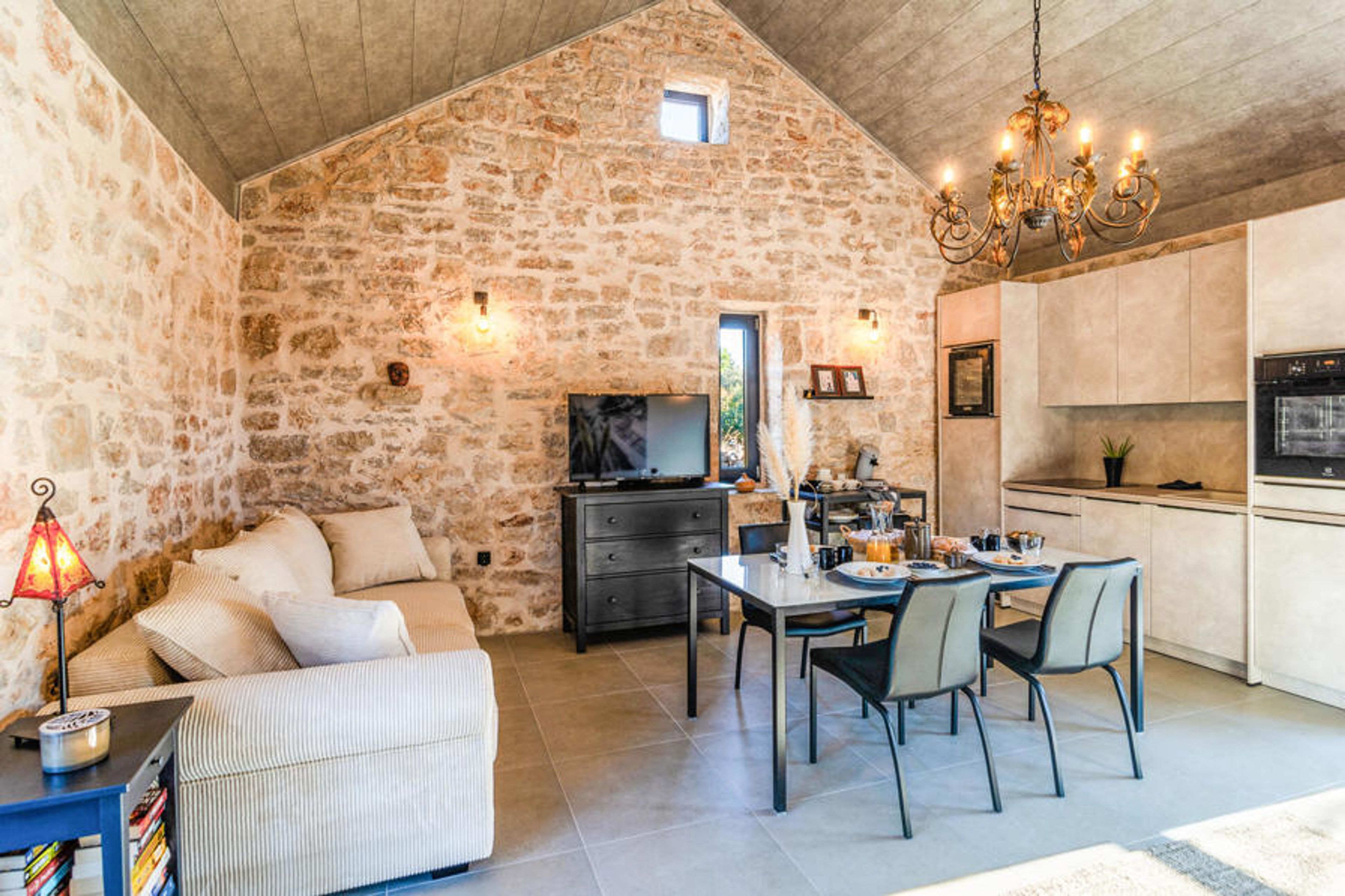 Nestled in an idyllic natural setting, this cosy holiday home welcomes you with high ceilings and natural stone walls that create a unique feel-good ambience. Prepare delicious specialities in the well-equipped kitchen and enjoy your meals under the warm glow of the chandelier. Relax on the cosy living area while watching a film or simply reading a good book.