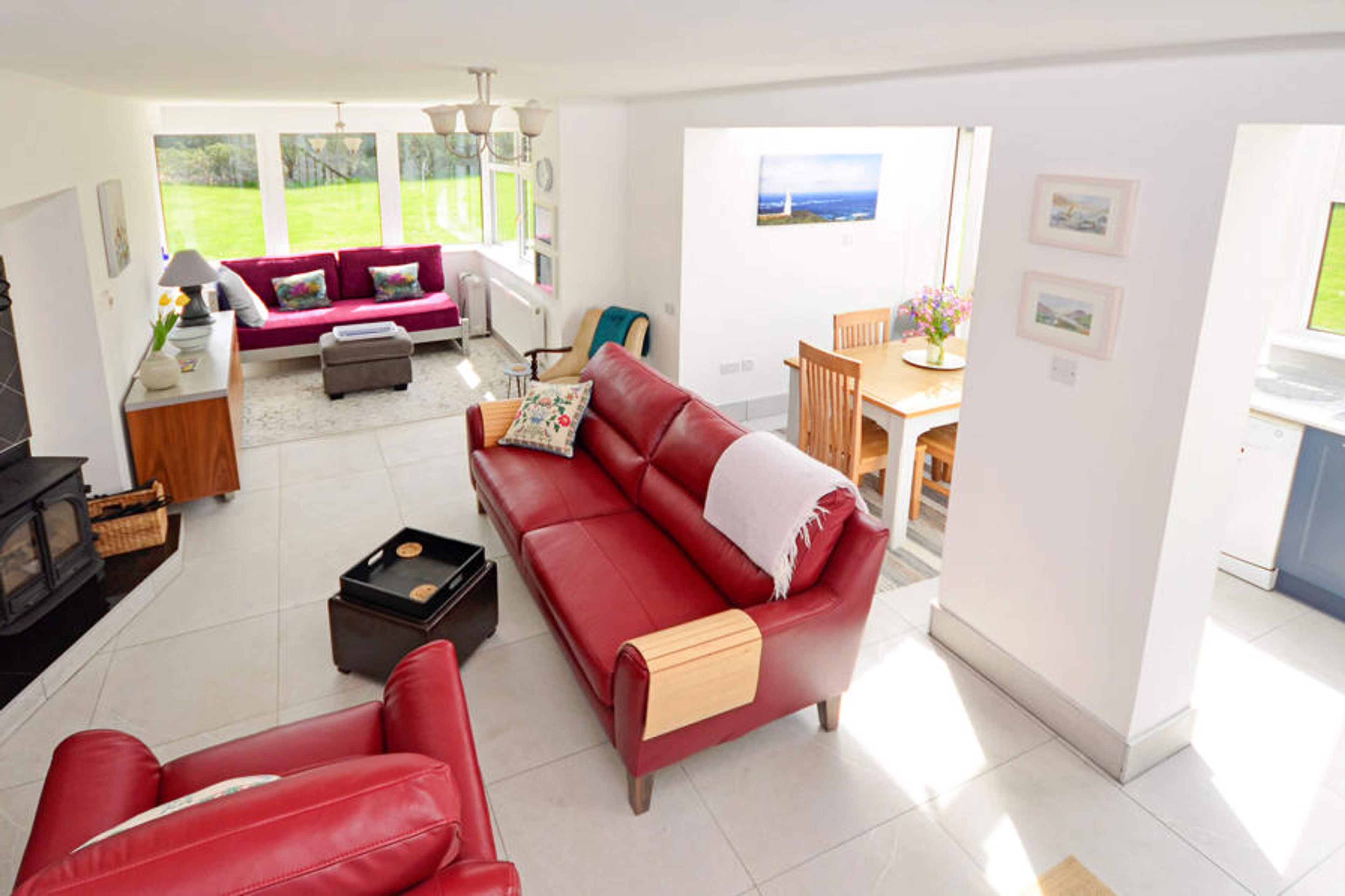 There is oil fired central heating downstairs and electric heating upstairs within the property. Patio is accessible from the kitchen and includes outdoor seating.