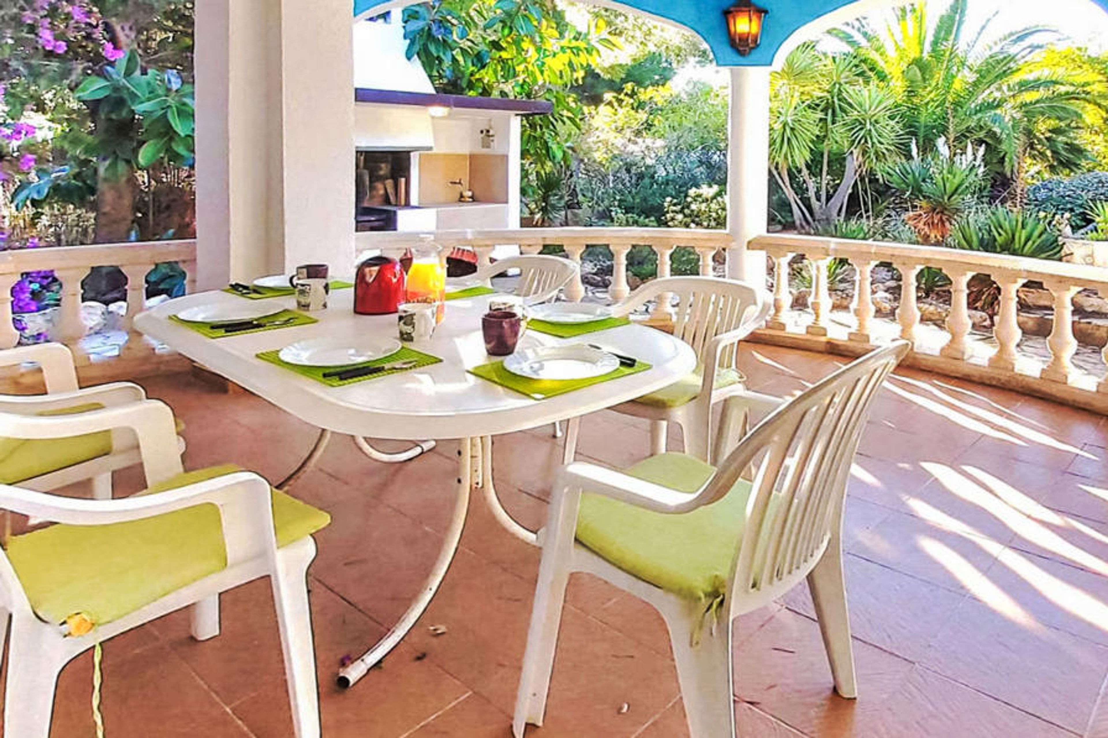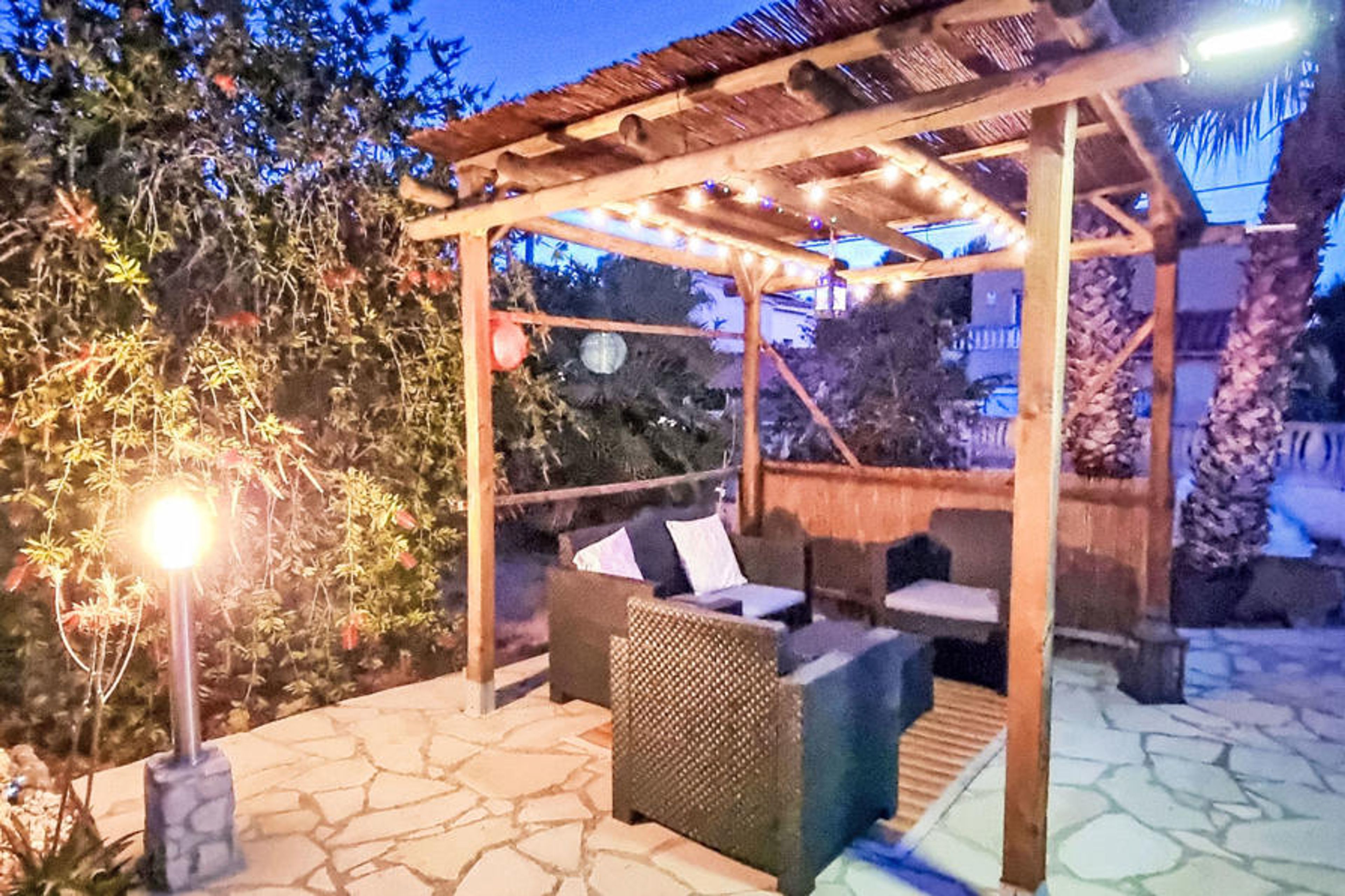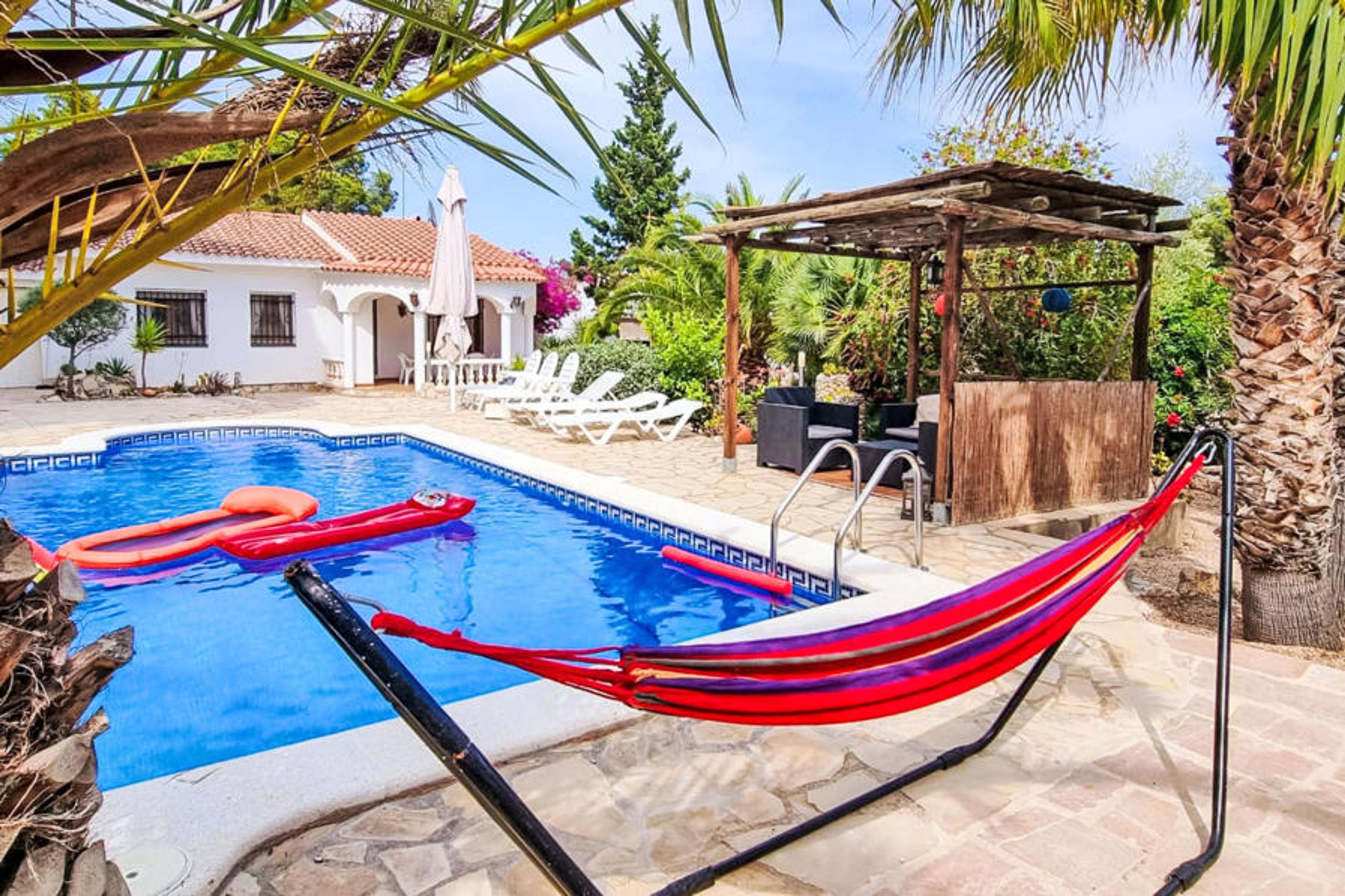 Las 3 Cales 3 km from l'Ametlla de Mar: Villa "Sueño II". 2 km from the sea. Private: large garden (fenced), swimming pool (8 x 4 m, depth 10 - 220 cm, seasonal availability: 01.Apr. - 31.Oct.). Patio, garden furniture, barbecue, pool maintenance by the owner/gardener. Parking at the house. Shop 1 km, grocery 1 km, restaurant 1 km, bus stop 600 m, railway station "Ametlla de Mar" 3 km. Sports harbour 3 km. Nearby attractions: Parque Portaventura 48 km, parque Aquopolis 51 km, parque natura del Delta del Ebro 35 km, Tarragona 57 km, Reus 48 km, Barcelona 153 km. Please note: car recommended. The owner does not accept any youth groups.