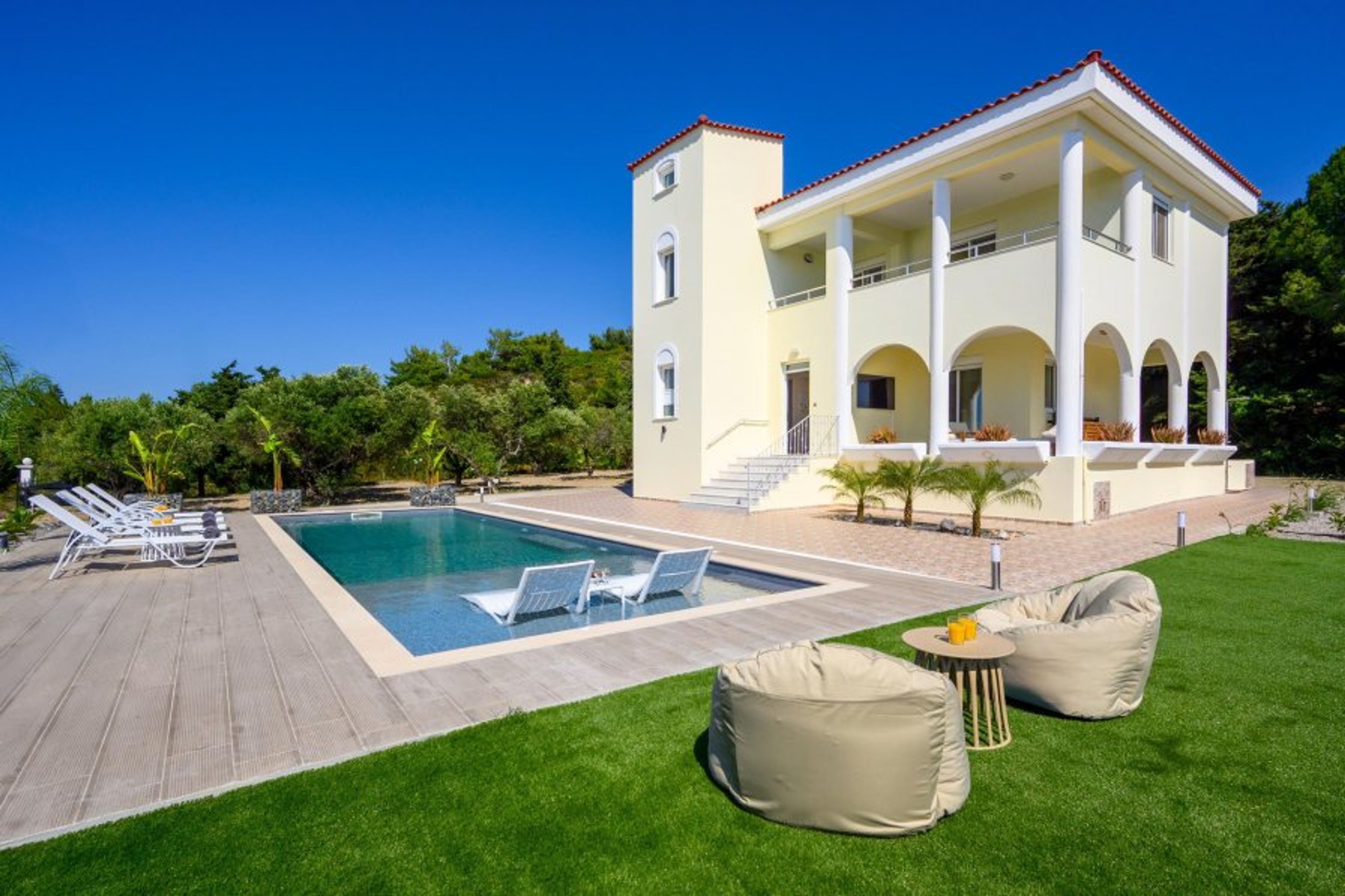 Outdoors, you’ll find a private swimming pool, as well as BBQ facilities, where you can enjoy meals with family and friends. The villa is set on a 4000 m² grove, surrounded by olive, orange, lemon, and fig trees, along with many other fruit-bearing trees. With all the modern amenities and a tranquil setting, Sunset View Paradisi Villa offers the ideal space for a pleasant, relaxing, and memorable stay.