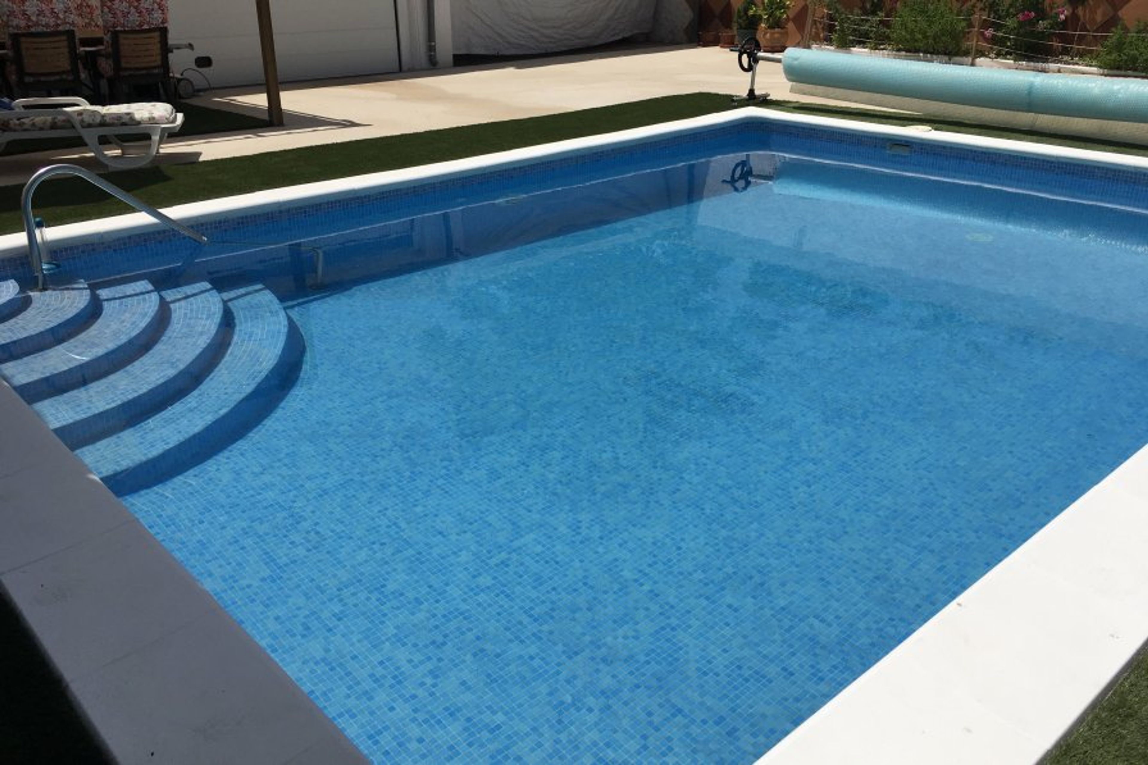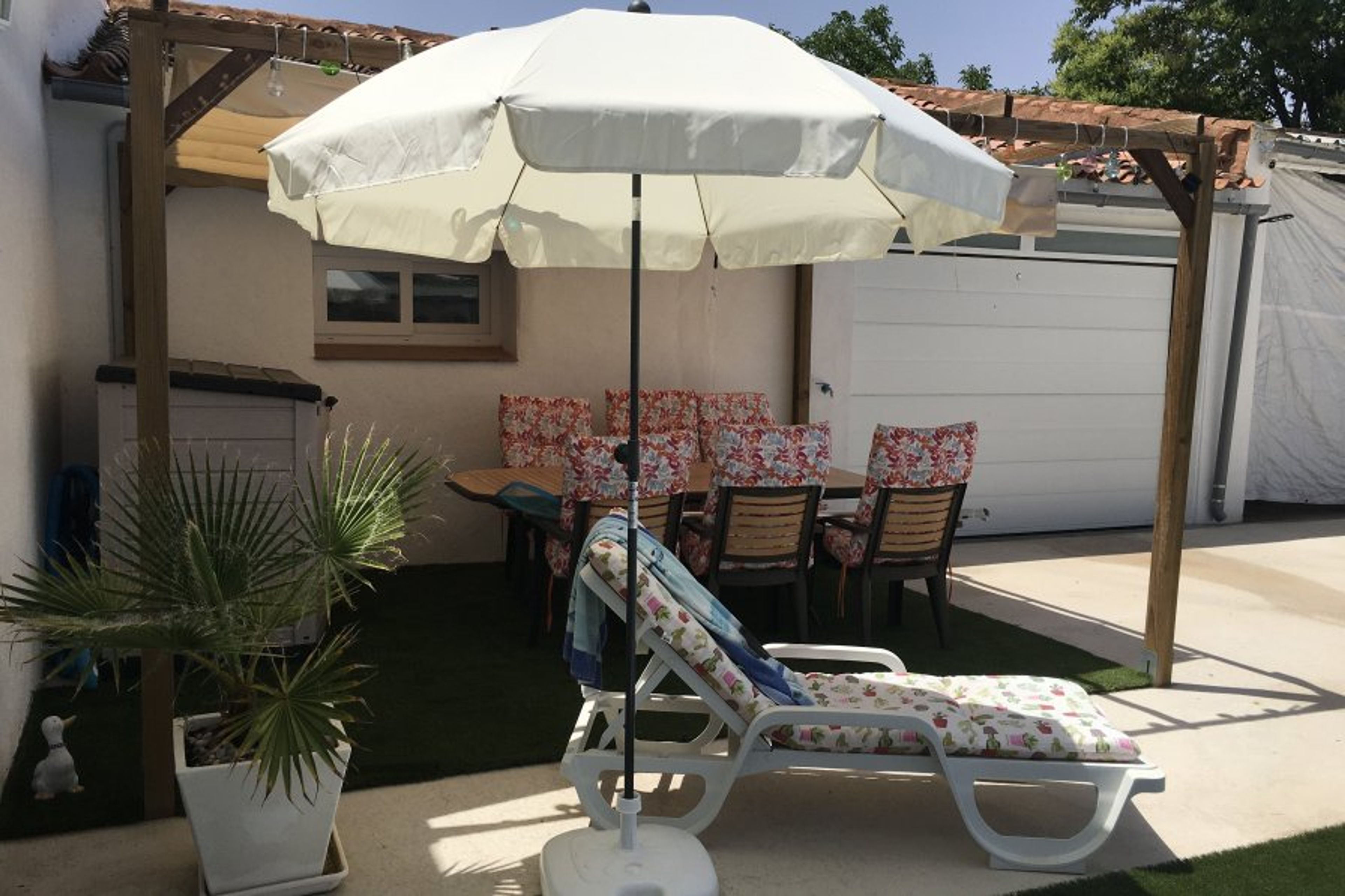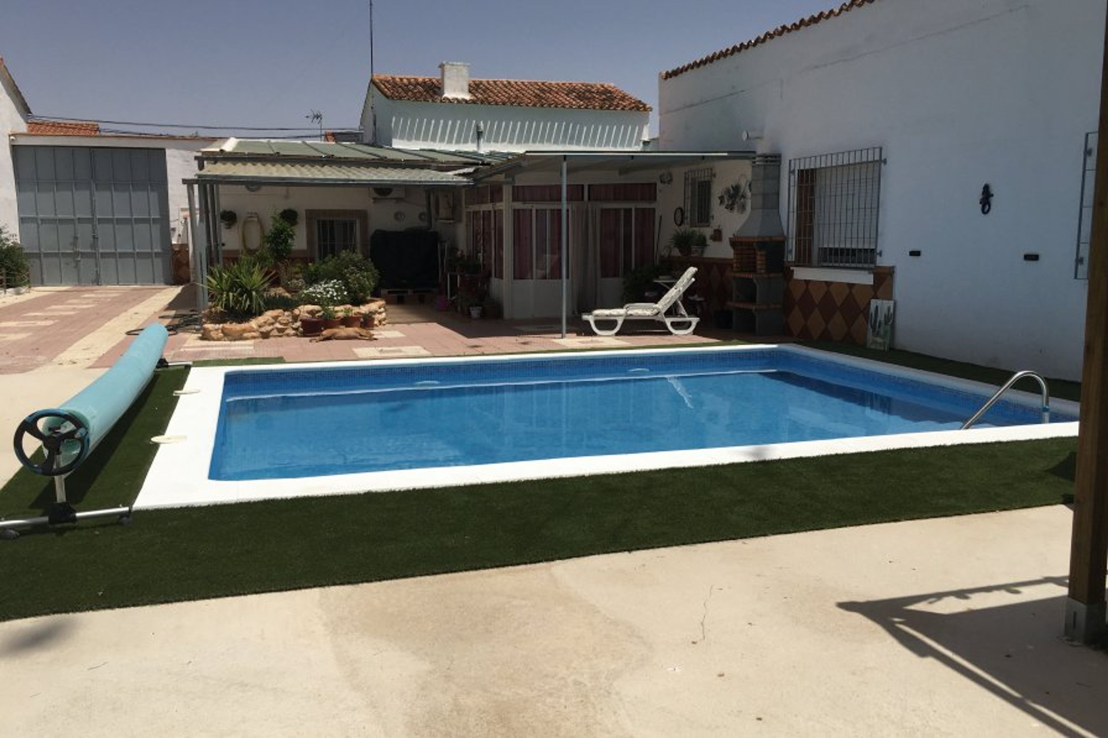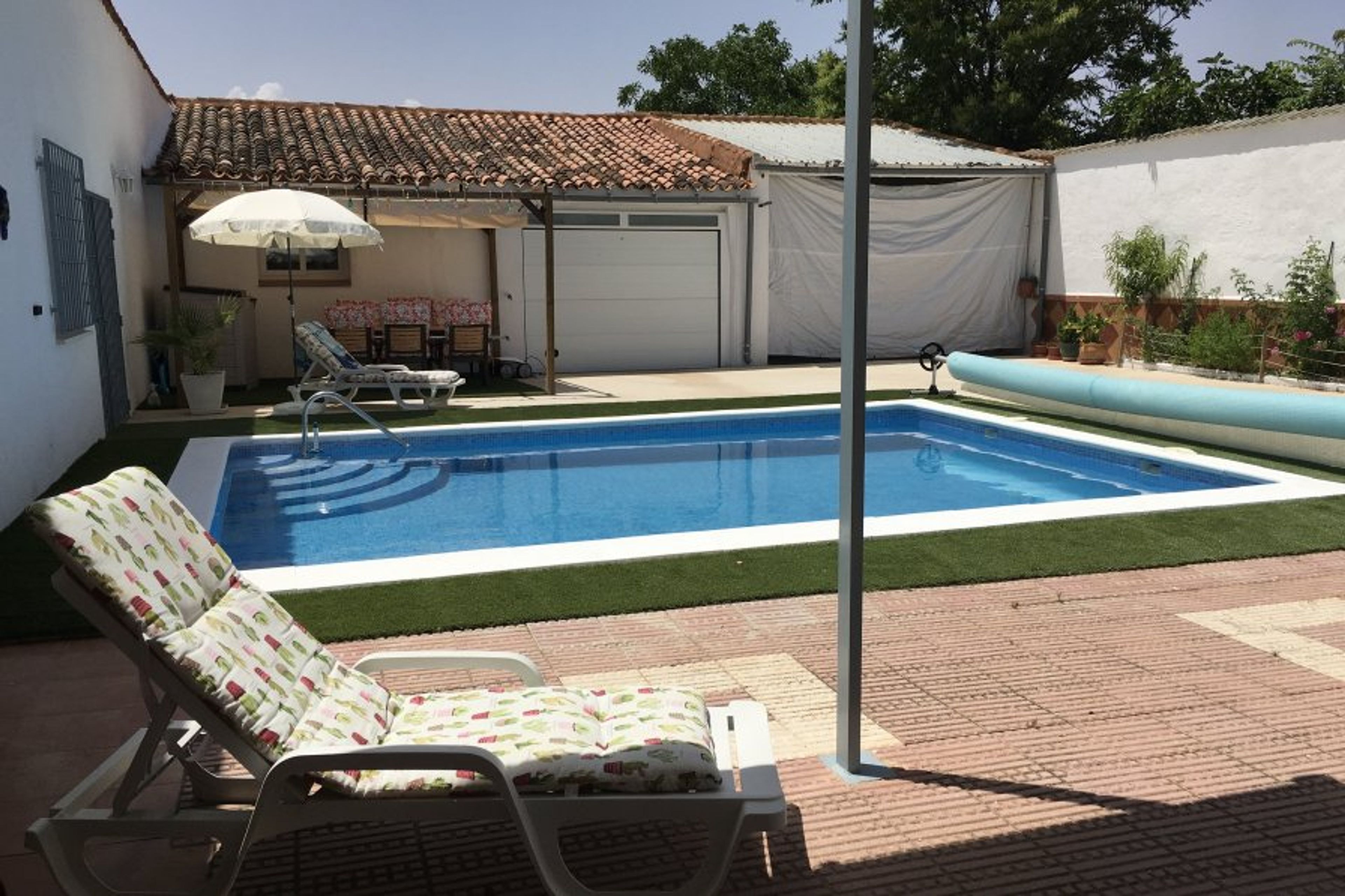 There is also a barbecue and sun loungers next to the pool. There is a pergola with 6 chairs and a table there as well.