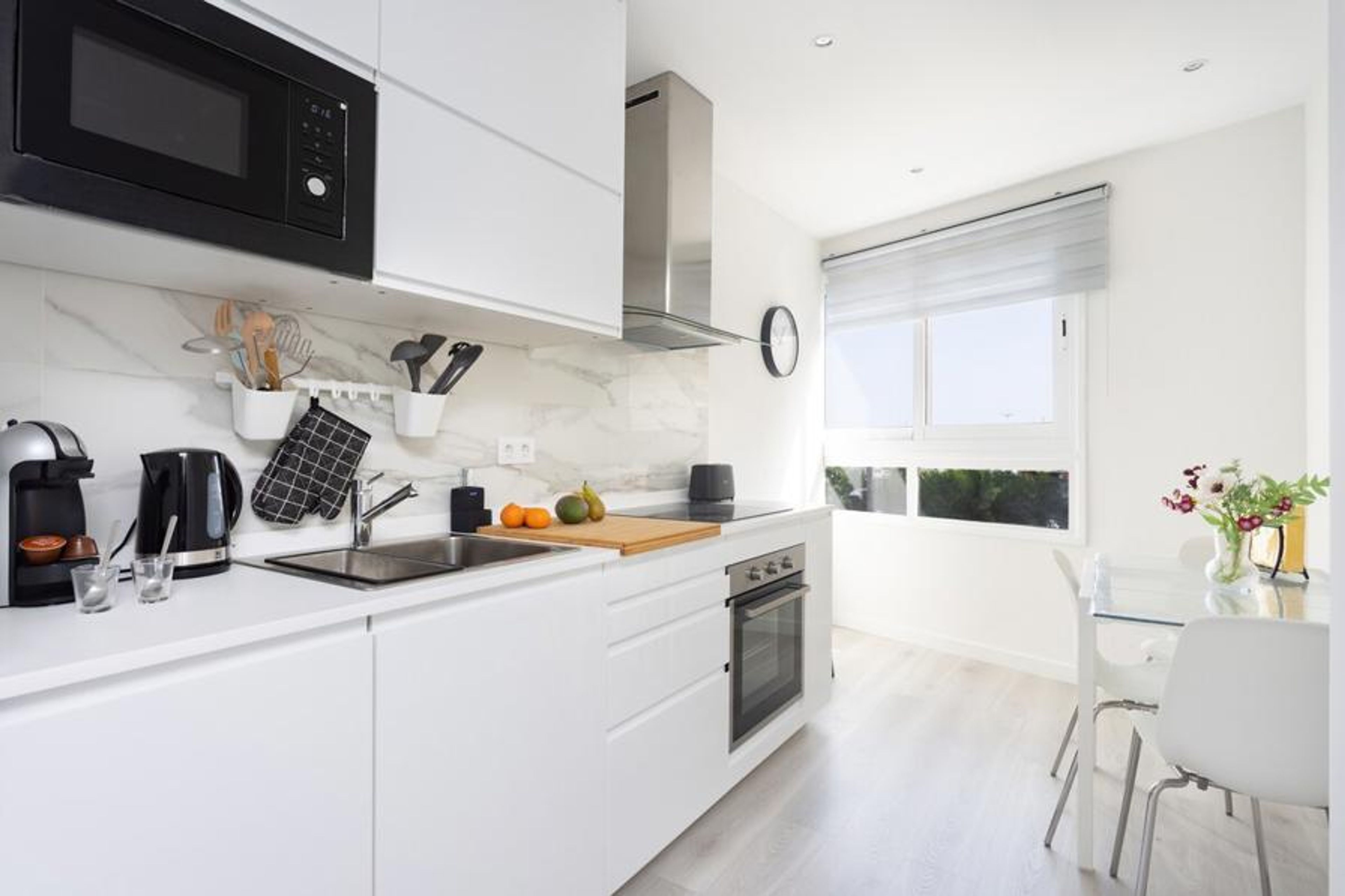 This beautiful apartment is ideal for couples and business trips, as it has capacity for 3 people, 300mb Wifi fibre internet, desk and central air conditioning, all the comforts designed for teleworking. Spacious and bright, it has a large bedroom with double bed and a cosy living room with sofa-bed, work area and 60-inch Smart TV. It also has a fully equipped kitchen with all appliances and all the comforts such as central air conditioning.