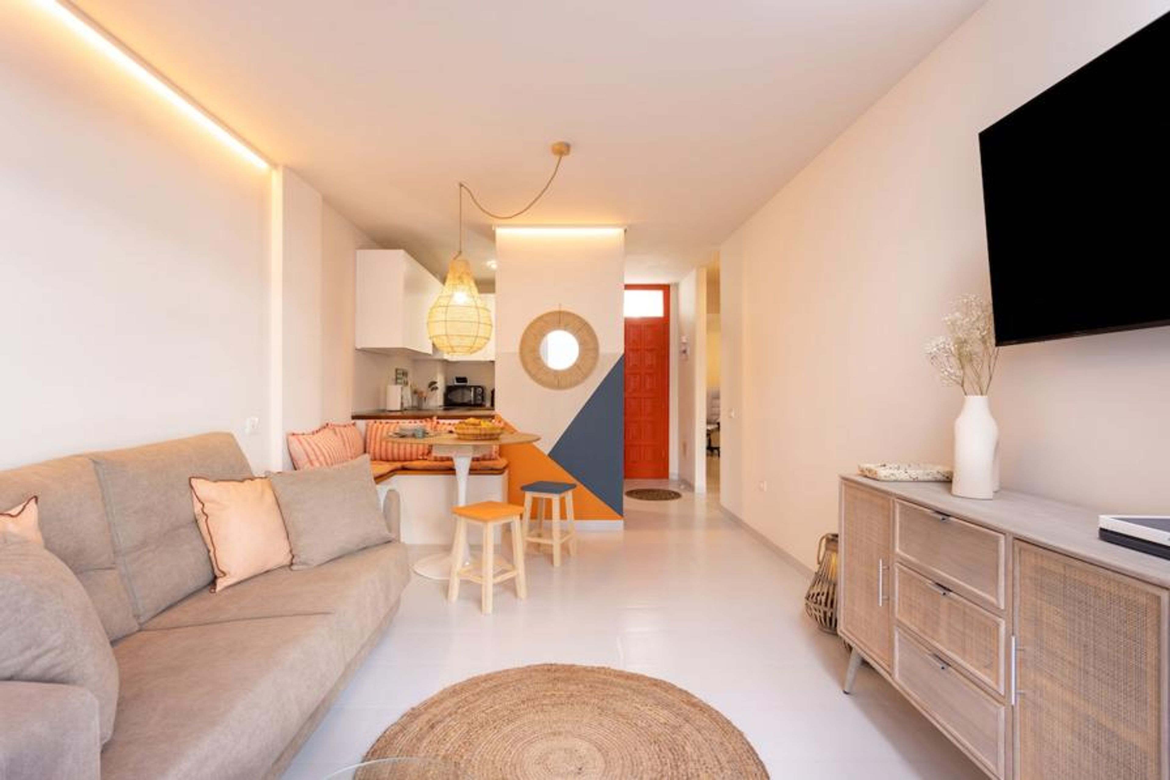 Beautiful apartment in front of the ocean, in the heart of El Médano with the beach just a few steps away. Bright, exquisitely decorated, equipped with everything you need and can accommodate up to 3 people. With two bedrooms, 600mb fibre Wifi and desk, designed for teleworking. With all the services around and a quick connection to the motorway to get to know the rest of the island comfortably, this property is perfect to spend a unique holiday in El Médano.