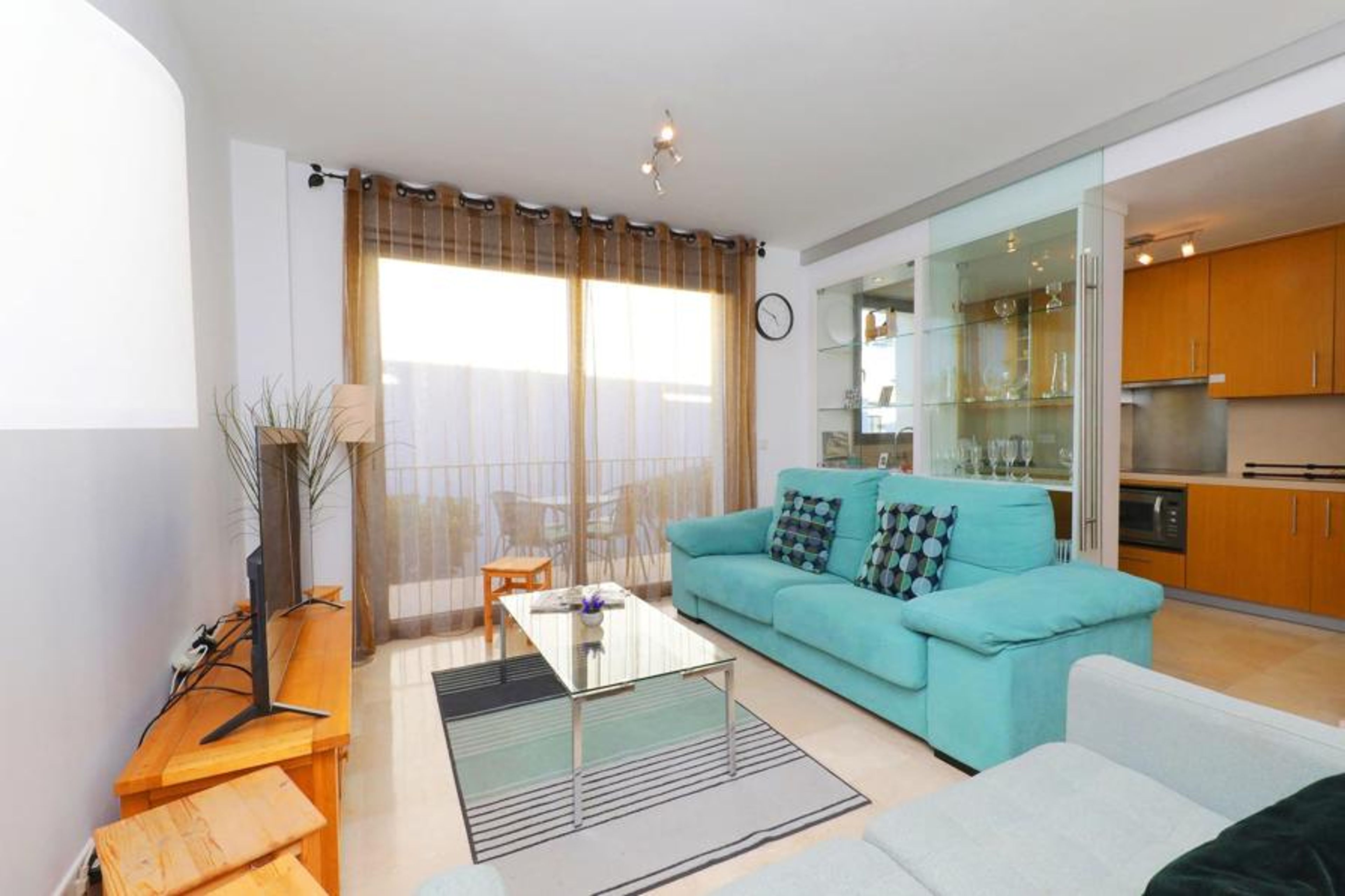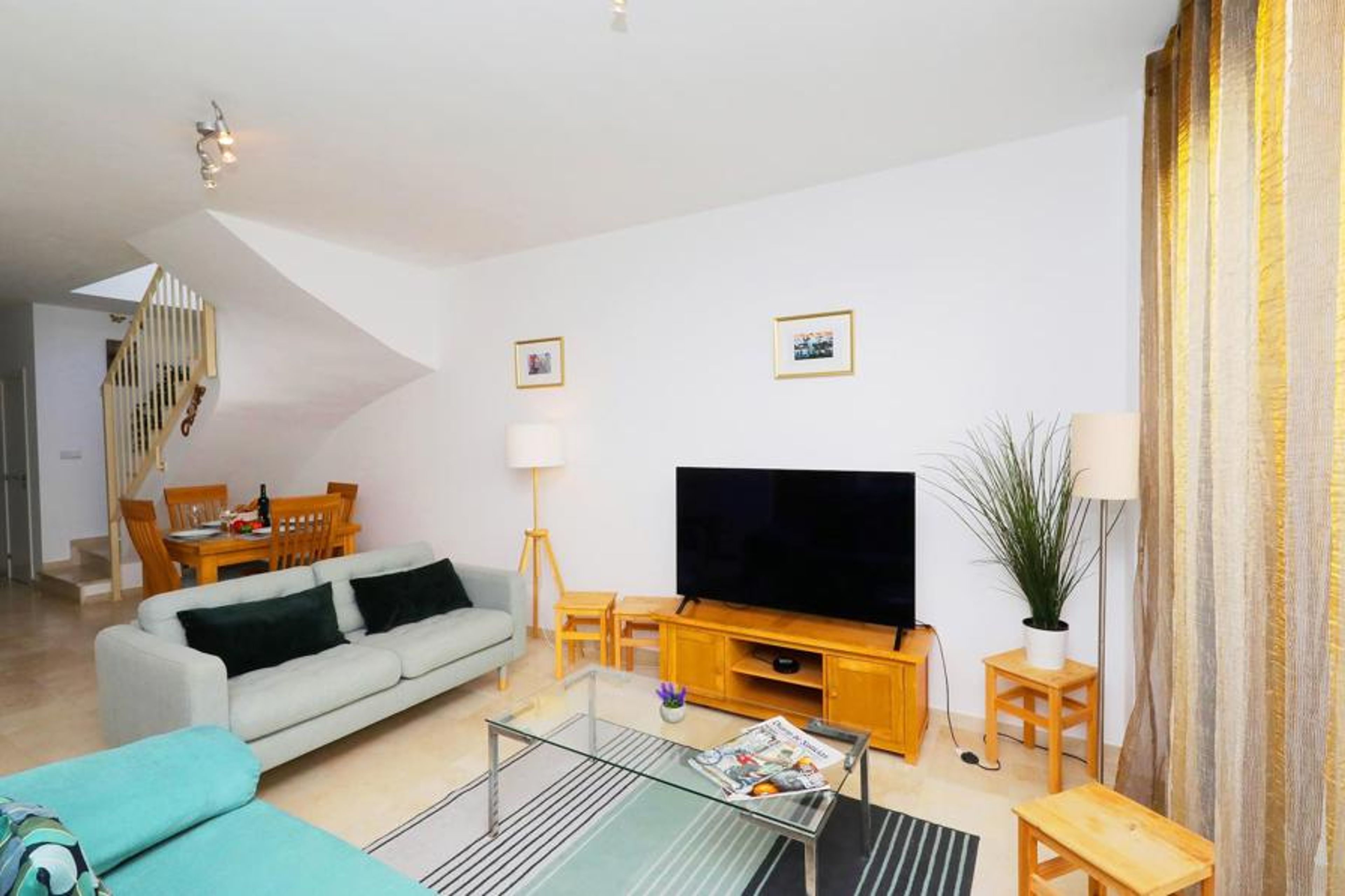 The cosy interior offers its visitors a comfortable stay. With a single level layout, the accommodation flows easily from the open plan lounge/diner through to the bedrooms. The kitchen is fully equipped with major appliances and leads to the living room with large patio windows adorned by a pool view balcony with a table and chairs, ideal for breakfast or a sundowner or two! The 2 bedrooms comprise a master double room with a private bathroom and a twin bedroom with an adjoining shared shower room. An internal staircase leads to the hidden secret of this apartment - the spacious sunny terrace with its stunning views and 2 divisions, 1 front facing and 1 rear facing, ideal for dining, sunbathing and relaxing.