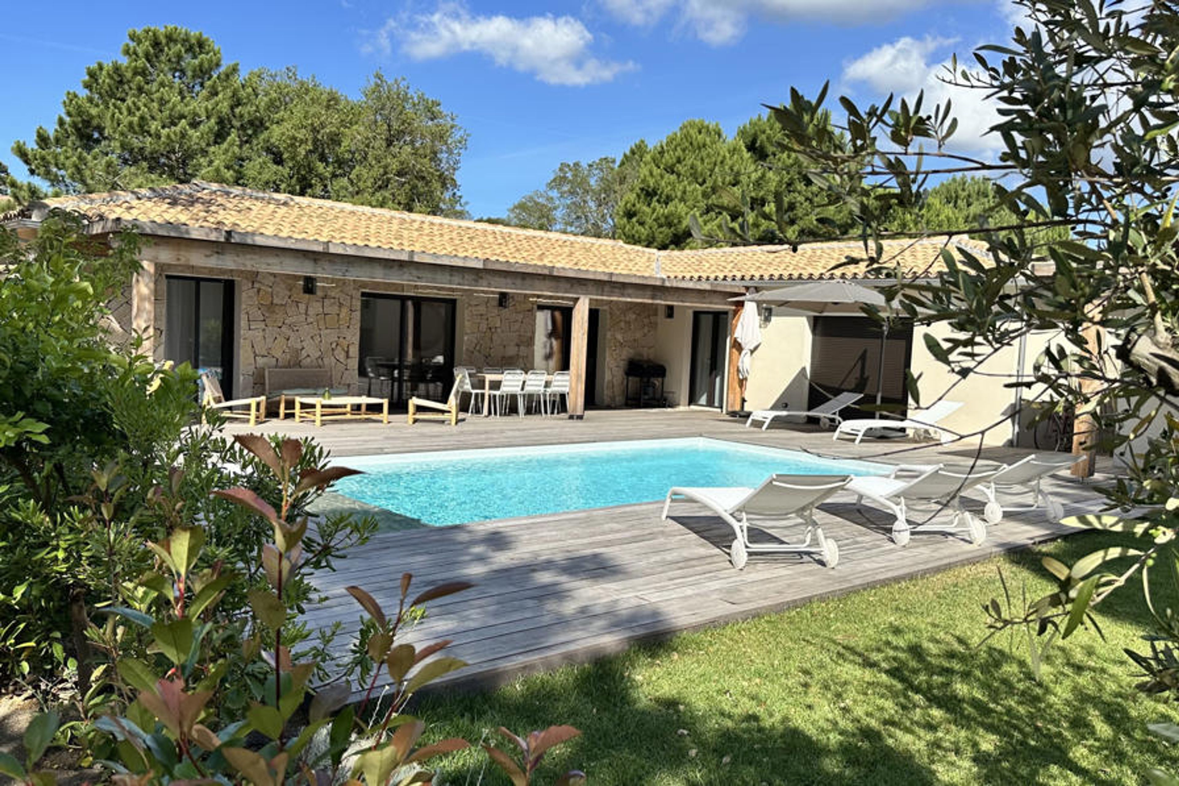 🌿 Charming Villa "CASA ROSSA" - Cala Rossa, Southern Corsica Welcome to CASA ROSSA, an elegant 165 m² villa from 2023, located in the privileged setting of the Cala Rossa district, just 1 km from its famous fine sand beach.