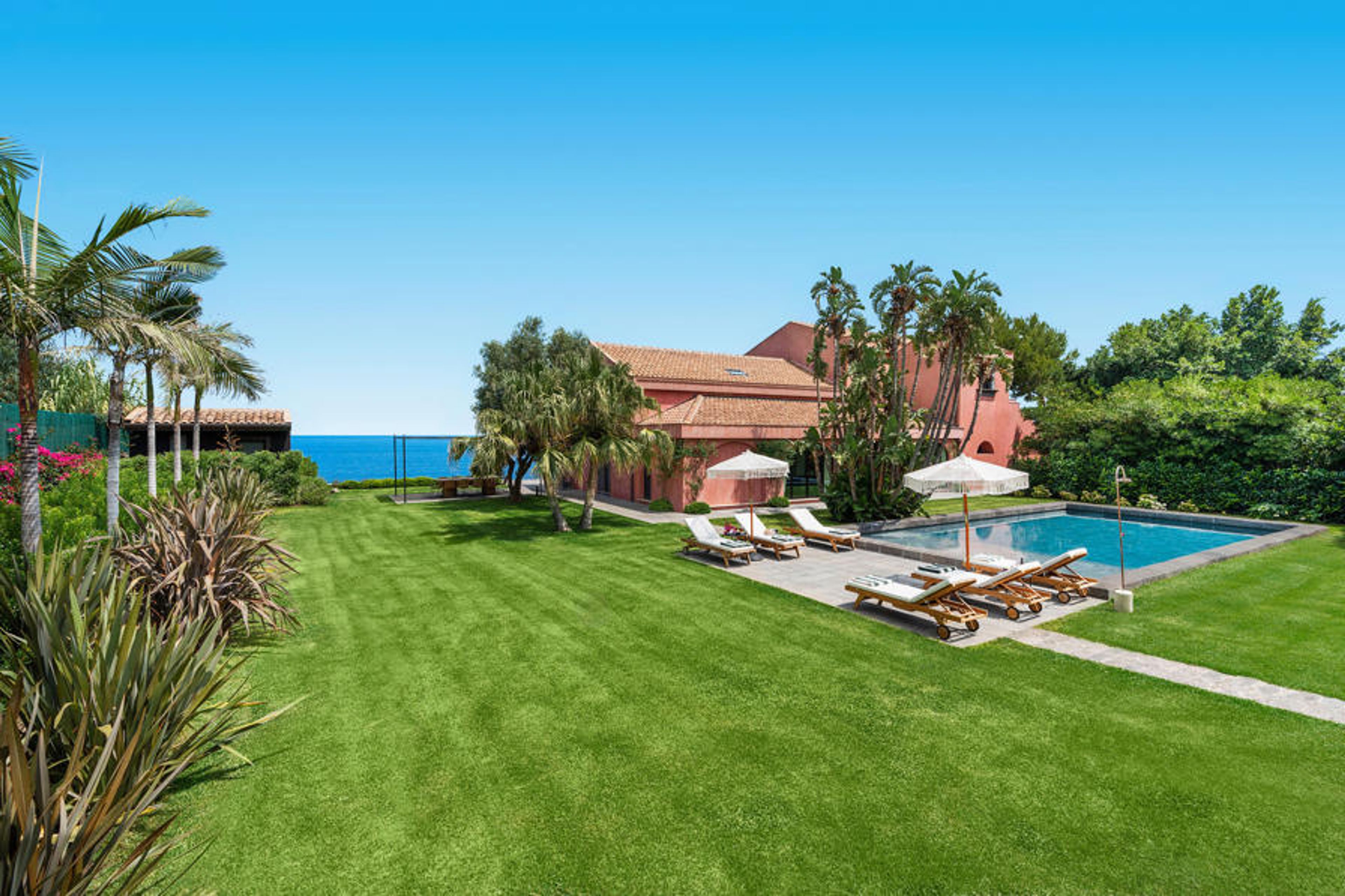 Located in a splendid position facing the sea, Acqua Marina is an elegant and comfortable villa with swimming pool in Pozzillo, near Acireale. Beyond the beautiful swimming pool and solarium, the villa is surrounded by a well-kept Mediterranean garden and spacious terraces along the seafront. Its exclusive and welcoming interiors are spread across two levels. On the ground floor is a large living room with TV, a modern and well-equipped kitchen, dining room, bathroom, laundry room and a double bedroom with en-suite bathroom with shower. Then on the first floor is the sleeping area completed by three other double bedrooms, all with en-suite bathroom with shower. The residence is even equipped with the best amenities, such as air-conditioning in all rooms, Wi-Fi, 2 smart TVs, washing machine, dryer, dishwasher, electric and microwave ovens, Espresso machine and American coffee maker, wine cellar and ice machine, plus private parking. Perfect for families and groups of friends, Villa Acqua Marina is likewise an ideal base for exploring the wonders of eastern Sicily, including Taormina, Etna Park, Acireale, Aci Trezza, Aci Castello and Catania.