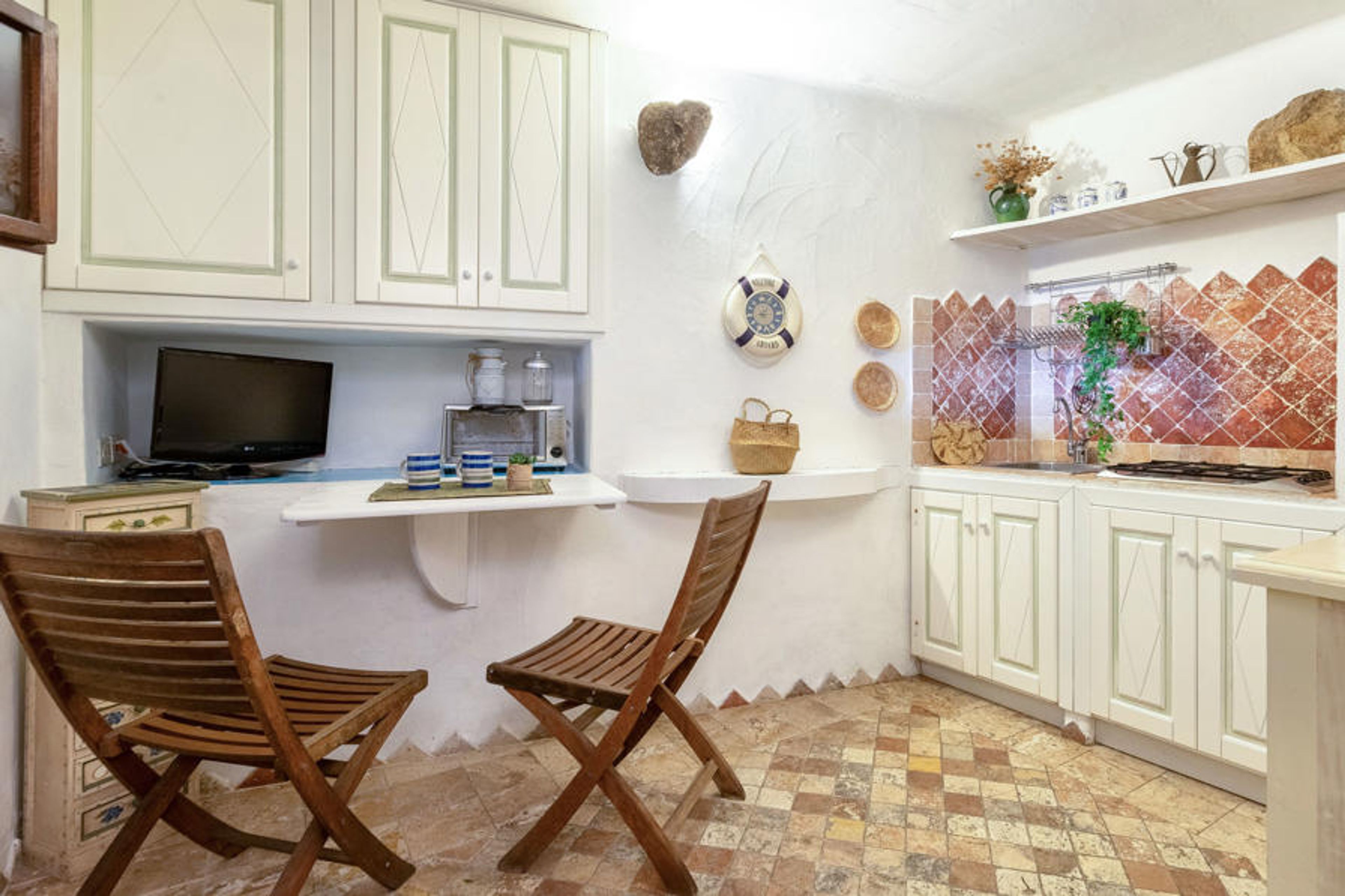 "Due Mari", 2-room house 25 m2. Object suitable for 2 adults. Comfortable and cosy furnishings: 1 double bedroom. Kitchenette (4 hot plates, mini-oven, toaster, kettle) with small dining table, TV (flat screen). Shower/bidet/WC. Air-conditioning, forced-air heating. Heating not available in all rooms. Terrace roofed. Terrace furniture, barbecue. Partial view of the sea, the valley and the countryside. Facilities: washing machine, safe, iron, mosquito net. Maximum 1 pet/ dog allowed. Linen and air conditioning are available at an additional cost. IT090054C2000S8828