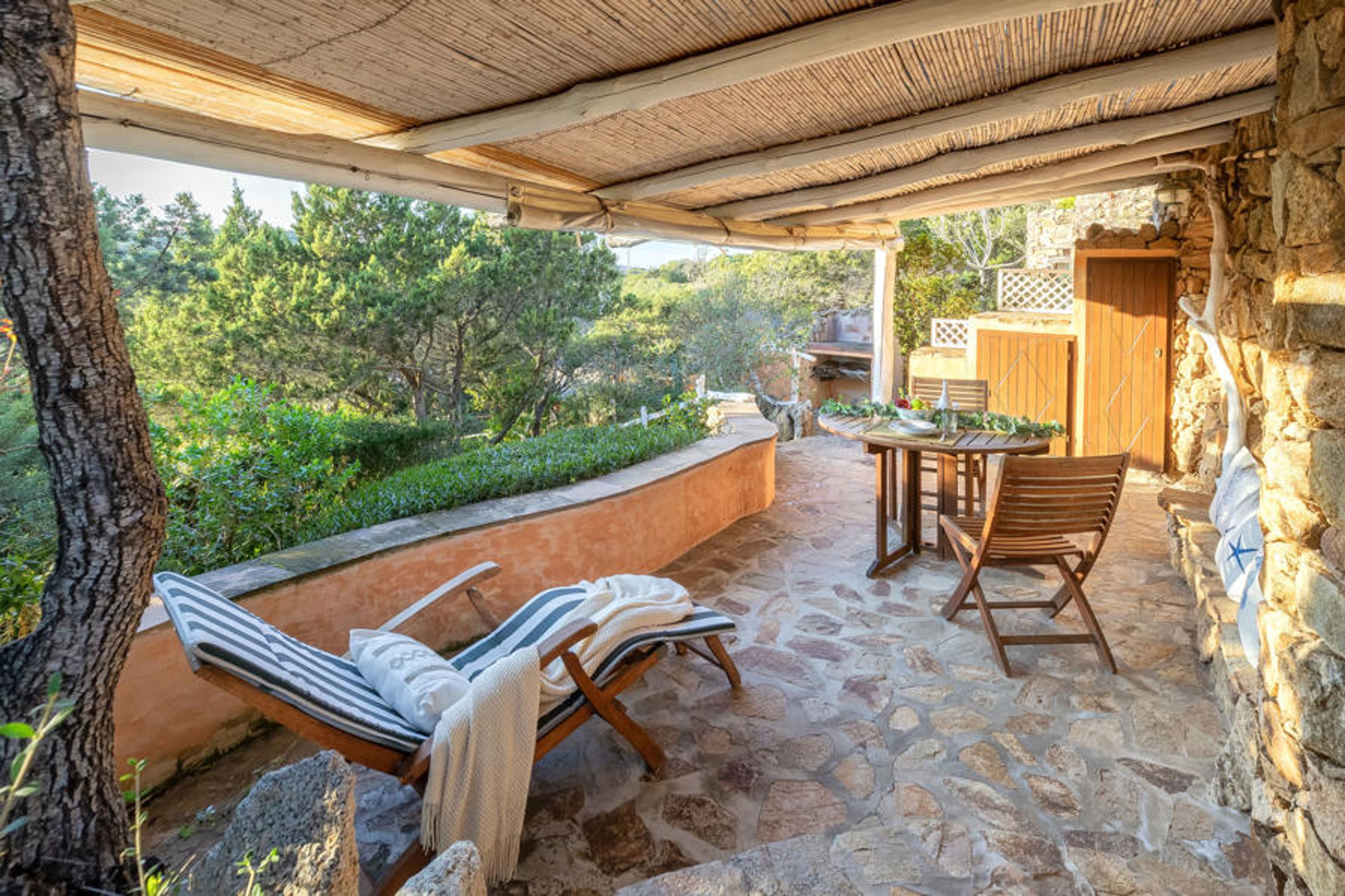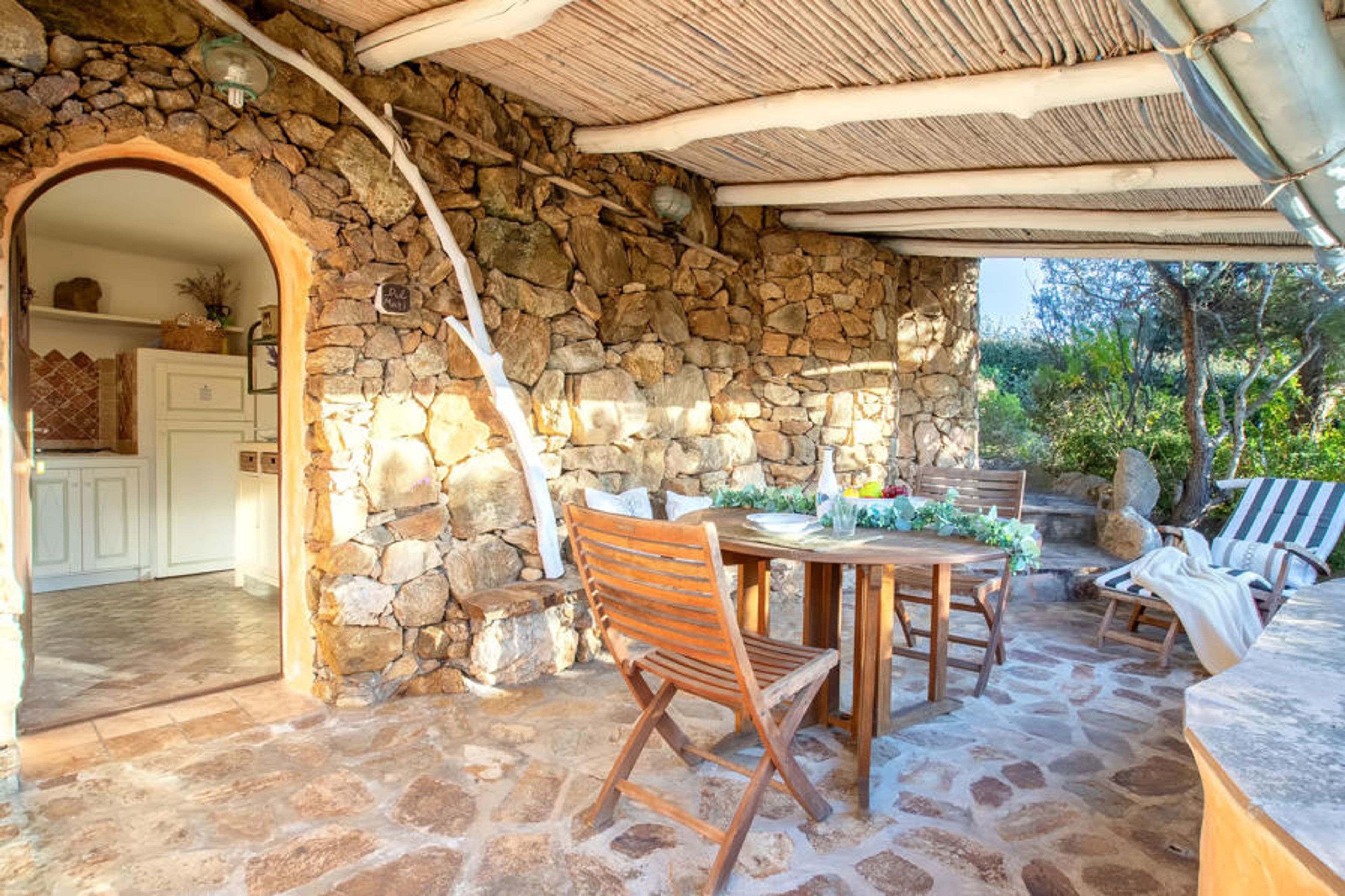 Residence "Porto Mannu". 6 km from the centre of Palau, in a quiet position in the residential district, 700 m from the sea, 700 m from the beach, in the countryside. Private: property, natural garden (fenced). (10 steps). Roofed, parking at the house. Grocery 1 km, supermarket 6 km, restaurant, bar, bus stop 120 m, sandy beach "Porto Mannu - Cala Lepre" 700 m. Sports harbour 6.5 km. Nearby attractions: La Maddalena Island 11 km, Porto Cervo 29 km, Arzachena 17 km, San Pantaleo 10 km, Cannigione 7 km. Please note: car recommended.
