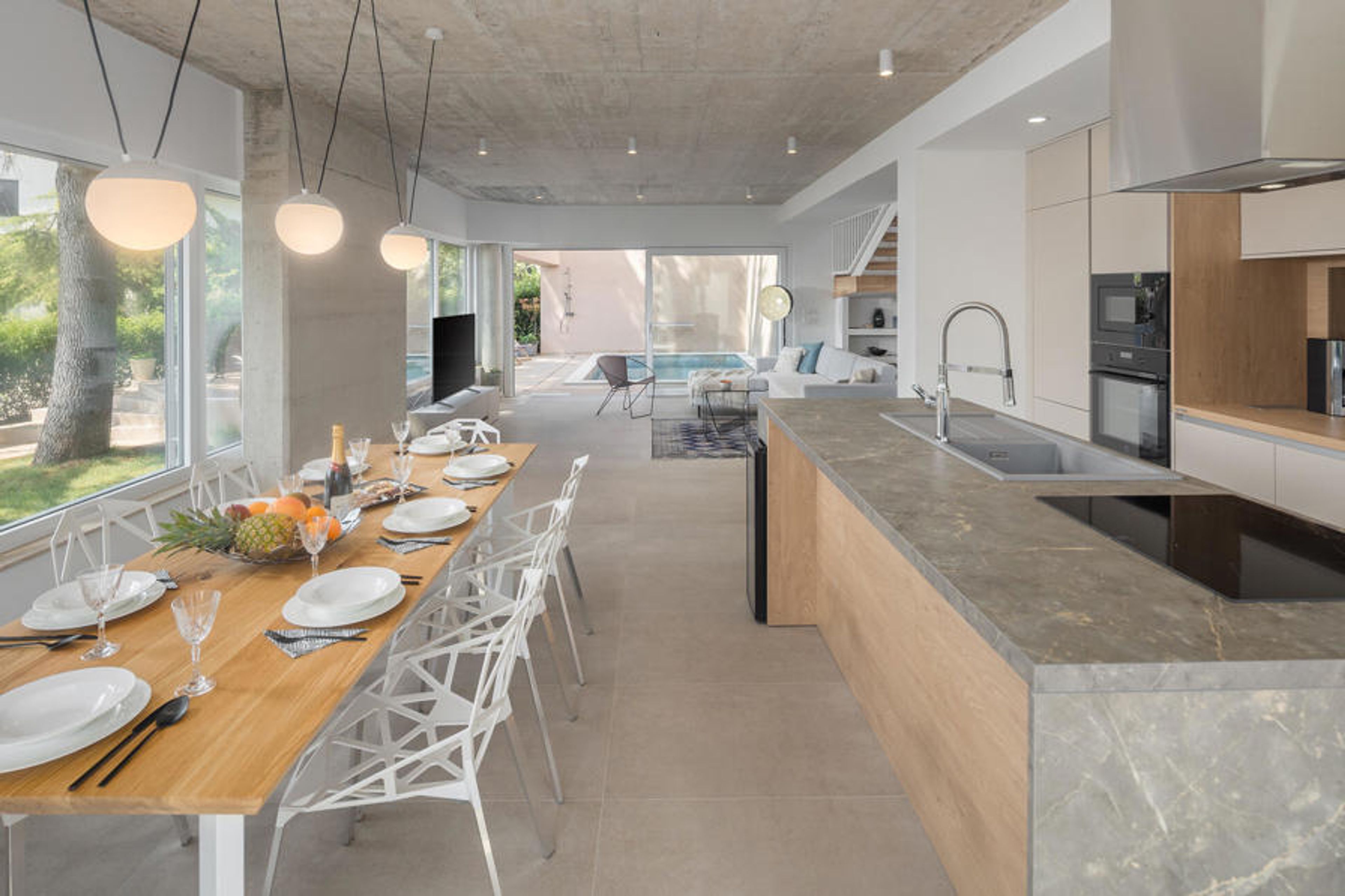 Stroll out through the wide sliding door to the pool and refresh yourself in the crystal-clear water. Relax on the sun loungers and enjoy the warm summer evenings with a glass of wine on the terrace or organise a sociable barbecue surrounded by Mediterranean nature.