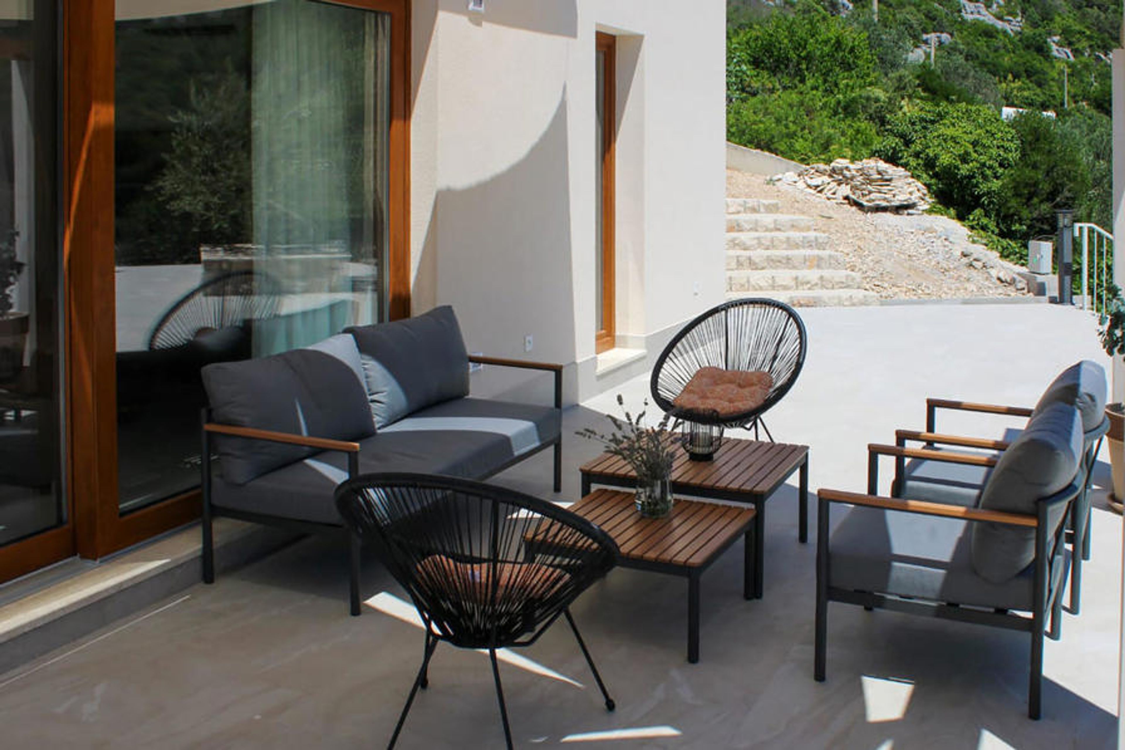 The spacious and versatile outdoor area is perfect for spending the whole day outdoors. Take a refreshing dip in the pool, relax on the sun loungers and let the children run around in the in-house playground. Fire up the barbecue and celebrate mild summer evenings with an atmospheric barbecue or enjoy good conversation over a glass of wine in the shade of the inviting lounge.