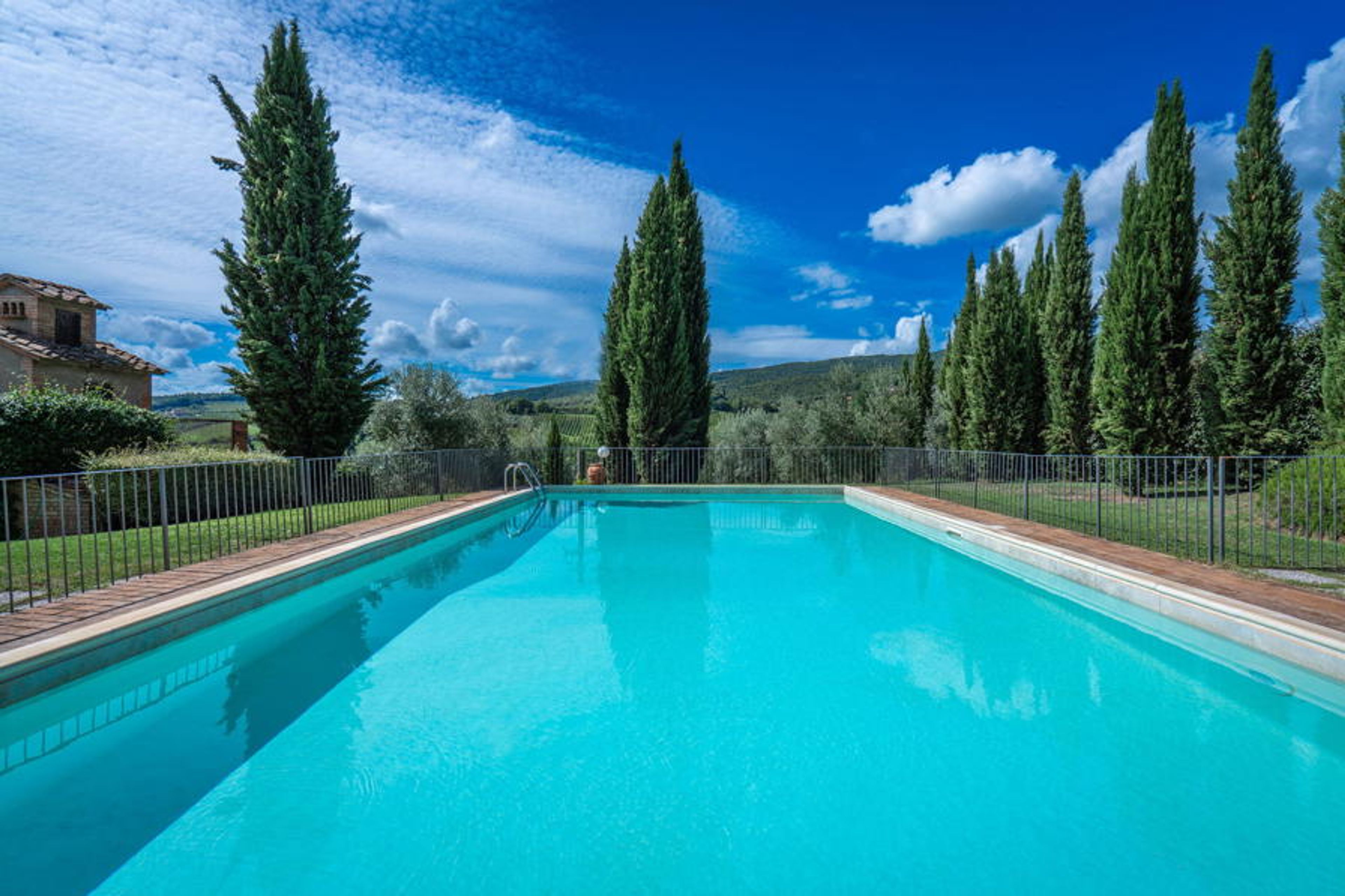 Surrounded by a large, well-kept and lush garden, characterised by olive trees and magnolias, the property offers guests an enclosed private swimming pool (12 x 6), equipped with sunbeds and umbrellas to ensure maximum relaxation, overlooking the Sienese hills.