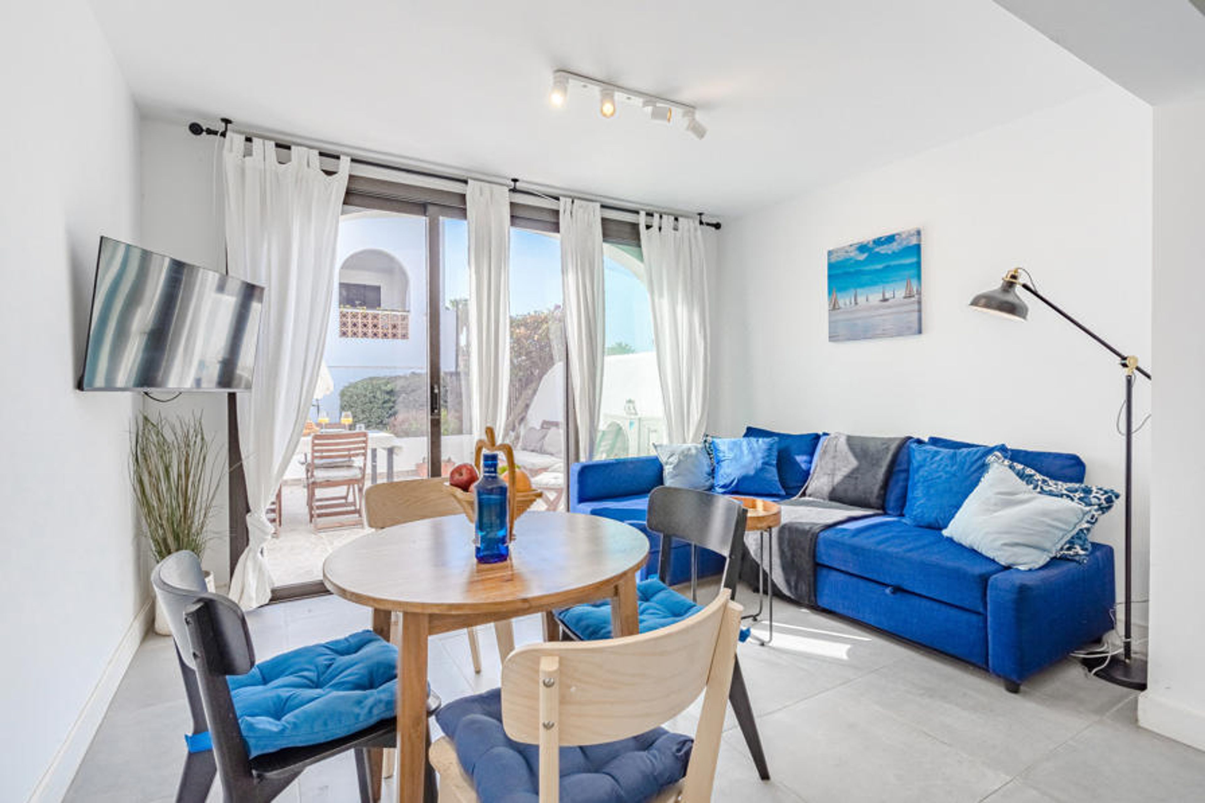 Great apartment with fantastic terrace and pool – just a few minutes' walk from the beach!Experience Tenerife at its best: in this stylish and fully equipped apartment, which offers air conditioning, 2 bathrooms with shower, double sofa bed in the living area, WiFi and a large terrace, this accommodation offers a perfect blend of comfort and holiday feeling – ideal for relaxation or productive work. Highlights at a glance:Sleeping accommodation for up to 6 people: Two spacious bedrooms with comfortable double beds offer sleeping comfort for four guests. In addition, the couch can be converted into a sofa bed, which offers space for two additional people.Spacious bathroom: 2 modern bathrooms with toilet and shower ensure an optimal feel-good atmosphere.Huge furnished terrace with stunning views: Enjoy complete privacy and tranquillity – perfect for admiring the sunset or listening to the waves of the sea in the morning while having a coffee.2 air conditioners: Ensure a pleasant room temperature at all times – ideal for relaxing after a hot day.If you fancy some company, the apartment complex offers additional highlights:The apartment complex offers everything you need for a relaxed and entertaining stay: Communal pool with pool bar: Enjoy refreshing drinks directly in the water – the perfect place to switch off from the stress of everyday life.Leisure activities: Two table tennis tables and a pool table are available for communal activities.Amenities: A water dispenser provides refreshment at all times.Culinary options on site: Start the day refreshed with the breakfast options or indulge in culinary delights in the complex's restaurant.Supermarket directly opposite: Ideal for quick purchases or spontaneous cooking ideas.Sporting activities: There is a golf course right on your doorstep, which delights both beginners and professionals with its well-kept grounds and spectacular backdrop.The apartment is stylishly furnished to a high standard, so you will feel at home from the minute you arrive. Relax by the complex's pool or sunbathe on your terrace – you will find all the relaxation you could wish for during your holiday here.Of course, fast Wi-Fi is included so you can stay online if necessary. But it would almost be a shame to get lost in the digital world, because adventure awaits on your doorstep!Leave the daily grind behind and experience the sunny serenity of thisunique region. Enjoy the sun, sea and the calm atmosphere in this beautiful accommodation. Welcome to your holiday paradise in Tenerife! Book your dream accommodation now!