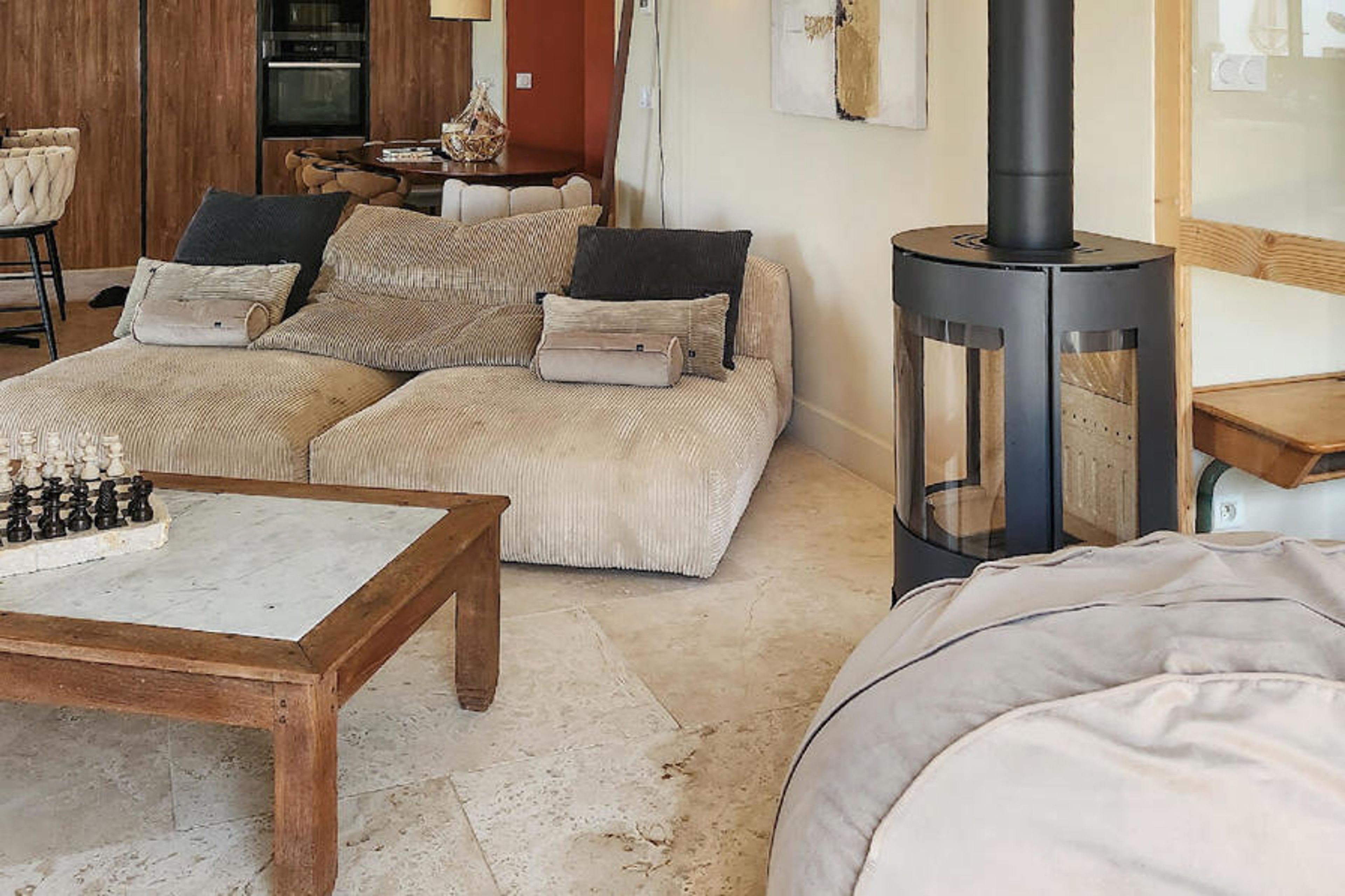 Experience a relaxing stay in this modern holiday home, which impresses with its harmonious design and idyllic surroundings. The spacious furnishings, combined with the warm, Mediterranean atmosphere, create the ideal setting for an unforgettable holiday. The open-plan living area impresses with its bright, inviting furnishings. Make yourself comfortable on the cosy sofas or enjoy the cosy warmth of the fireplace on chilly days. Dine together at one of the stylish dining tables, either indoors or on the sunny terrace, and enjoy your free holiday time.