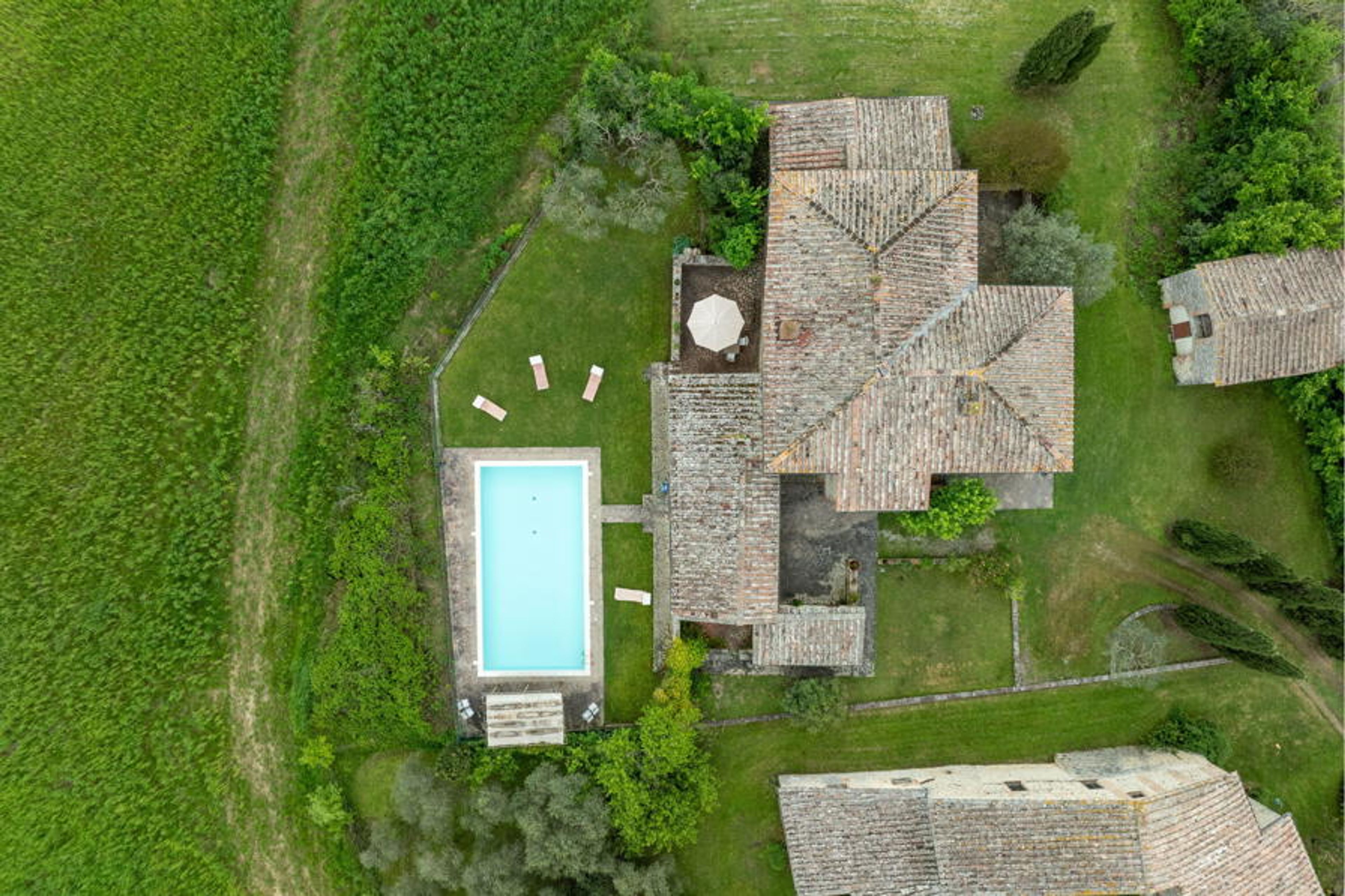 The house has a large fenced outdoor space (about 500sqm), a loggia of about 20sqm furnished, an exclusive barbecue and table and chairs for outdoor dining. The pool is fenced (about (70sqm - 6x12) and set up with sunbeds.
