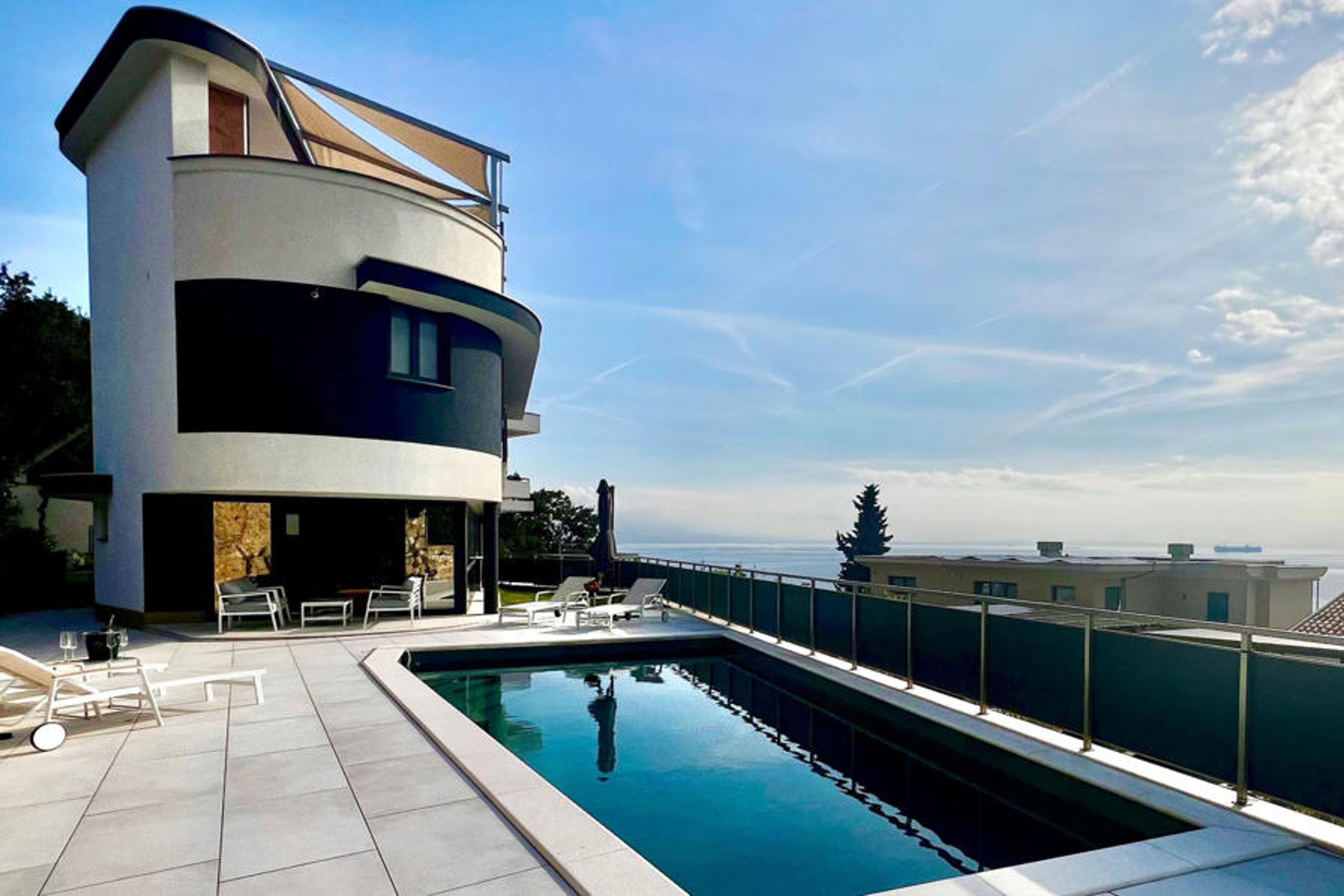 Villa Palazzo Blue is located in the village of Volosko, near Opatija. This unique villa resembles a ship sailing the blue depths of the Adriatic Sea.