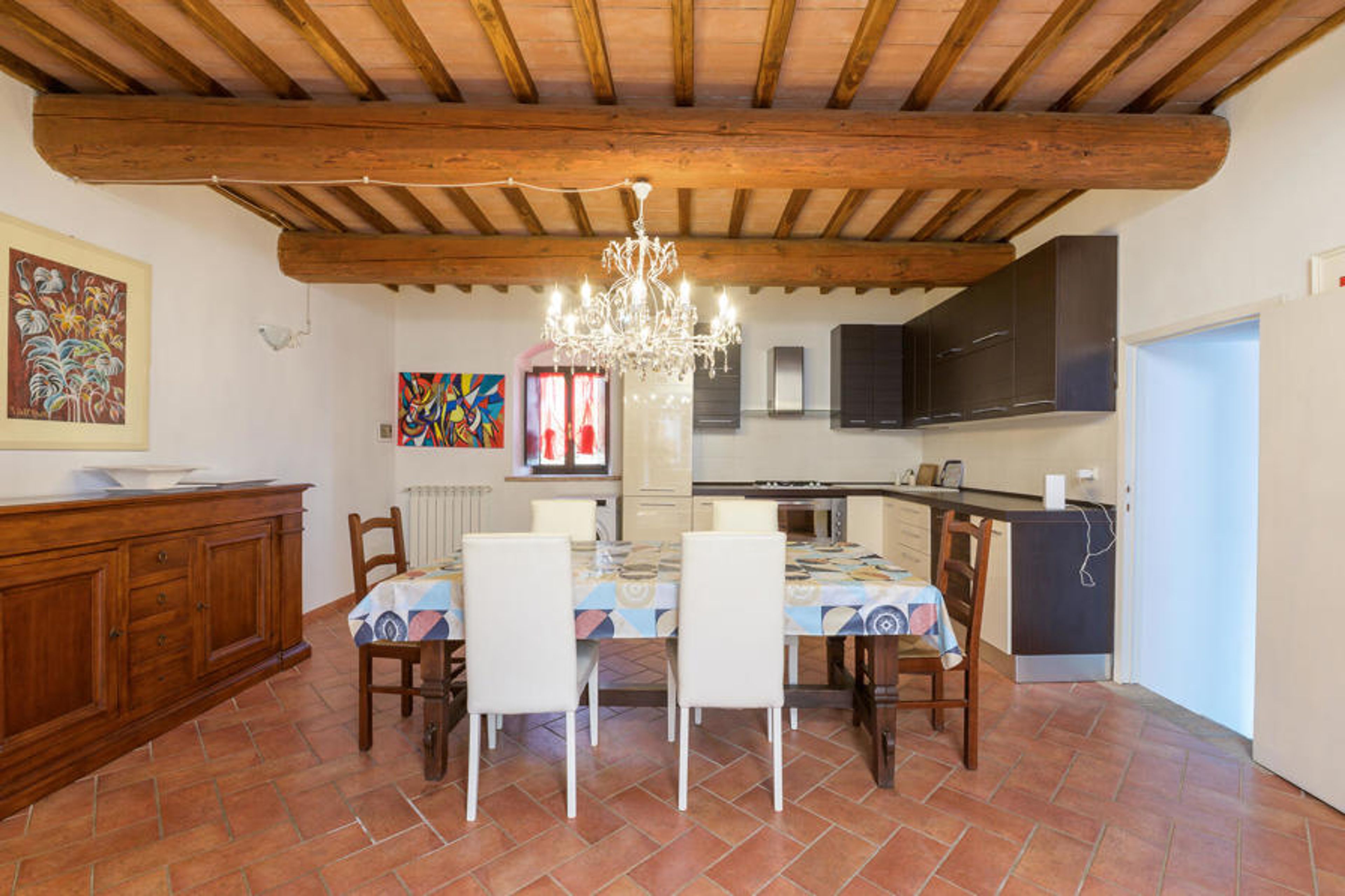 Take a seat on the inviting terrace, which offers a breathtaking view of the surrounding hills, and enjoy your meals in the open air while taking in the Tuscan landscape. Take a refreshing dip in the pool and then enjoy a game of table tennis.
