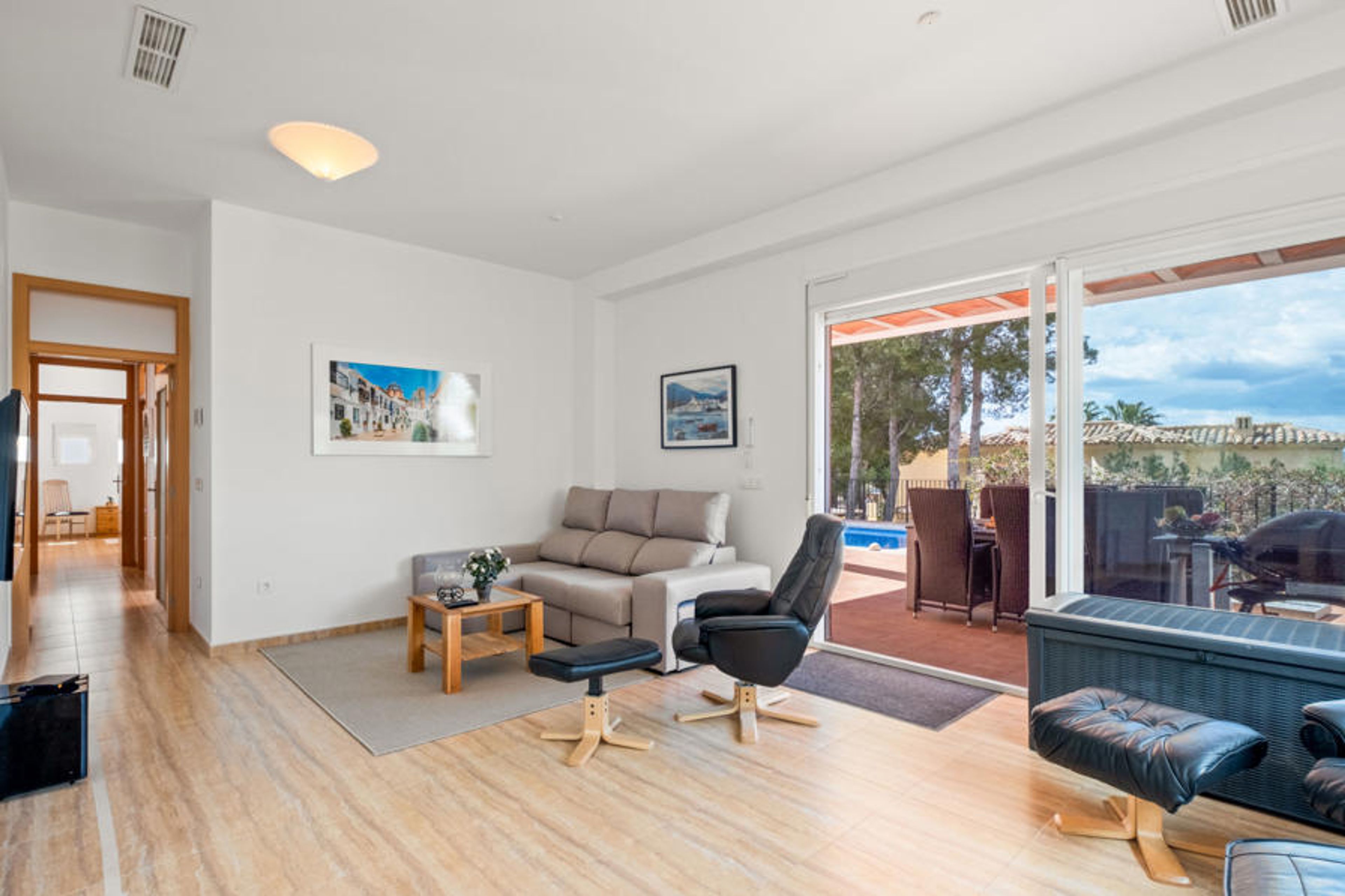 "Vista Bernia", 4-room villa 162 m2. Spacious and bright, comfortable and beautiful furnishings: open living/dining room with digital TV, air conditioning and forced-air heating. Exit to the terrace, to the swimming pool. 1 room with 1 double bed (2 x 90 cm, length 200 cm), shower/bidet/WC, air conditioning and forced-air heating. Exit to the terrace, to the swimming pool. 2 rooms, each room with 1 double bed (2 x 90 cm, length 200 cm), air conditioning and forced-air heating. Exit to the terrace, to the swimming pool. Kitchen (dishwasher, 4 ceramic glass hob hotplates, toaster, kettle, microwave, electric coffee machine). Shower/bidet/WC. Forced-air heating. Large terrace. Terrace furniture, barbecue, deck chairs, sitting area. Beautiful view of the valley and the resort. Facilities: washing machine, iron, children's high chair, baby cot for up to 2 year olds, hair dryer. Internet (WiFi, free). Parking (3 cars). Please note: suitable for families. Non-smoking house. CV-VUT0516605-A