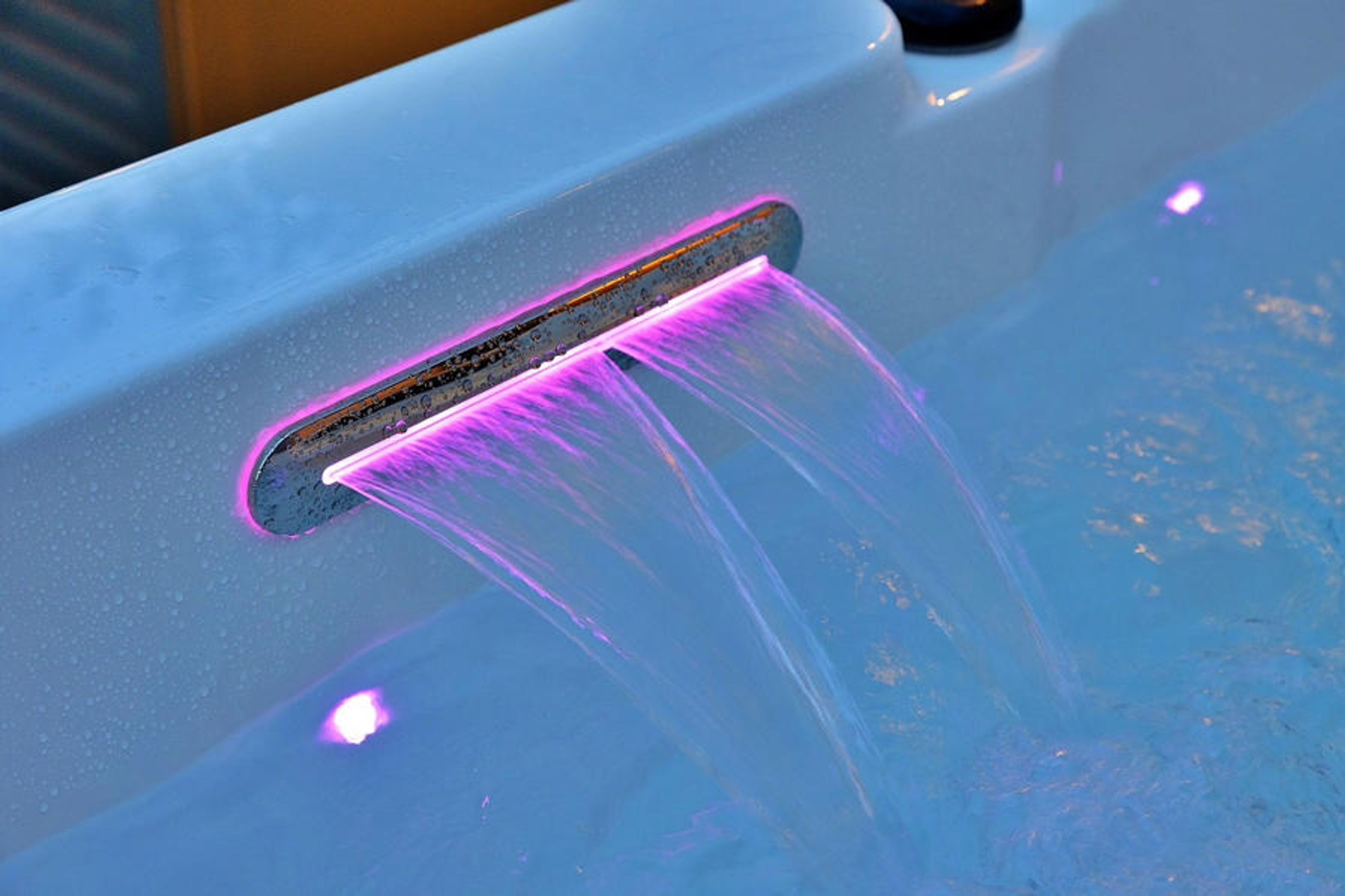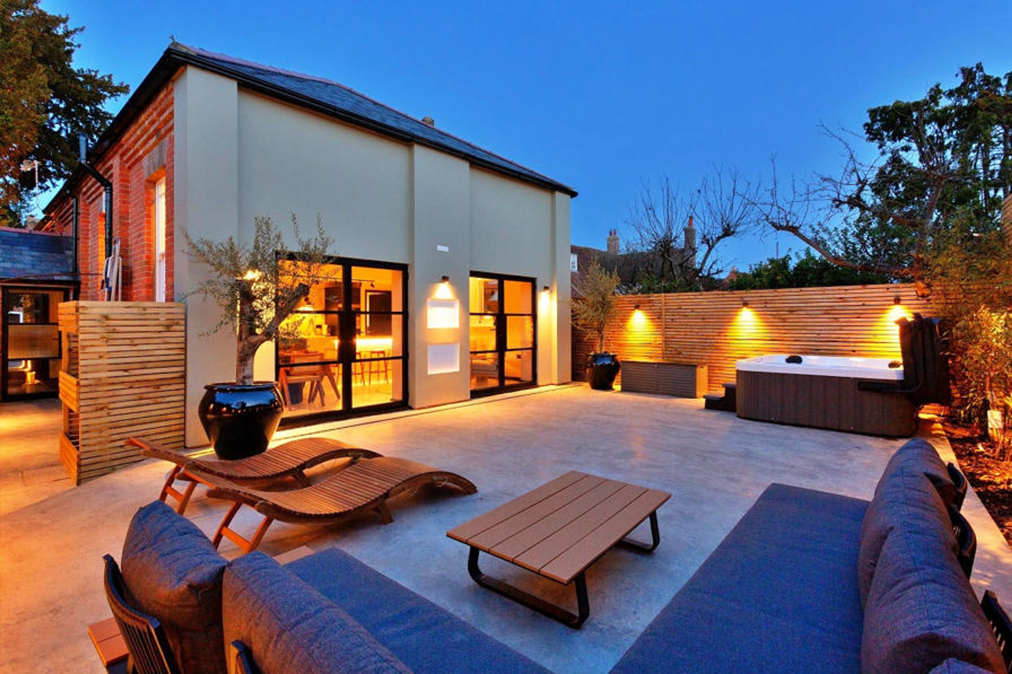 Step outside to the private back garden, where you’ll find a hot tub, comfortable lounge seating, and ambient lighting—ideal for relaxing under the stars.
