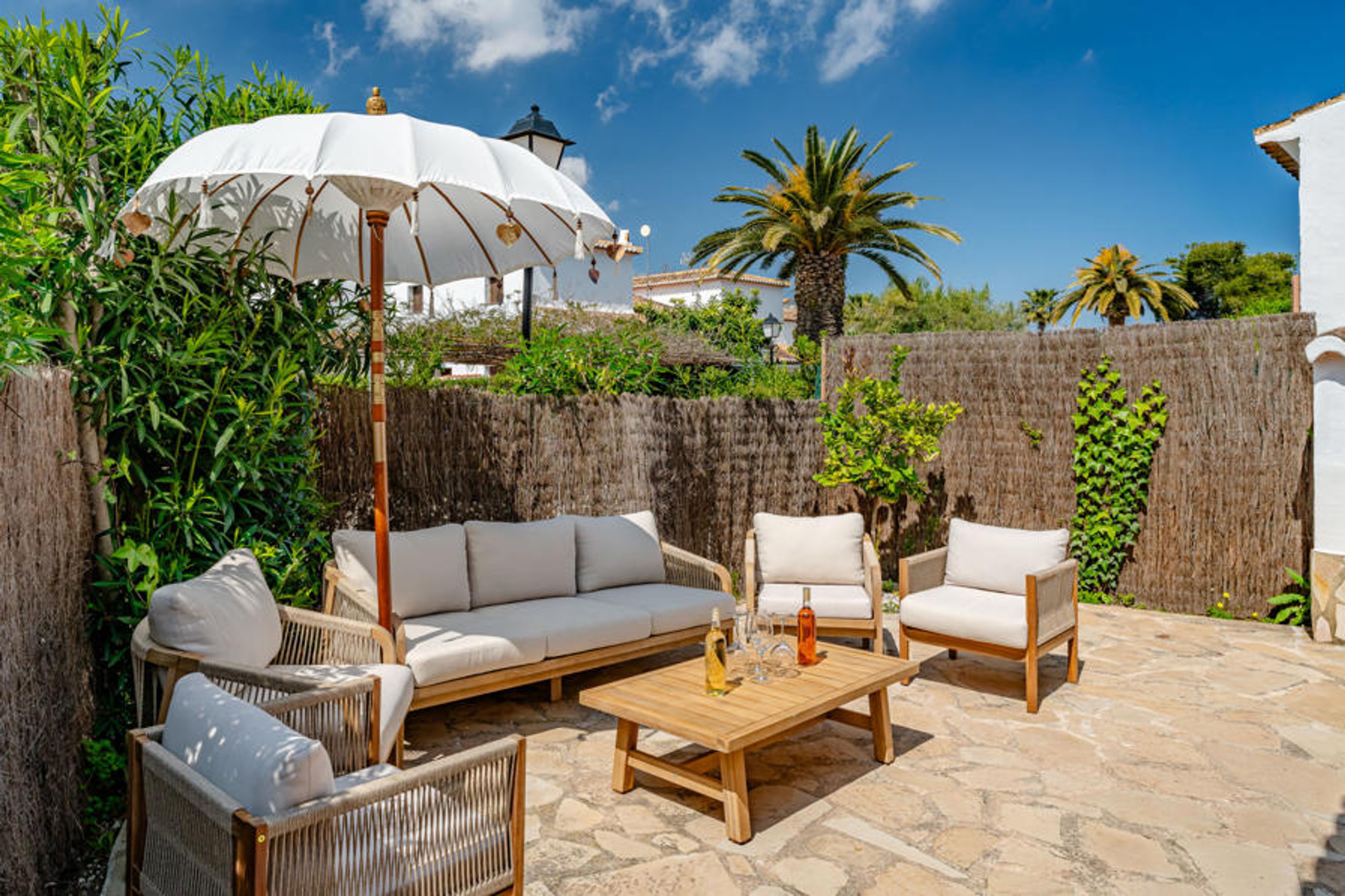 Large, very beautiful, comfortable terraced house "Cofitsa Plus". In the resort 700 m from the centre of Jávea - El Arenal, in a quiet, sunny position, 700 m from the sea, 700 m from the beach. Private: garden with lawn, swimming pool angular (6 x 3 m, depth 40 - 160 cm, seasonal availability: 01.Jan. - 31.Dec.) with internal staircase. Outdoor shower, parking at the house. Shop 650 m, supermarket 450 m, restaurant, café 350 m, bus stop 500 m, sandy beach "El Arenal" 700 m. Sports harbour 1.2 km, surf school 1.2 km, sailing school 1.2 km, tennis 1 km. The owner does not accept any youth groups.
