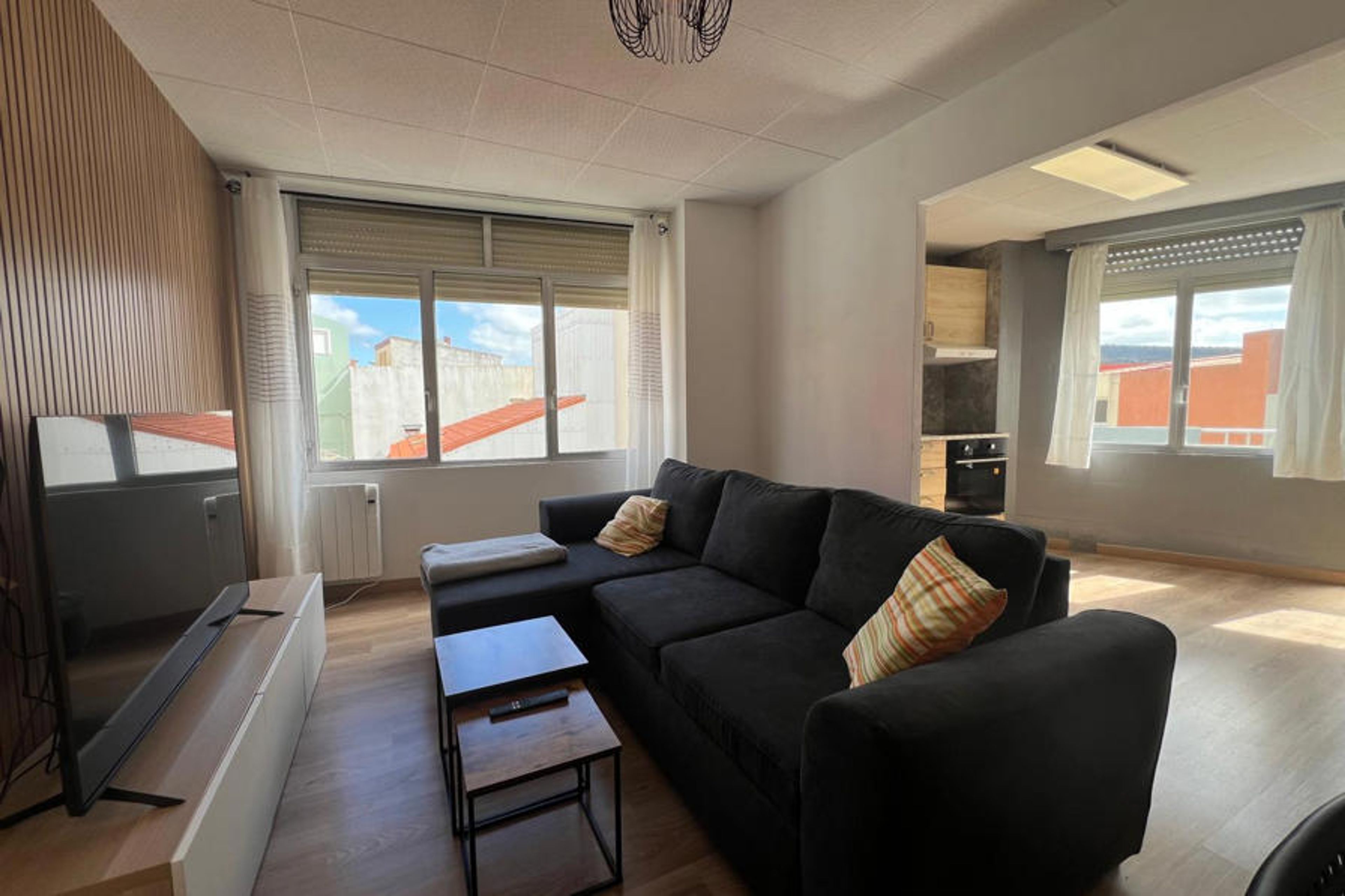 It has 3 welcoming bedrooms: two with a double bed and one with two single beds, perfect for families or groups of friends. Additionally, the full bathroom includes a shower, washer-dryer and hairdryer for greater comfort. For the little ones, we offer a cot upon prior request.