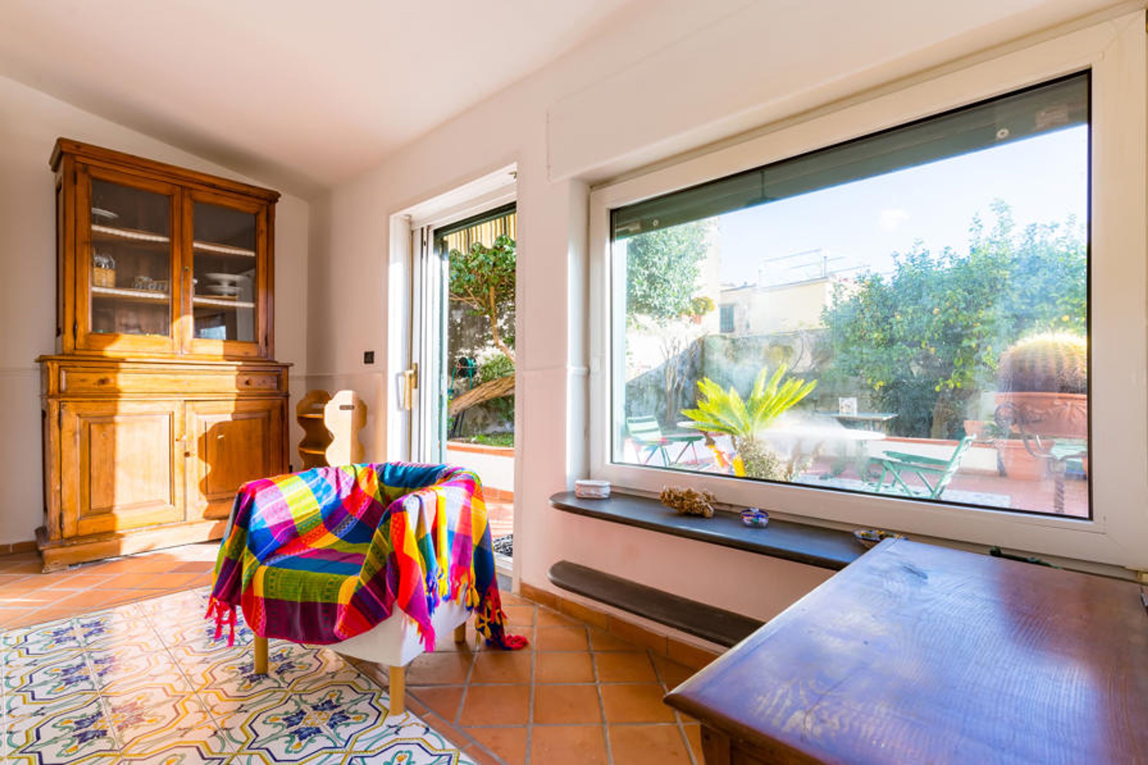 The house dates back to the early 1800s, the exact date is not known but you can still see the last plaque posted in 1828 by the insurance company of the time. The round rooms (today one is used as a cellar and one has been incorporated into a passage corridor) tell of how the house was connected to the famous and ancient Roman aqueduct, the Augustan aqueduct, used until the early twentieth century , built using the tunnels and cisterns created with the extraction of tuff from the subsoil. Today the house is linked, for all the inhabitants of the neighborhood, to the memory of Dr. Paola, who lived and cared for it for fifty years, and who loved to share it with people. The structure consists of a panoramic entrance, which leads to two large living rooms, which we like to identify as a relaxation area and TV area, the latter equipped with a sofa bed. From here there is access on one side to a double bedroom and on the other to the reading/games room and the kitchen. Walking along the corridors, you first come across access to a small terrace with a view of Capri and on the lower floor there is a hallway that delimits a double bedroom, one with bunk beds and access to the terrace with garden, which is also panoramic . The house is completed by three bathrooms, two of which are on the upper floor and one on the lower floor. The total capacity is for 9 guests. Located in a small street parallel to Corso Vittorio Emanuele, which can be accessed by car, or by crossing a staircase from the course. You can reach the historic center, Vomero and Chiaia with the two funiculars (chiaia and vomero) that you find in the immediate vicinity. At 100mt a garage with special rates on request is at your disposal. The bus stop, adjacent to the stairs, connects the course with Mergellina and Posillipo December 24 and 31: check-ins will be available until 6 p.m. . City Tax: € 5,00 per person per night to pay at check-in starting from 1 nights for a maximum of 14 nights . Extra: AIR CONDITIONING Free of charge , HEATING Free of charge , LINEN AND TOWELS Free of charge , WASHING MACHINE Free of charge